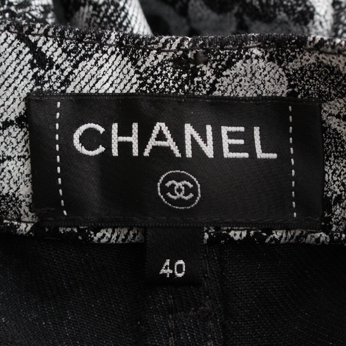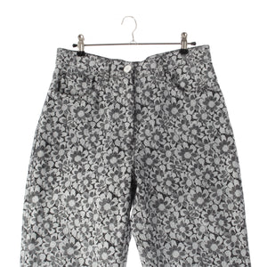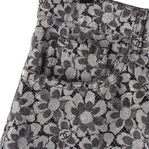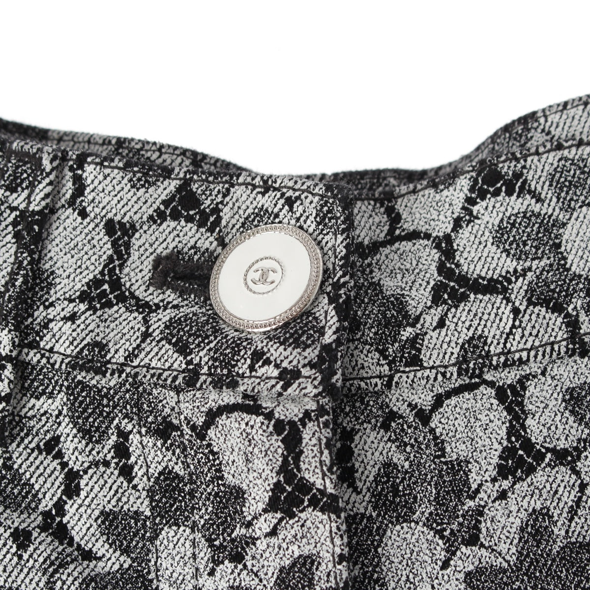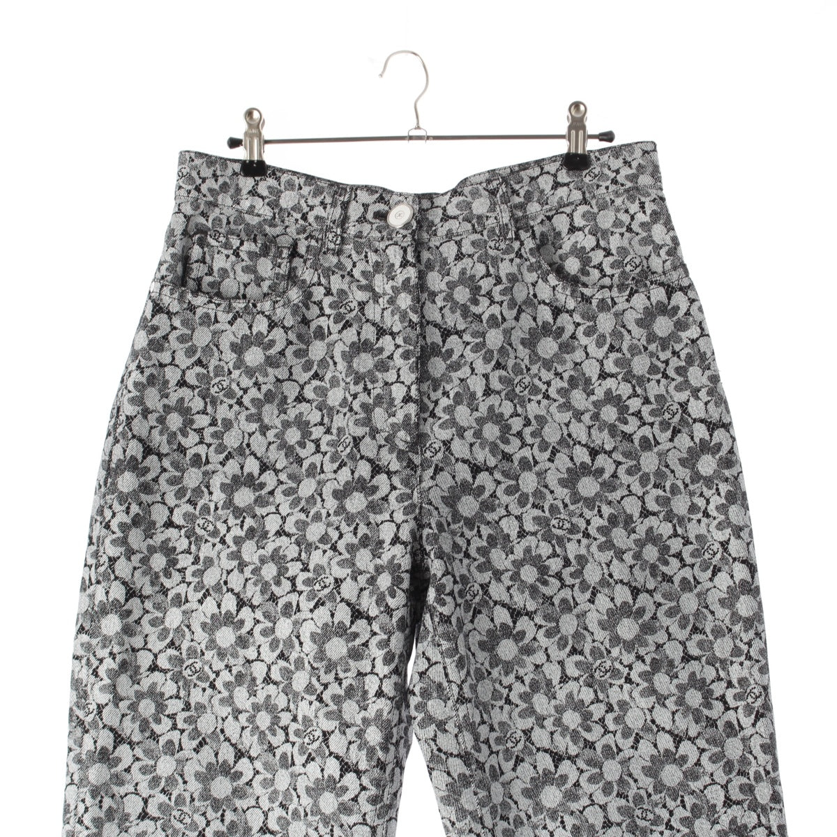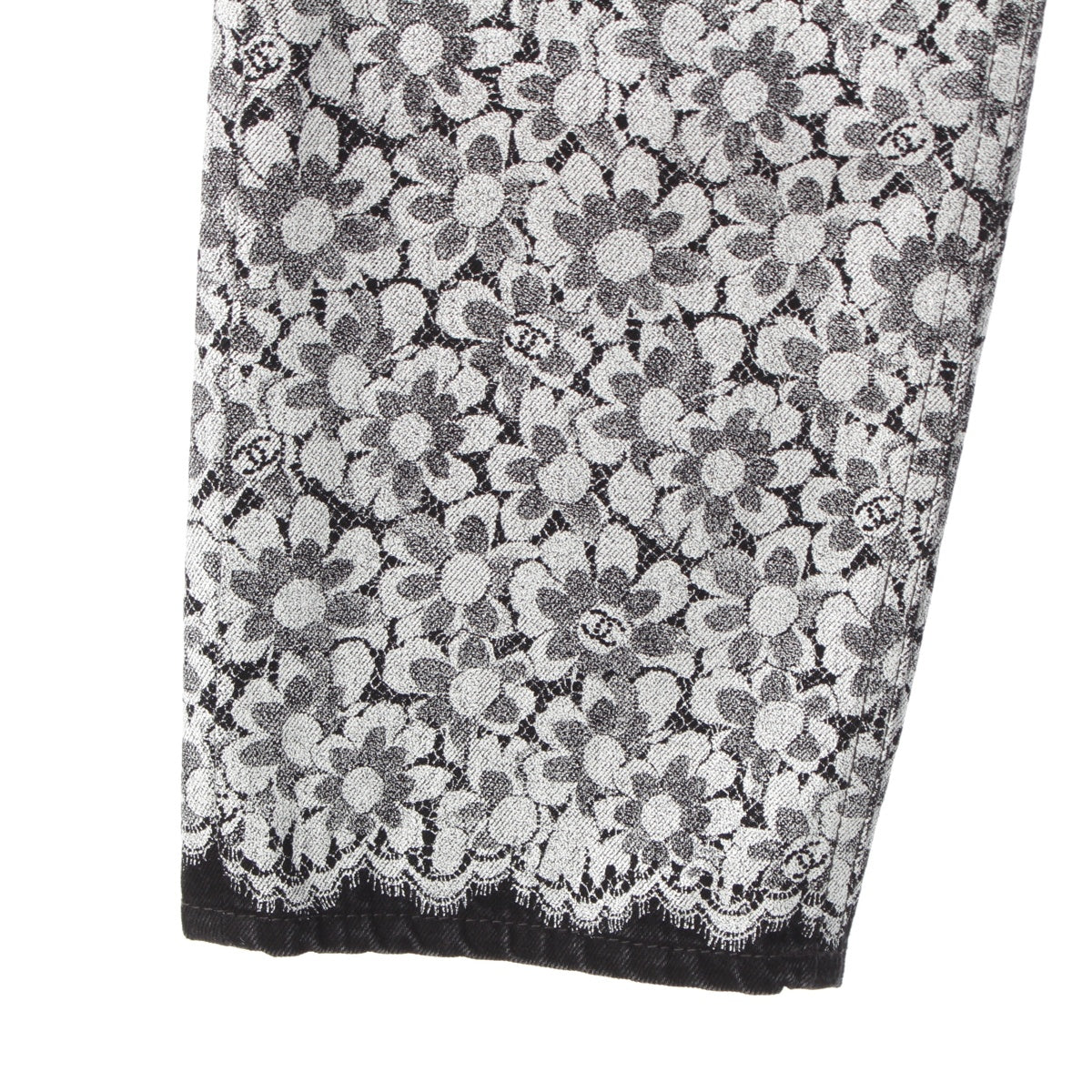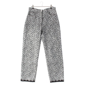 CHANEL cotton COCO Mark Camellia Lace Print Denim pants Jeans bottoms P78140 White black 40