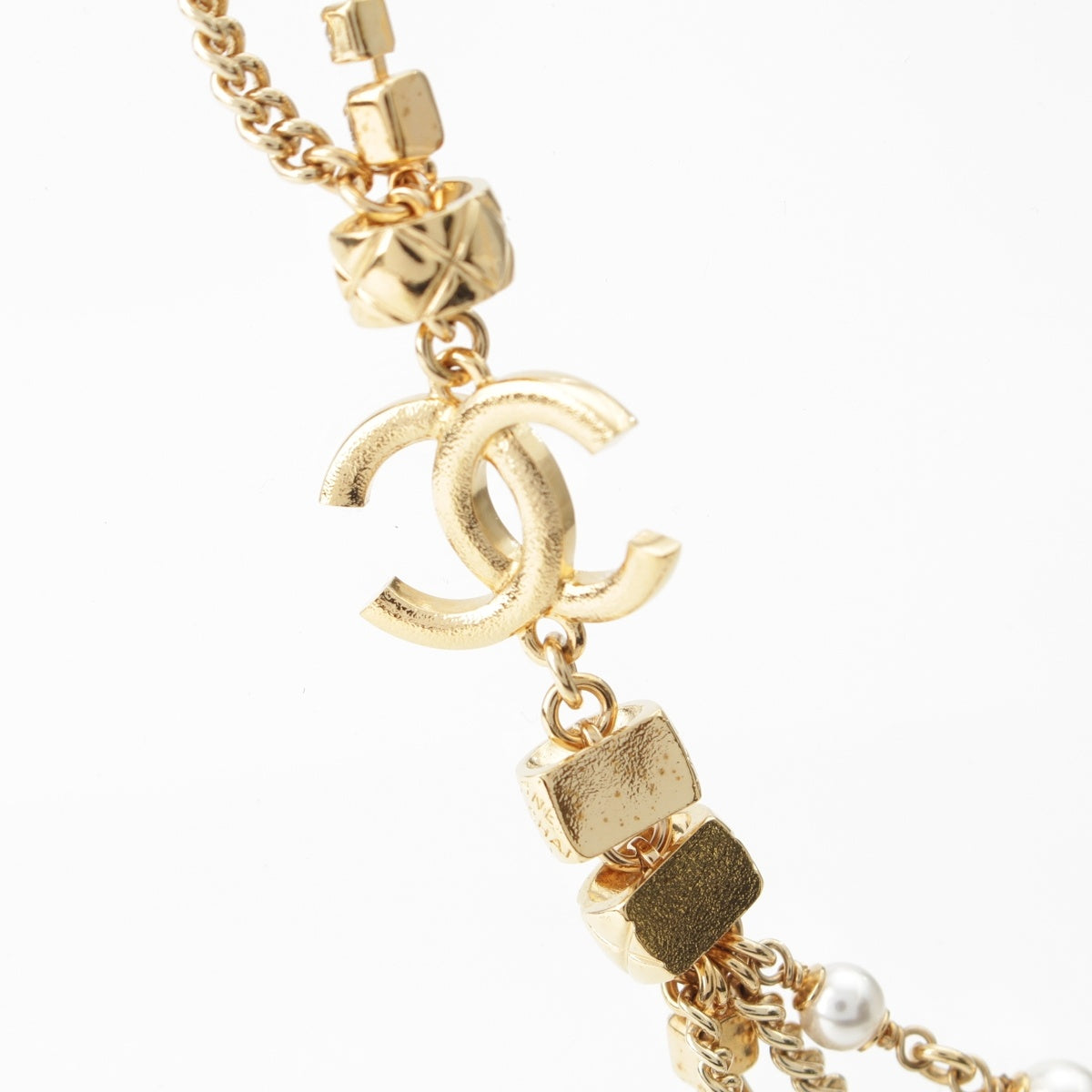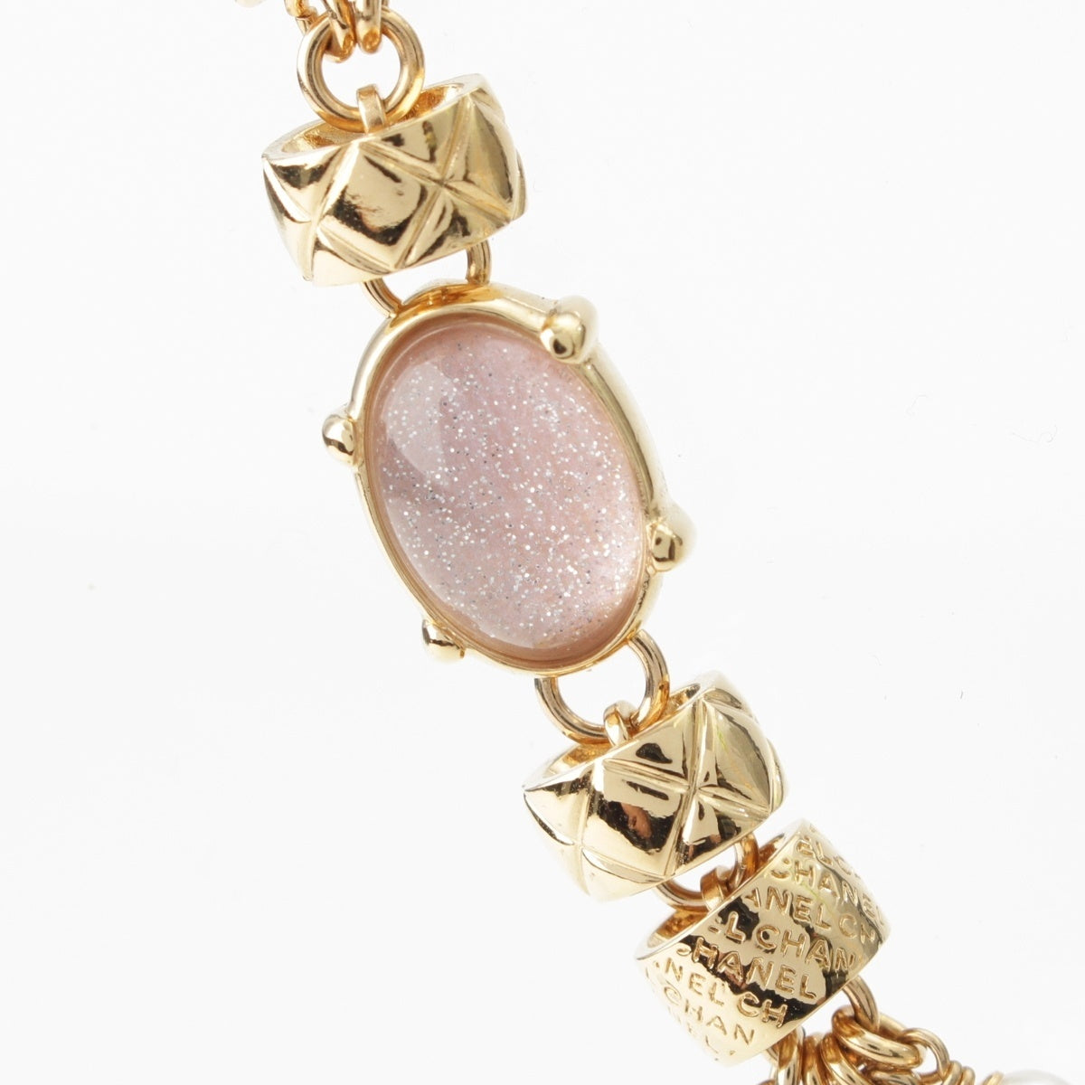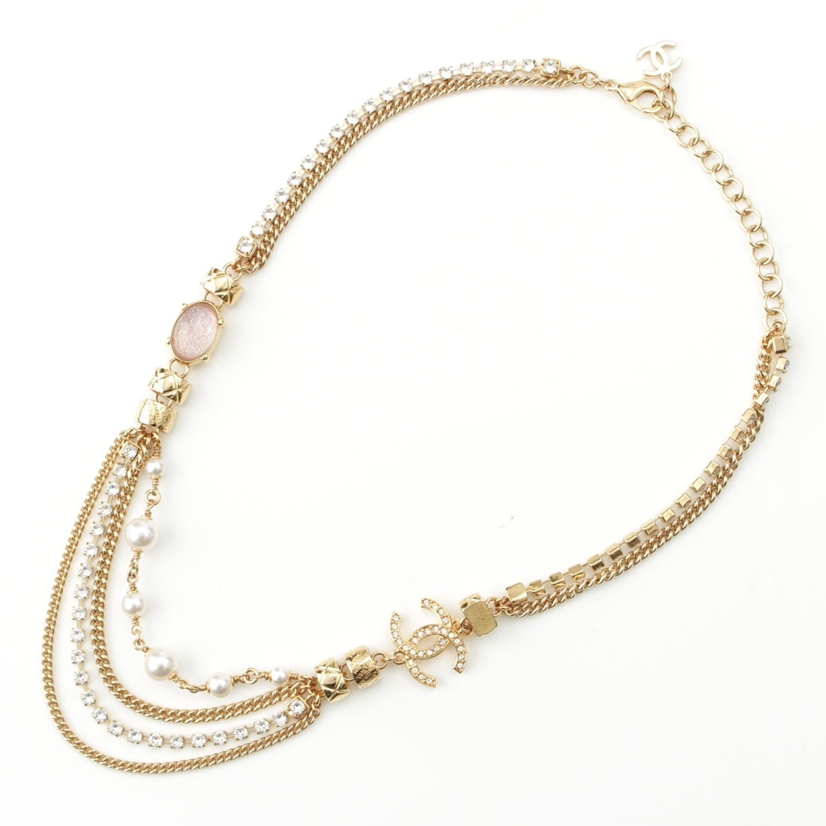 CHANEL Gold Plated COCO Mark Stone Crush Chain Logo Necklace Accessories gold