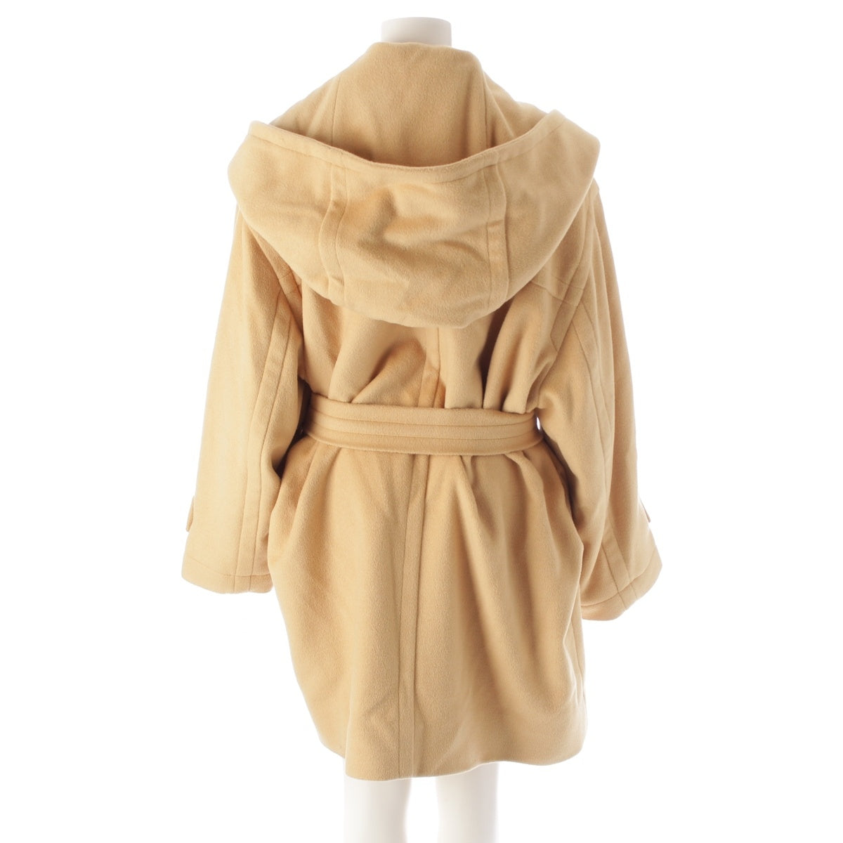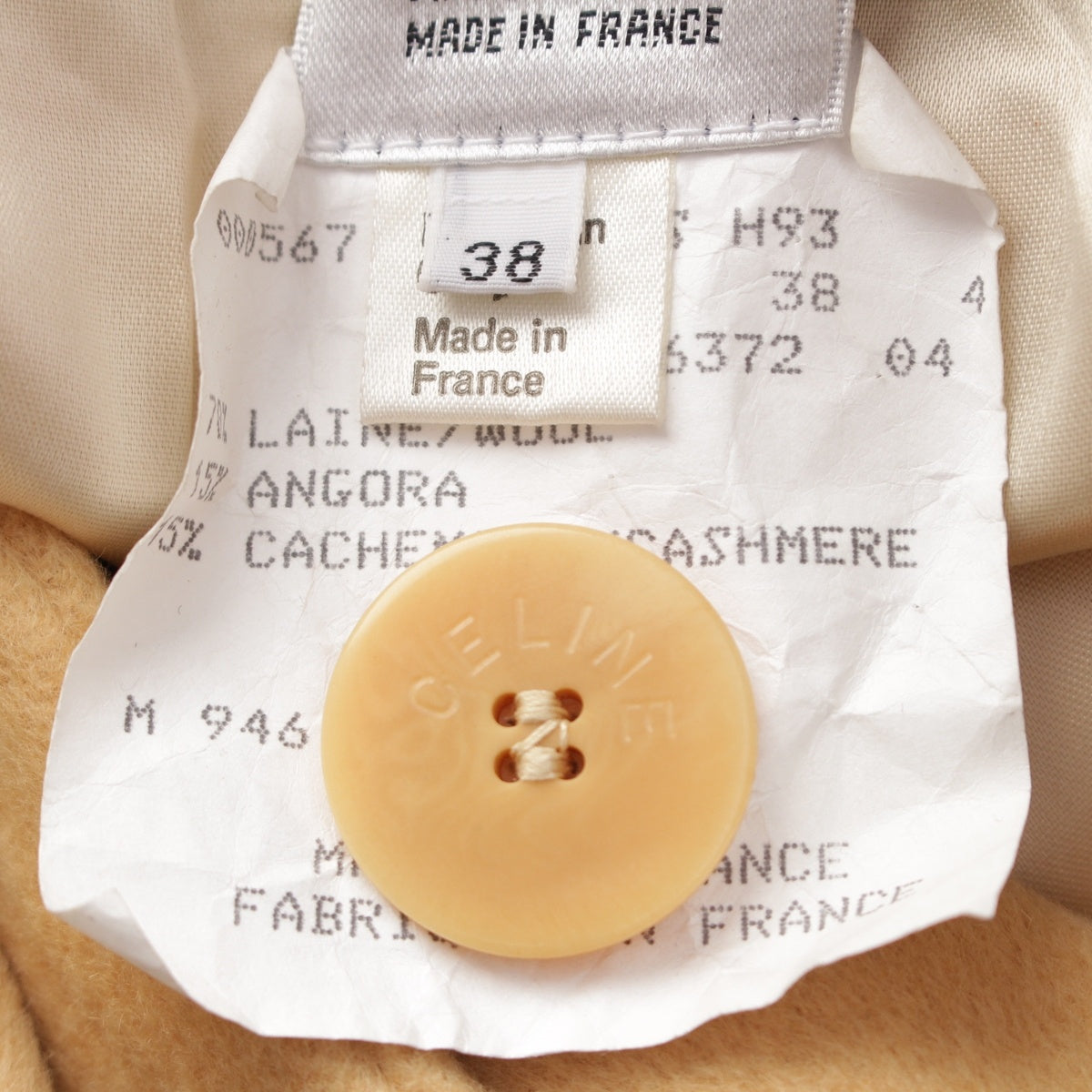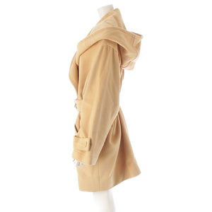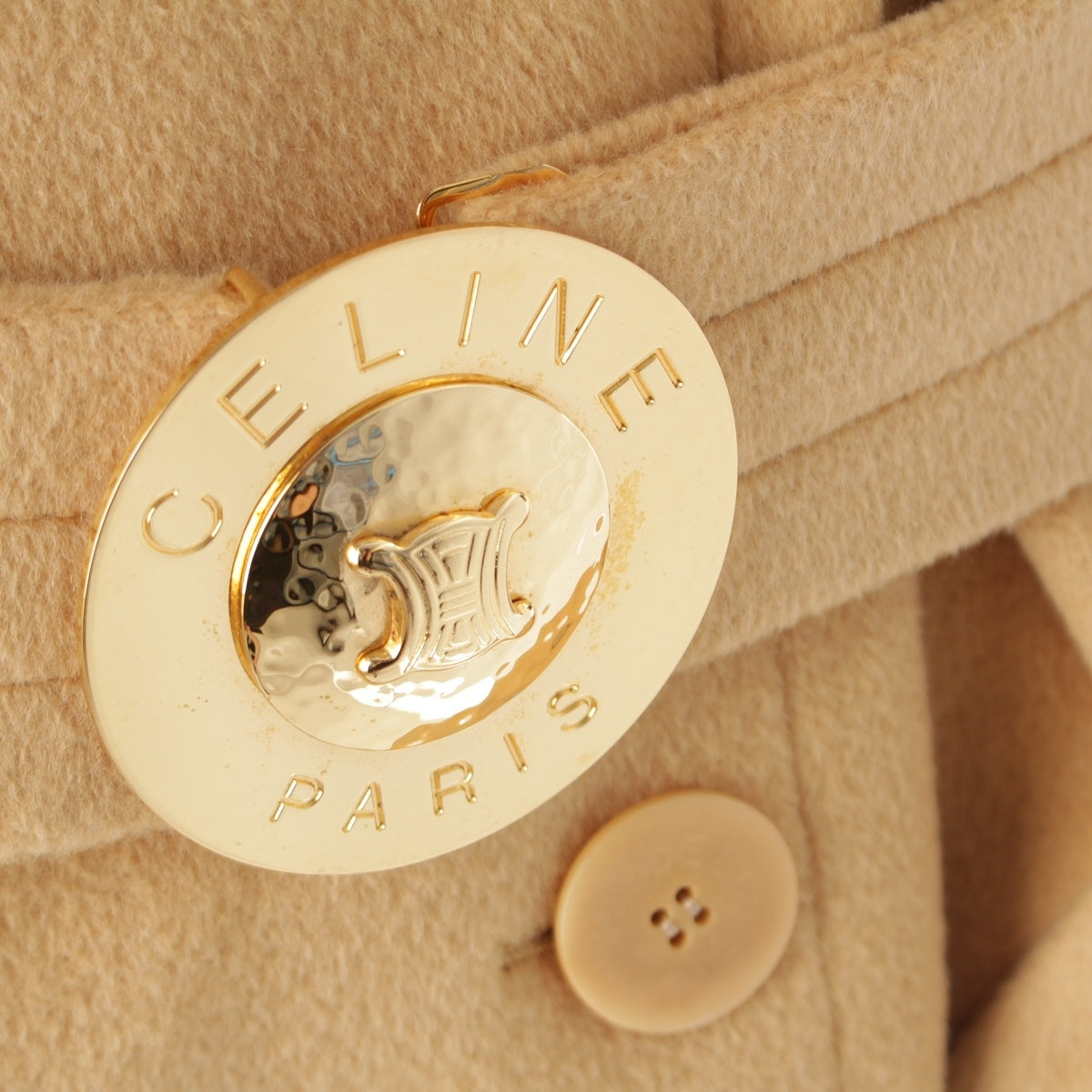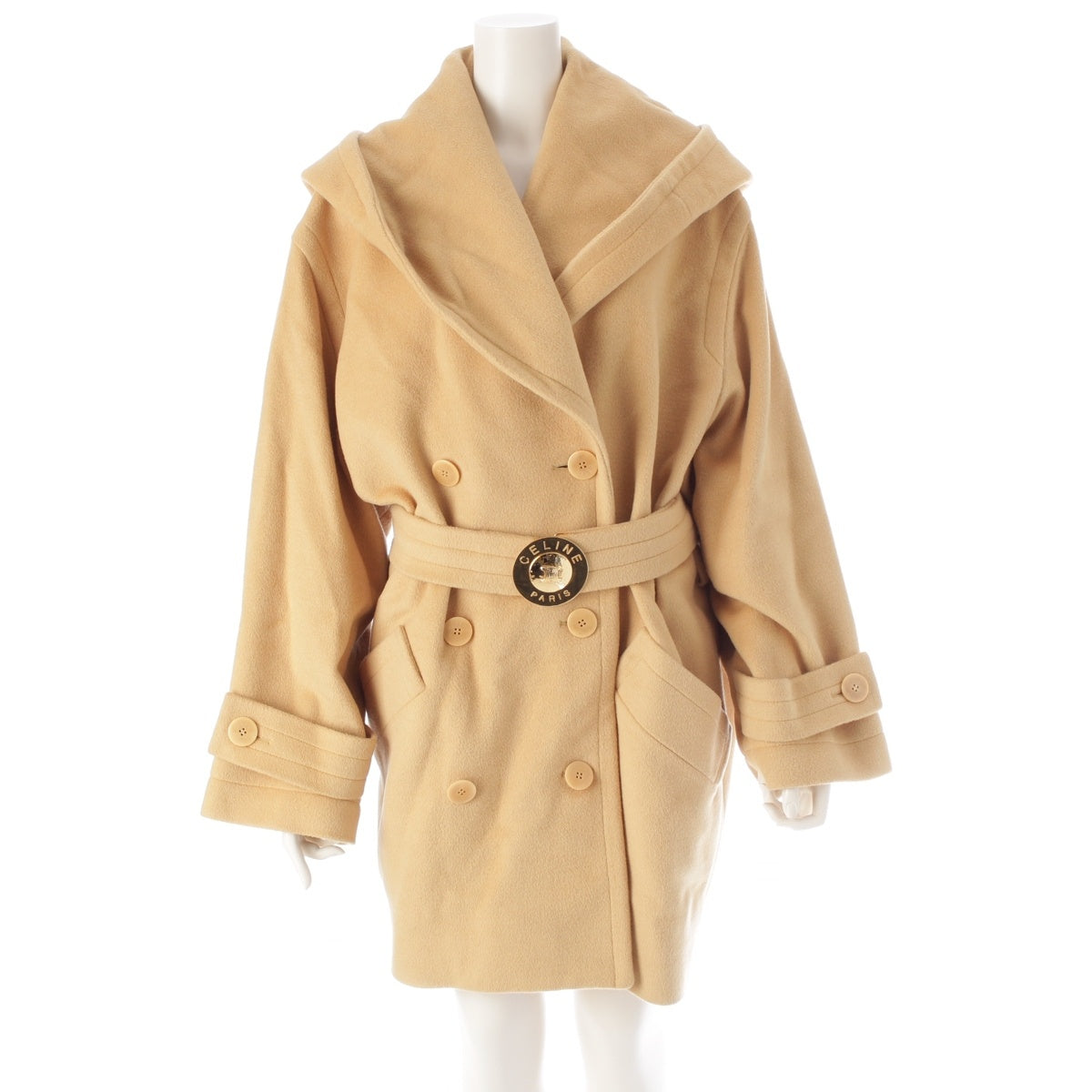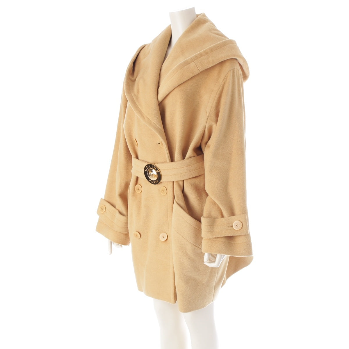 CELINE Wool cashmere blend belted long coat Triomphe logo hood with belt Camel 38