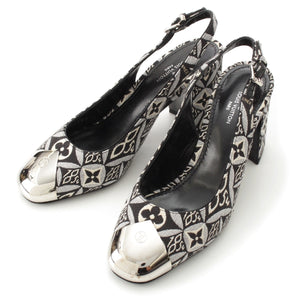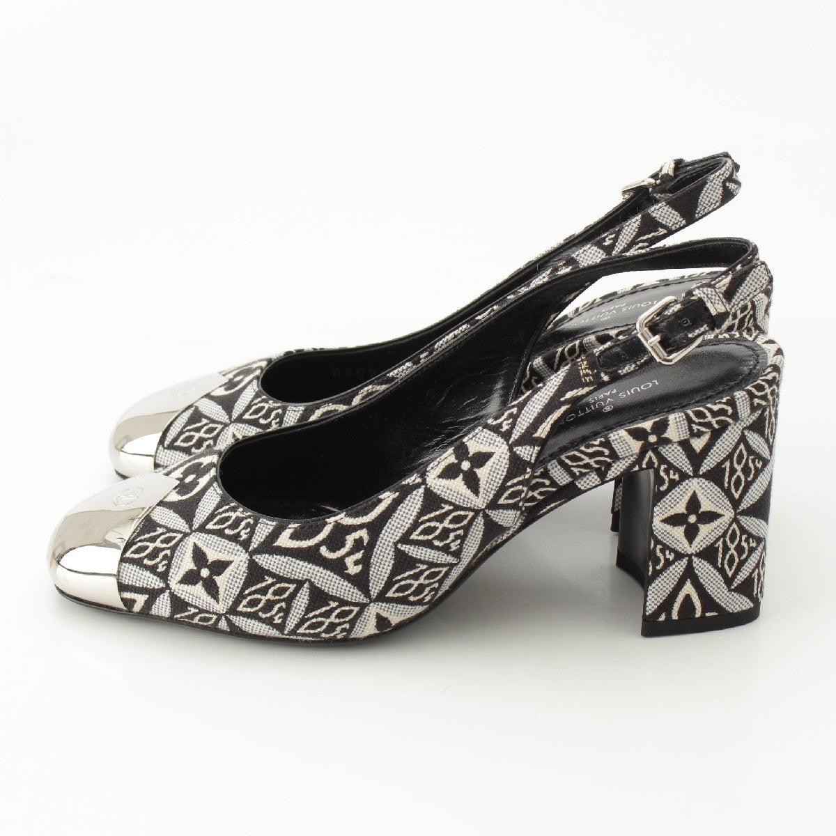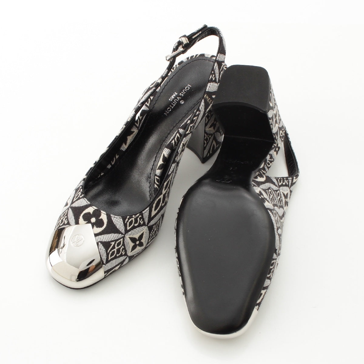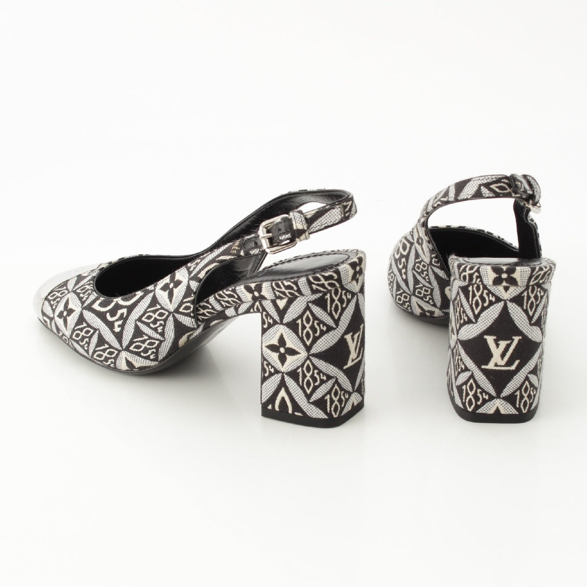 LOUIS VUITTON Louise Line Canvas x leather Monogram Slingback Strap pumps MA0280 Black x white 35