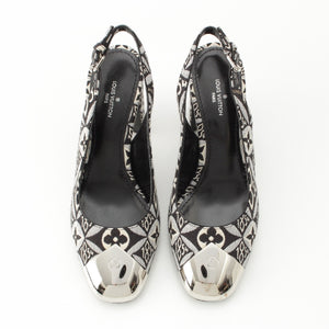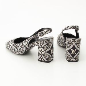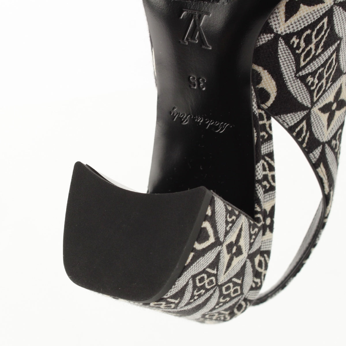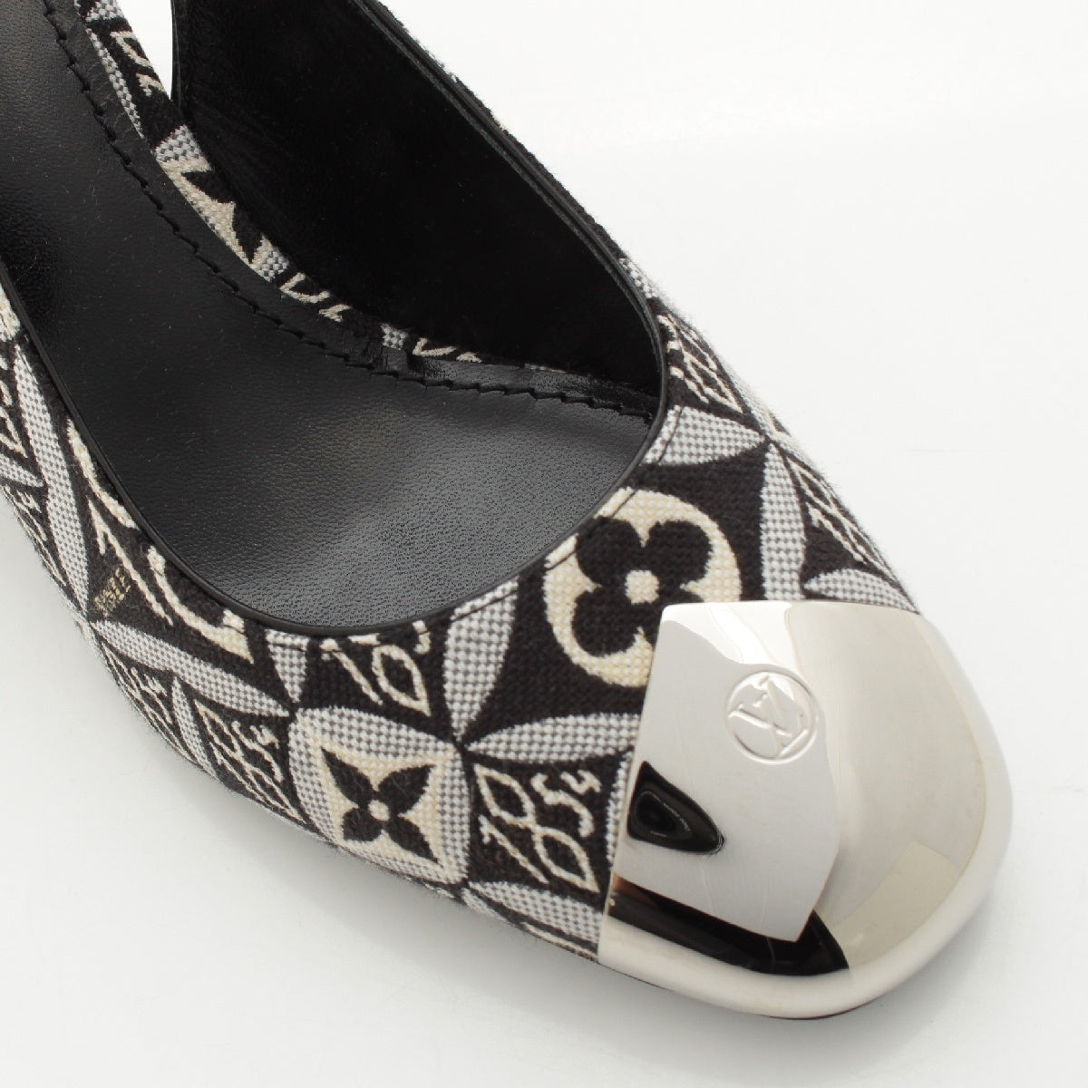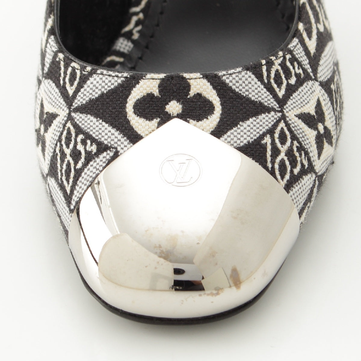 LOUIS VUITTON Louise Line Canvas x leather Monogram Slingback Strap pumps MA0280 Black x white 35