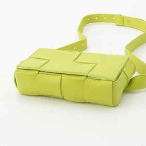 BOTTEGAVENETA leather Maxi INTRECCIATO Cassette Crossbody Waist bag 668572 lime green