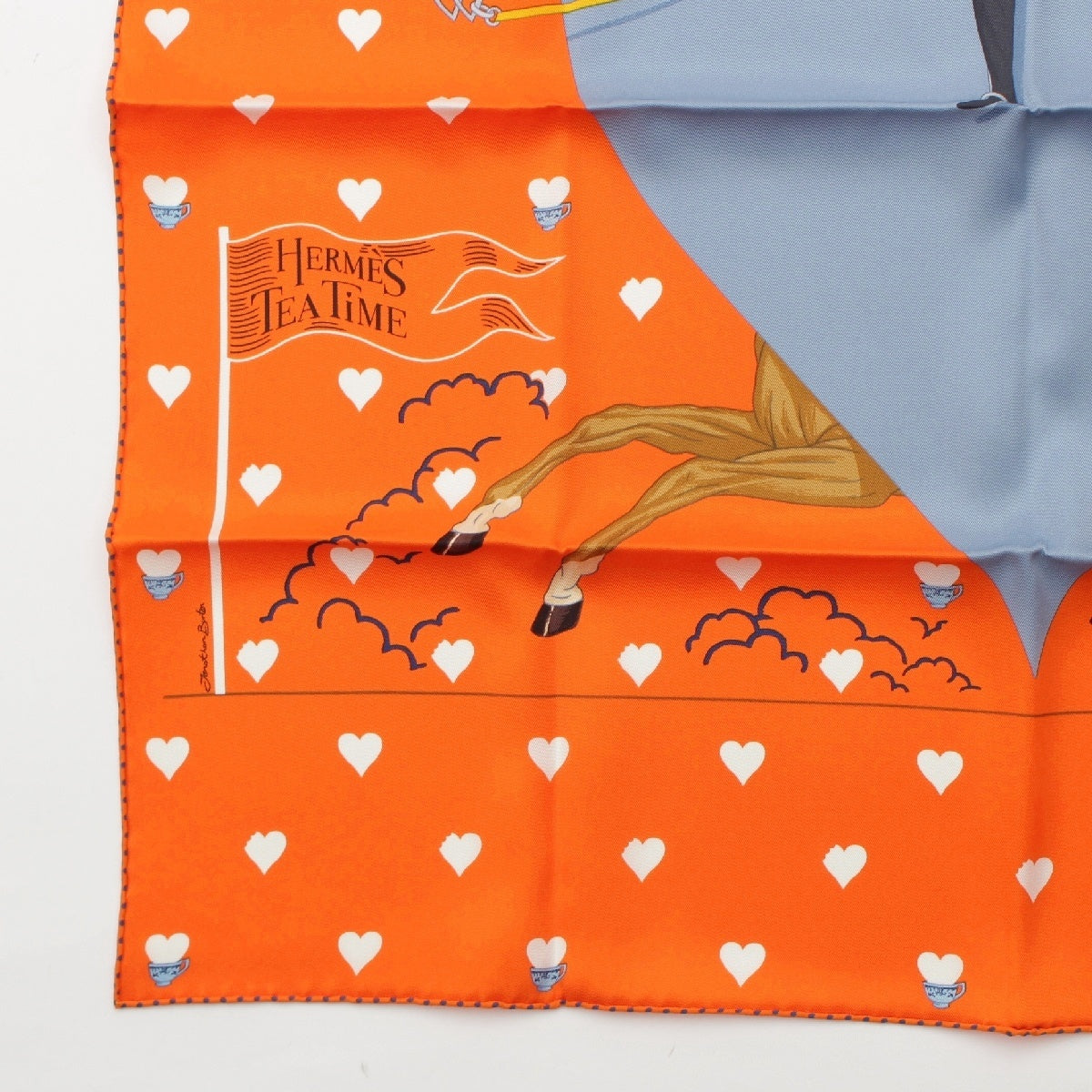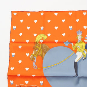 HERMES silk Carre 70 Tea Time Heart scarf Orange