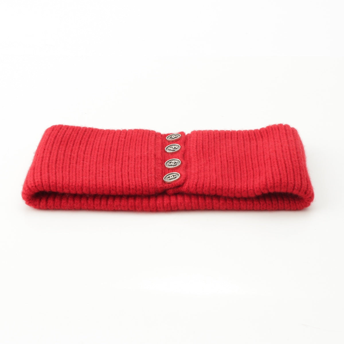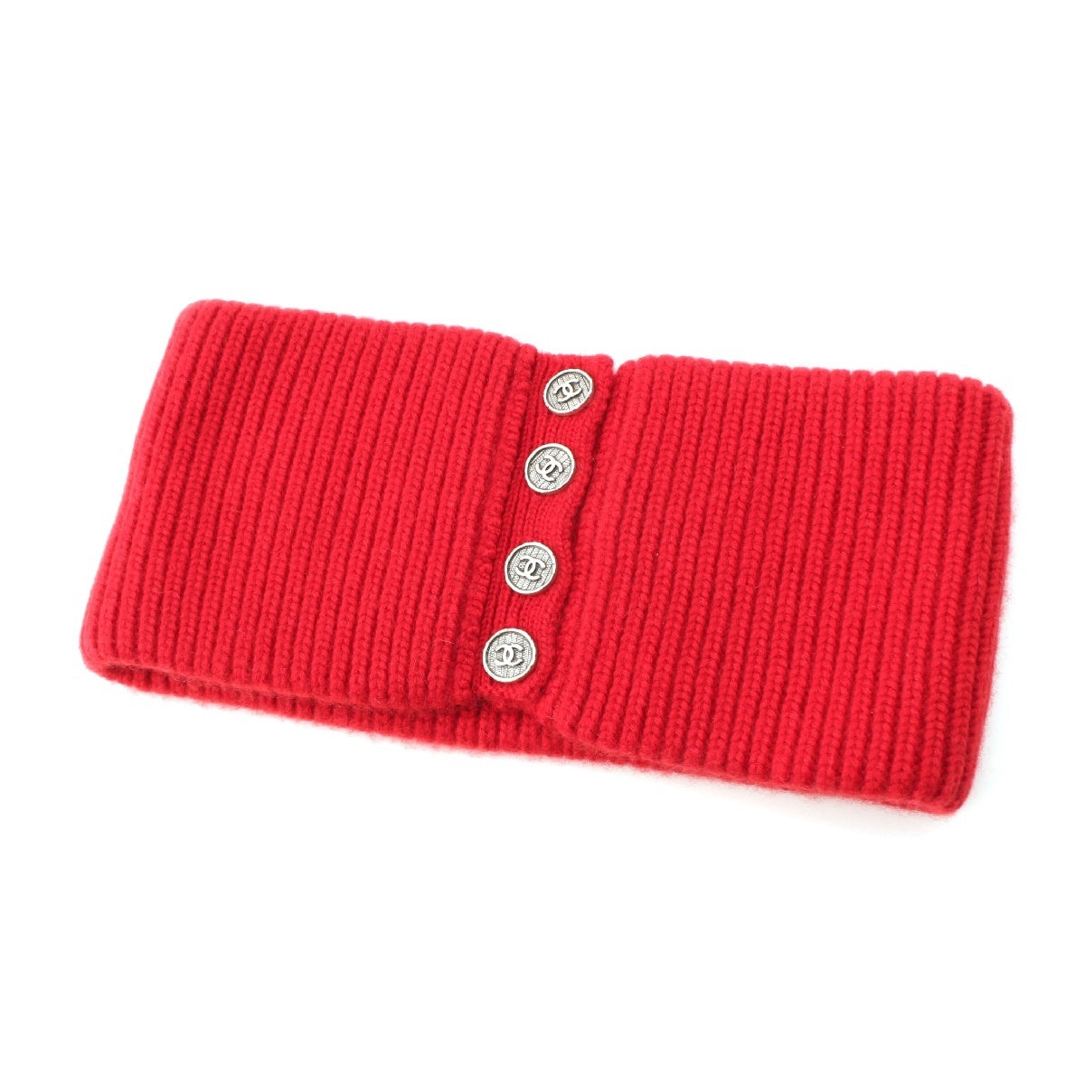 CHANEL knit COCO Button neck warmer Red
