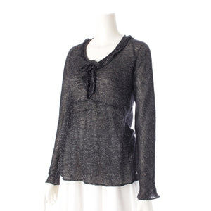 CHANEL Ka Stains Yaool Neck frill glitter COCO Mark long sleeve Cut P29392V19332 black 42