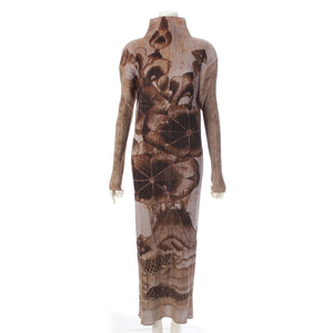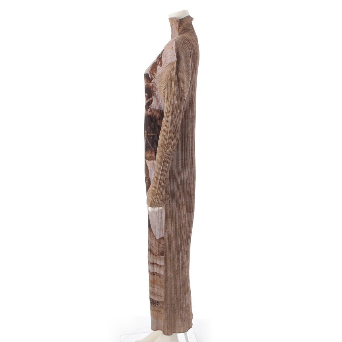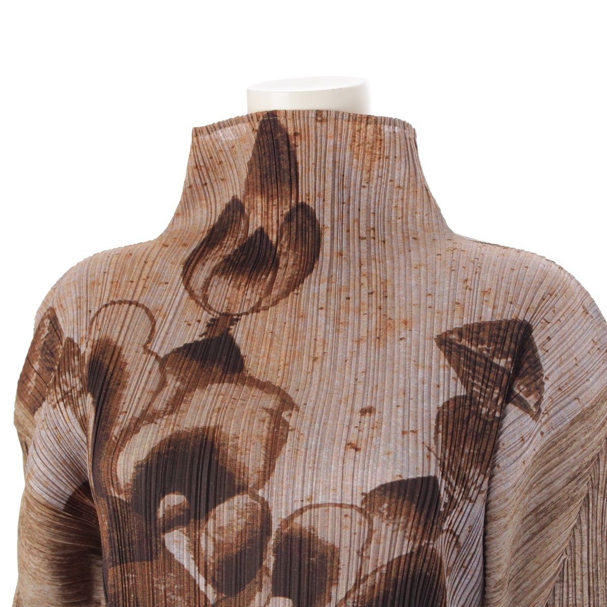 PLEATS PLEASE ISSEY Folk Painting Flower Carp Print one piece PP84-JH432 Brown 4