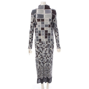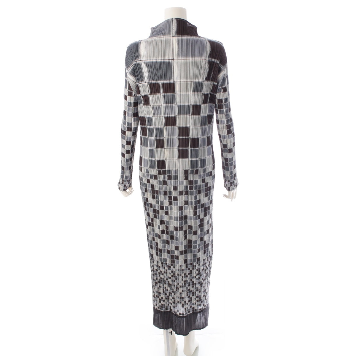 PLEATS PLEASE ISSEY Block Mosaic Pattern High Neck Long one piece PP41-JH665 Gray multicolor 5