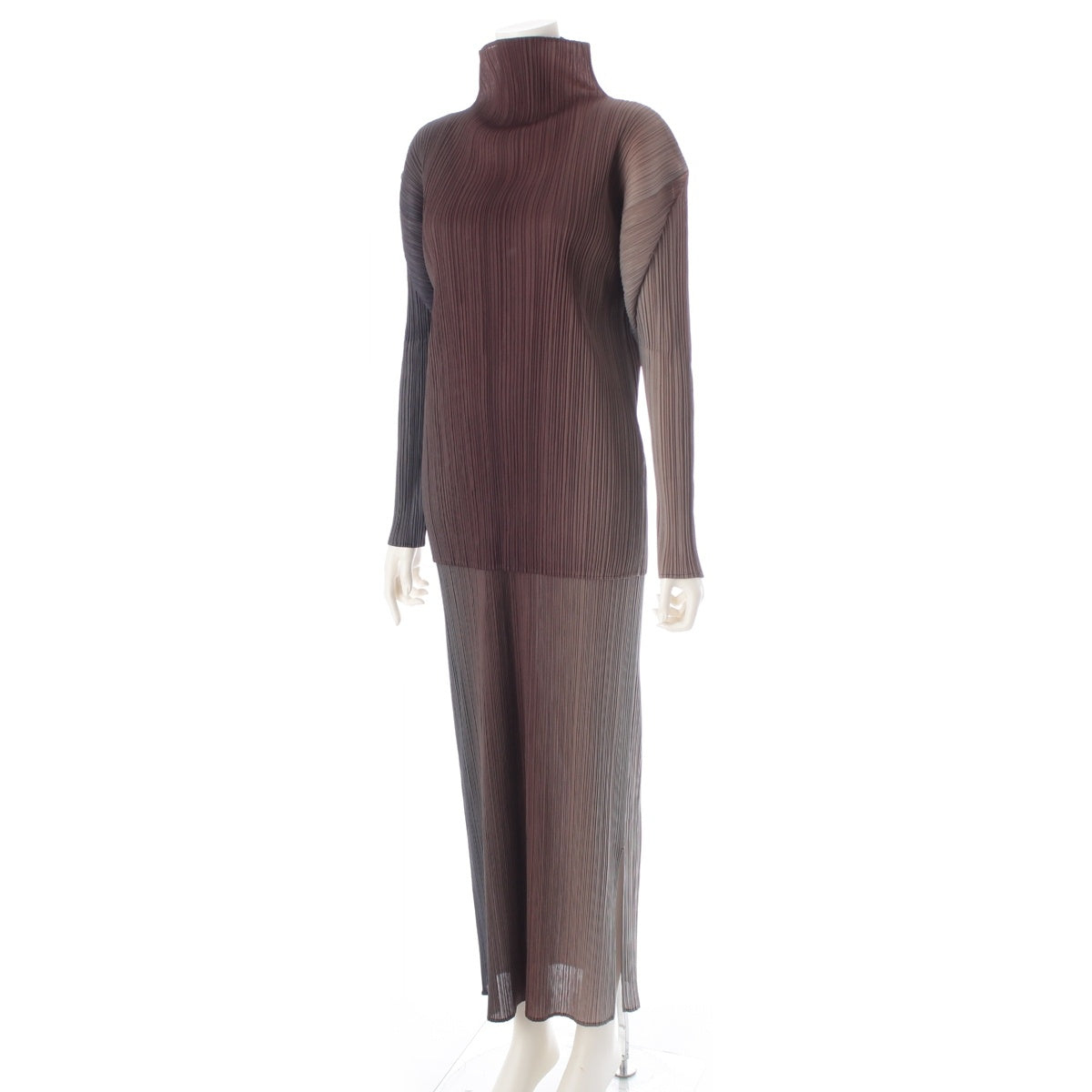 PLEATS PLEASE ISSEY Gradation 3 piece Cardigan, dress, tops set PP61-JO407/PP61-JH416/PP61-JK404 brown green 3/4