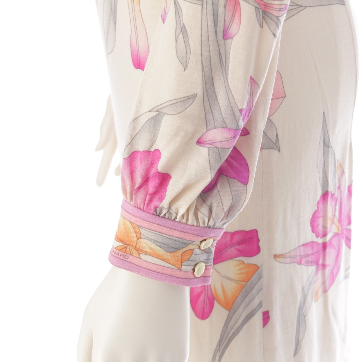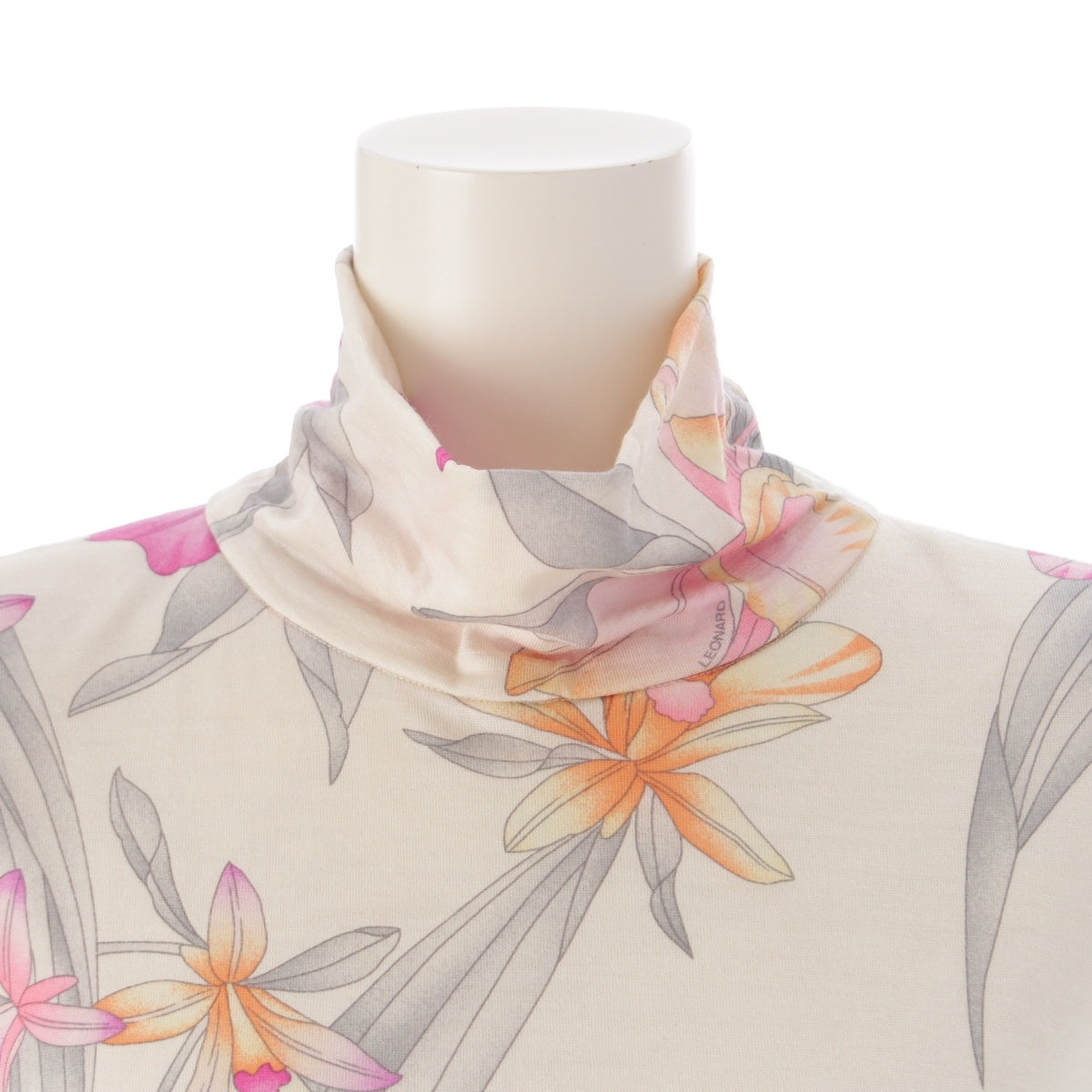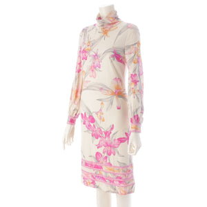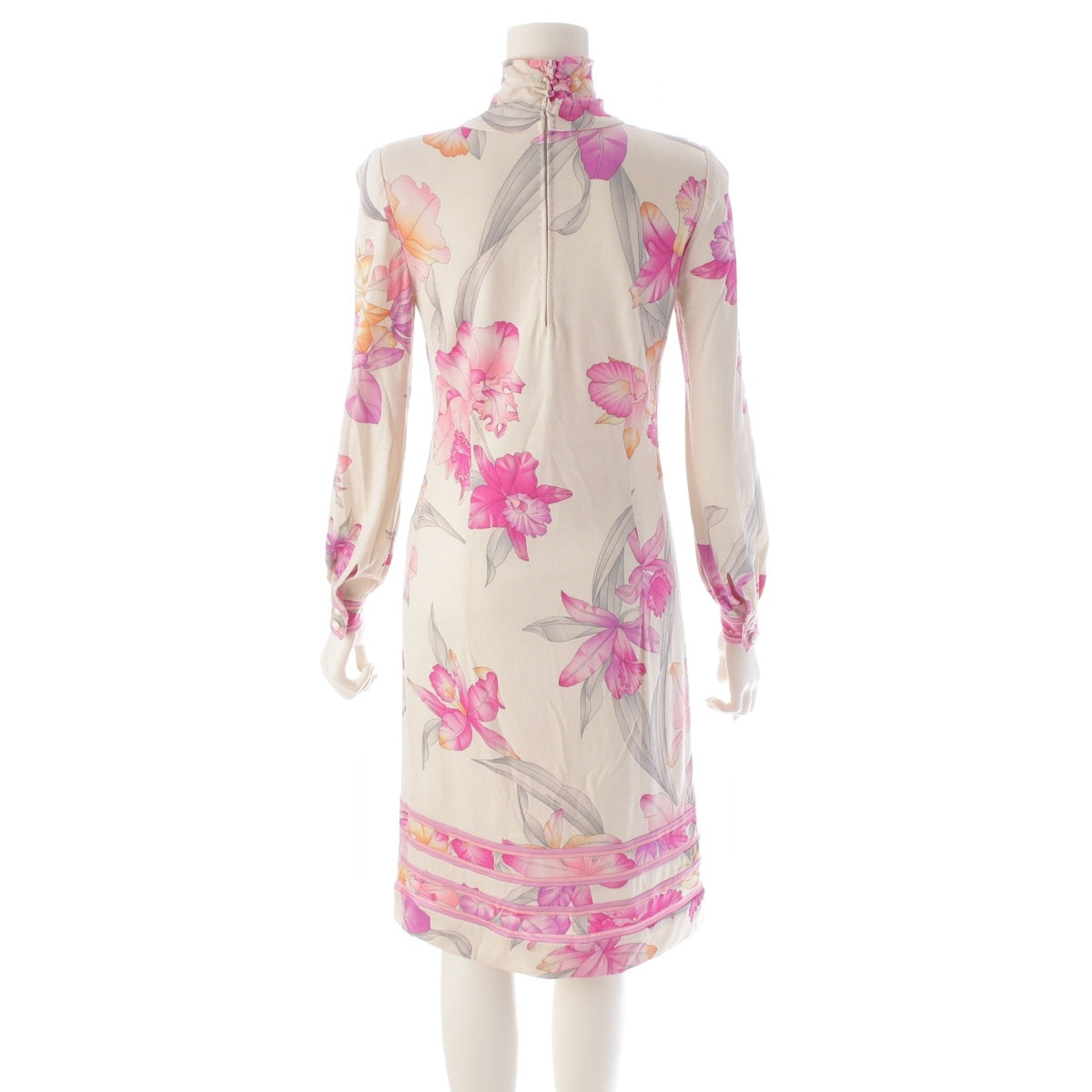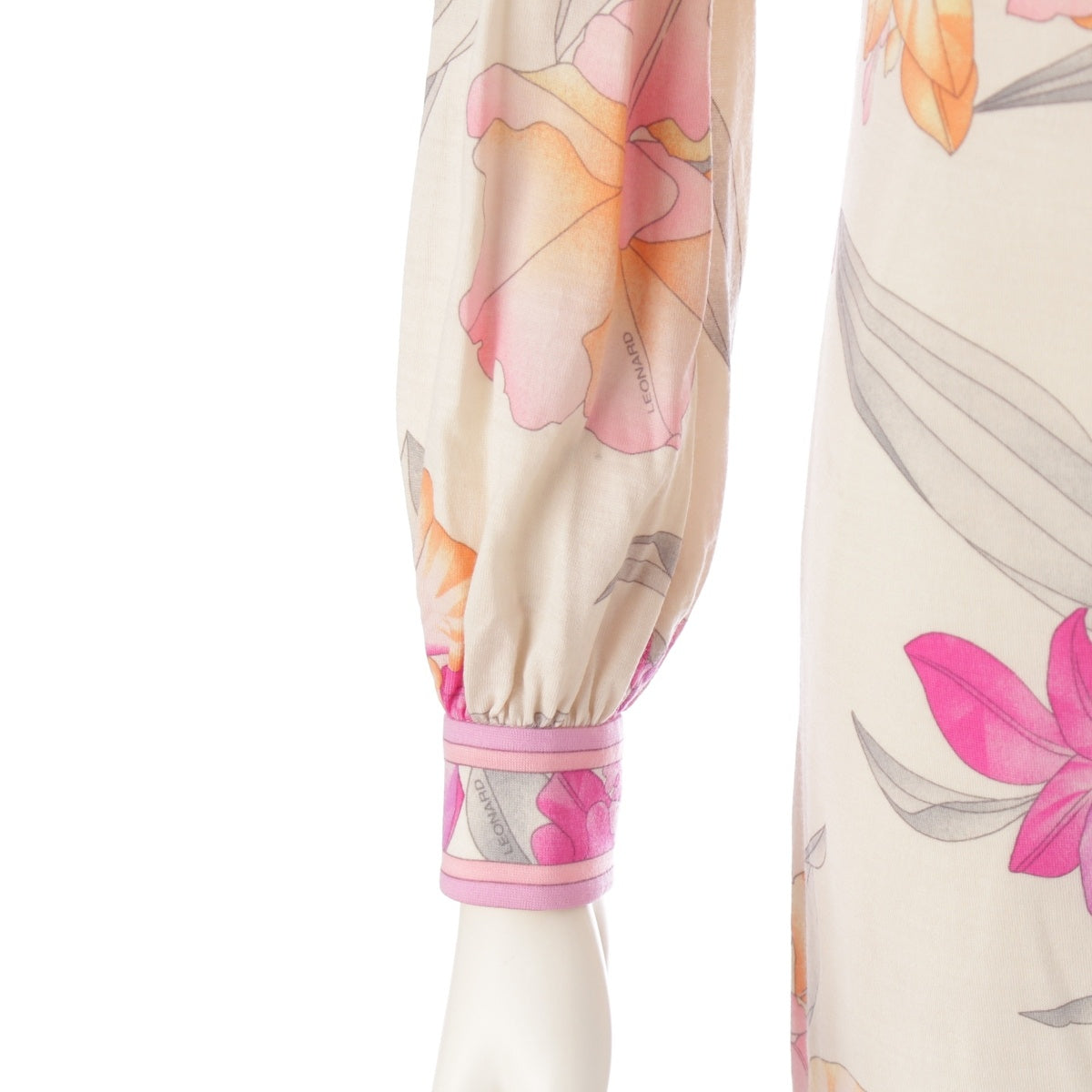 LEONARD wool Stand collar Flower Floral pattern Back zip one piece dress 0380650 beige 34