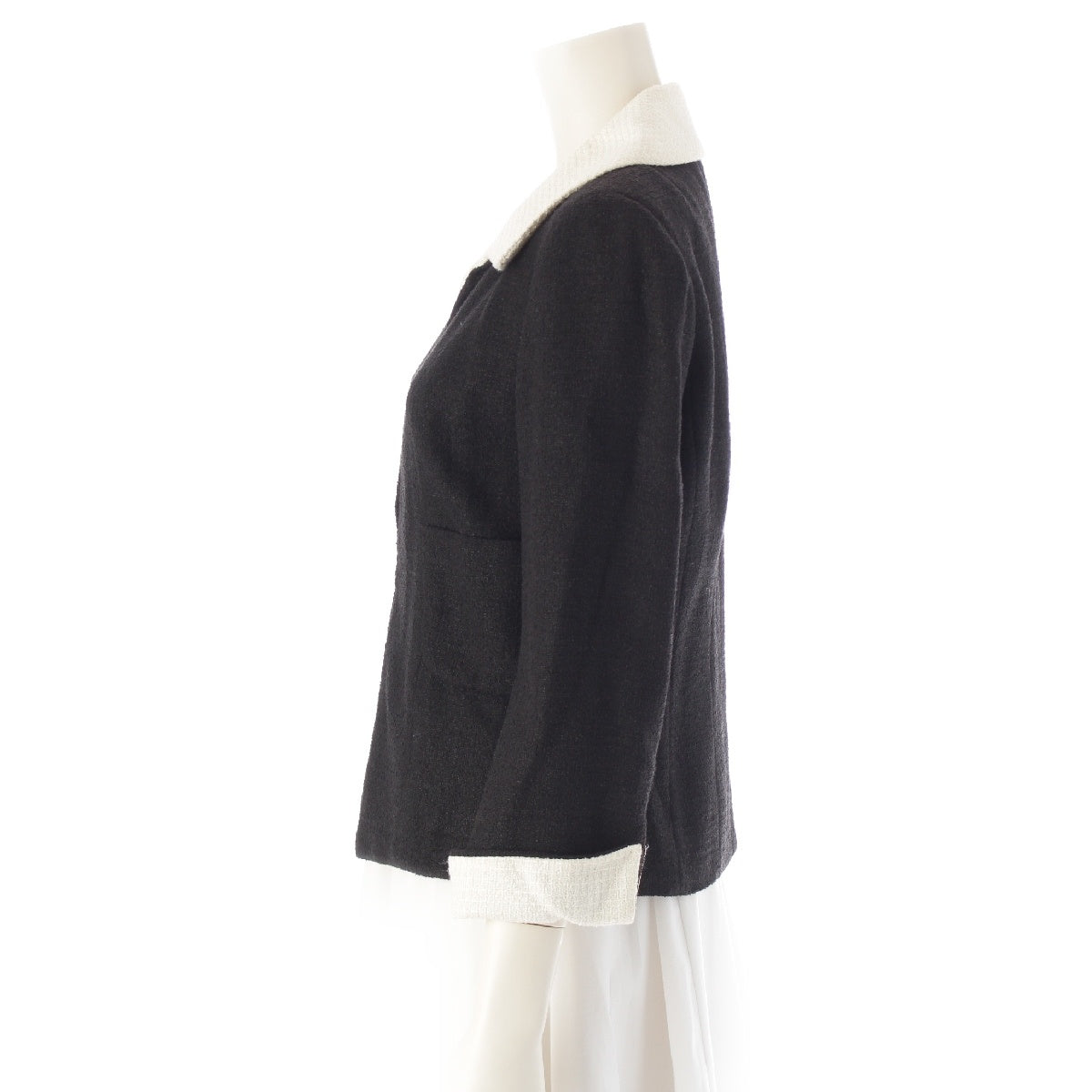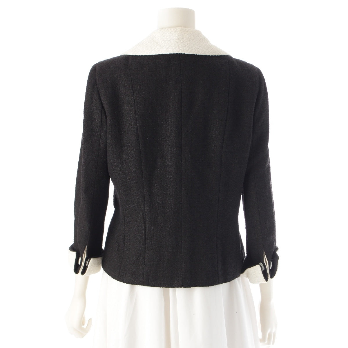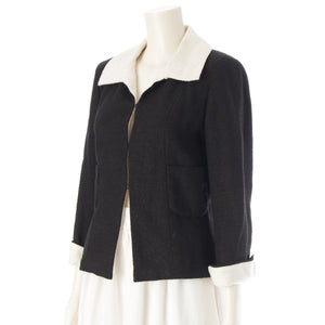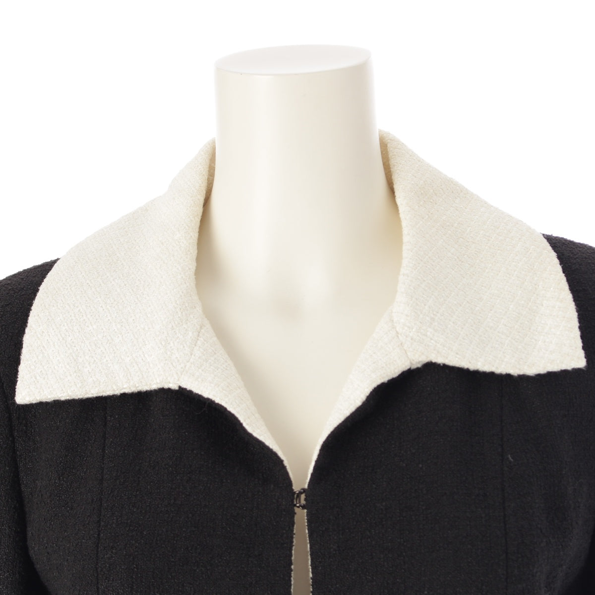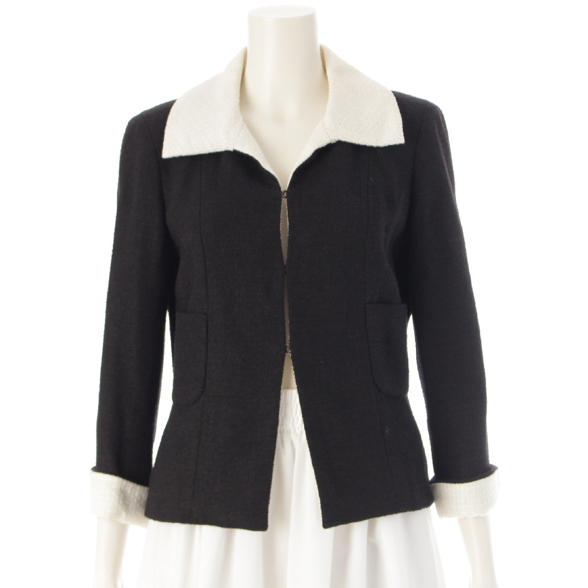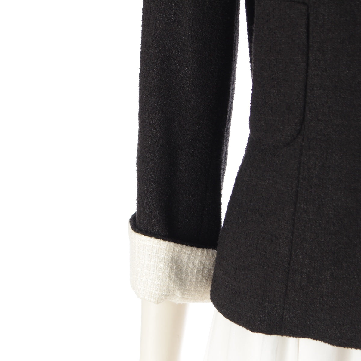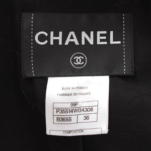 CHANEL 09P Cotton wool COCO Button Zip Up Jacket P35514 Black White 36