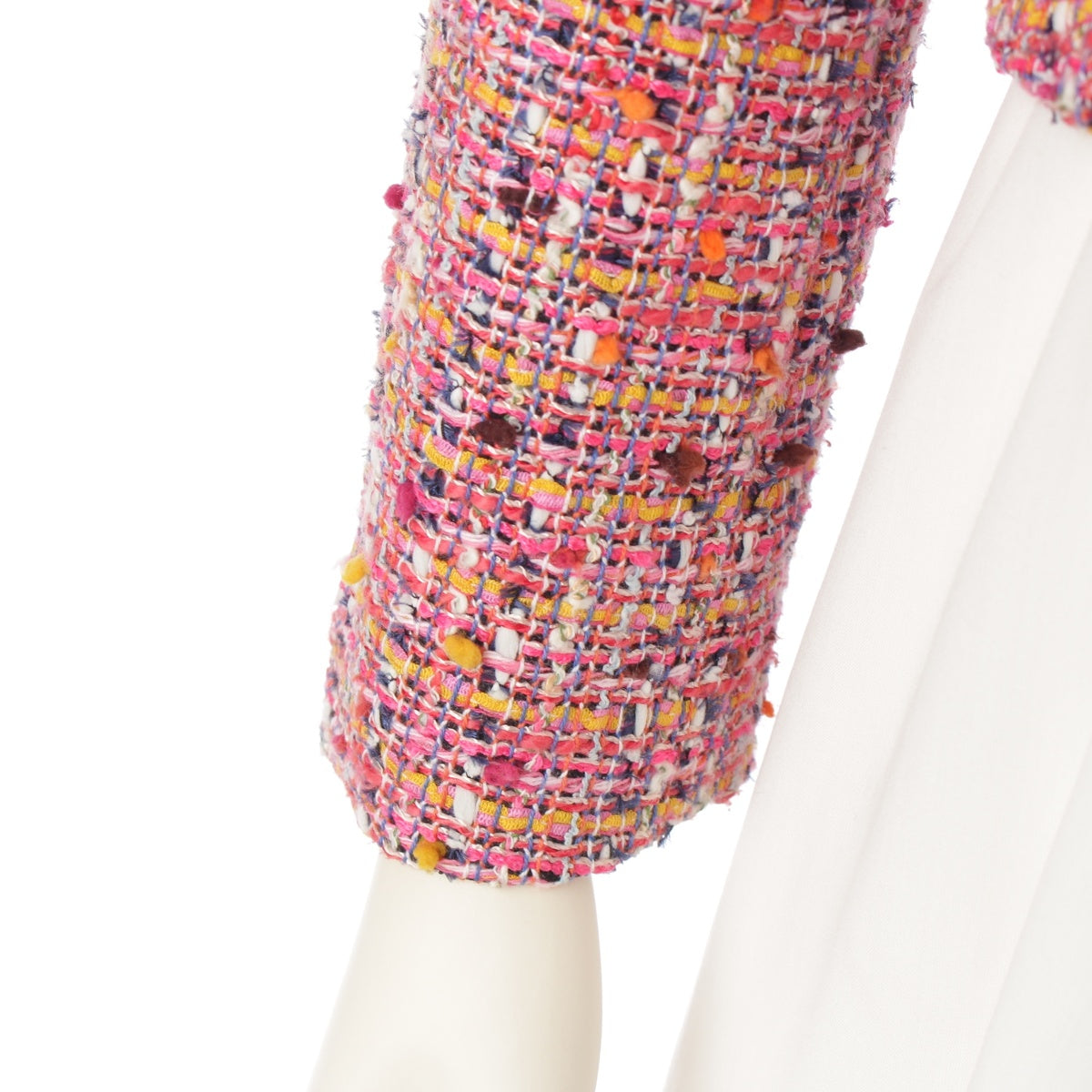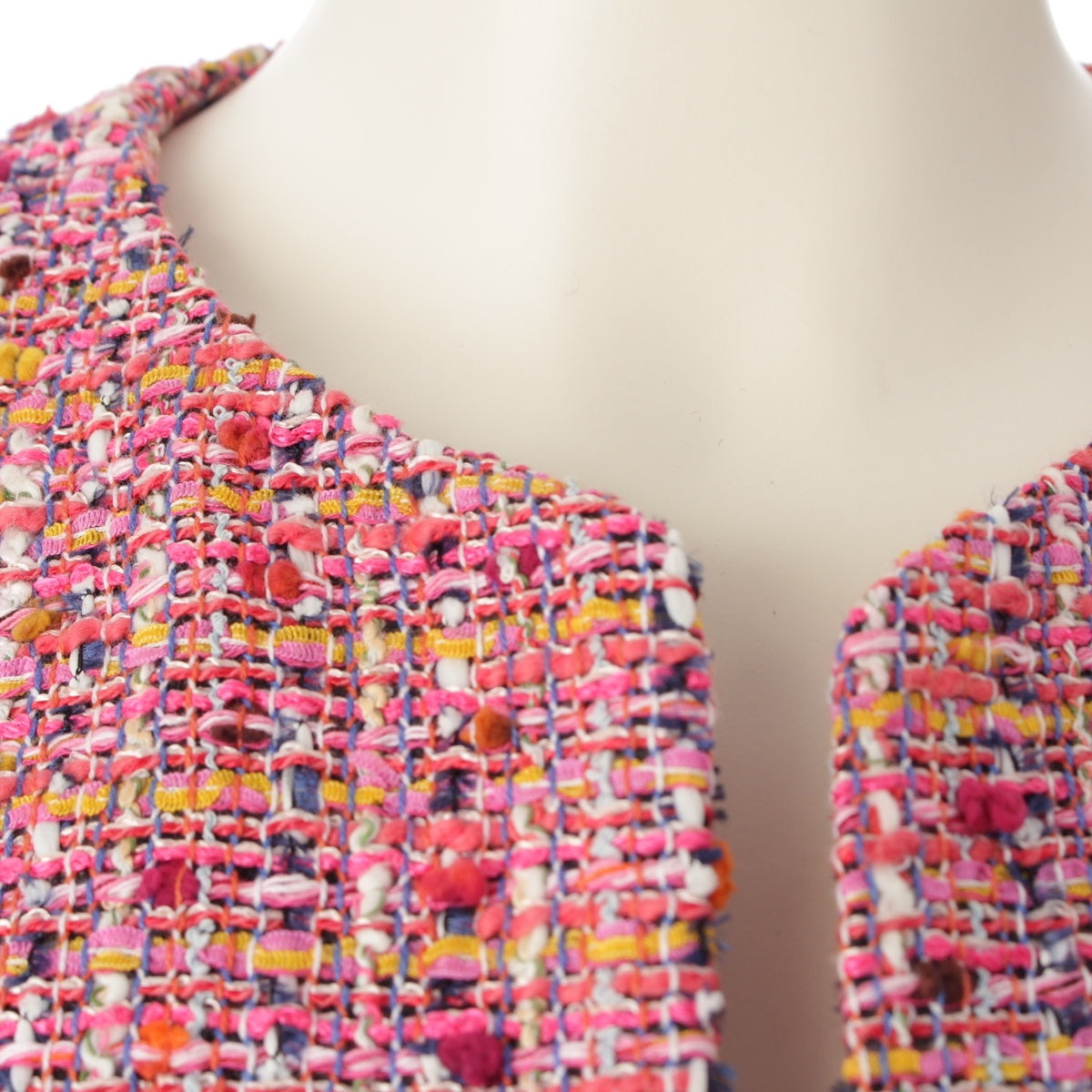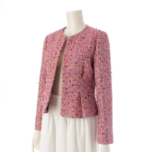 YOKO CHAN Cotton nylon blend Tweed Cropped No color jacket YCJ-119-046 pink 38