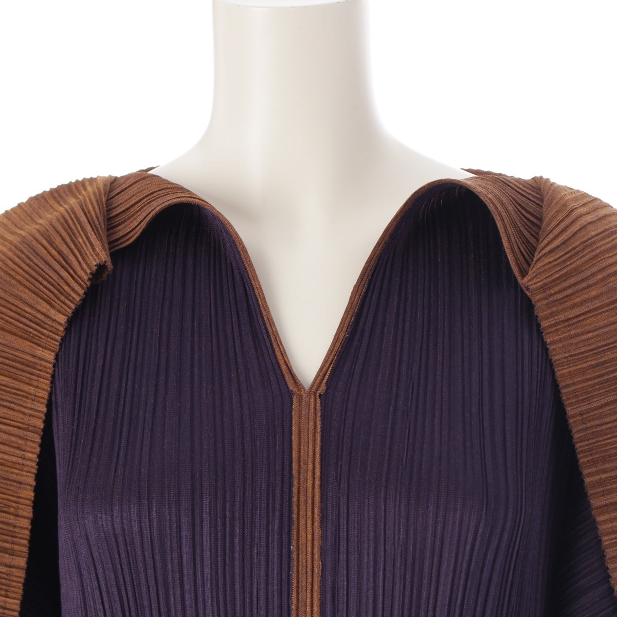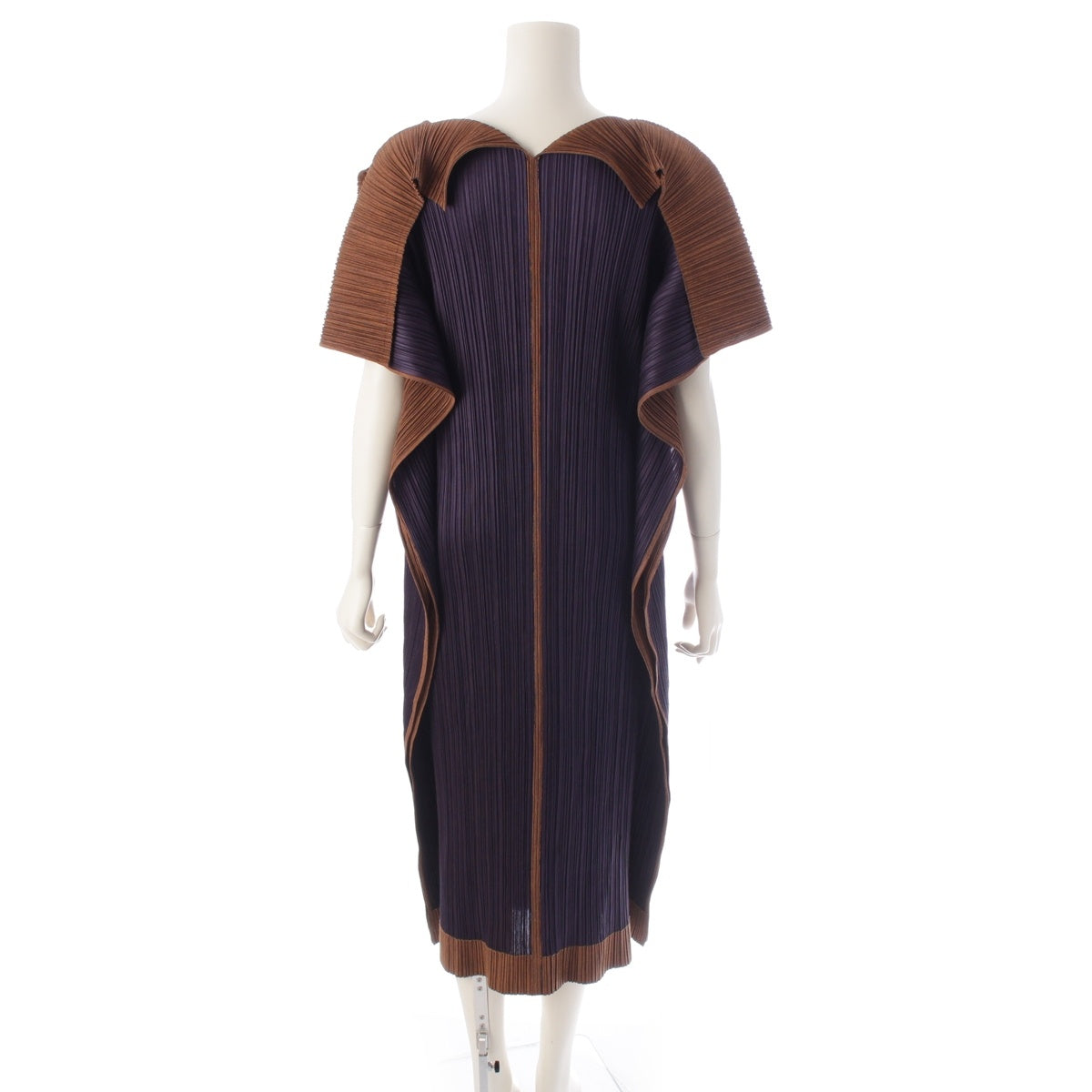 PLEATS PLEASE ISSEY Design Bicolor Sleeveless one piece dress PP03-JH768 Purple x brown 4