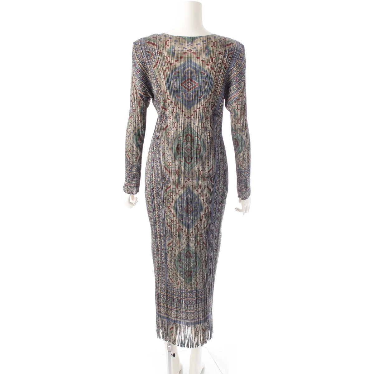 PLEATS PLEASE ISSEY Kilim all-over pattern, fringe design, crew neck one piece dress PP63-JH714 multicolor 5