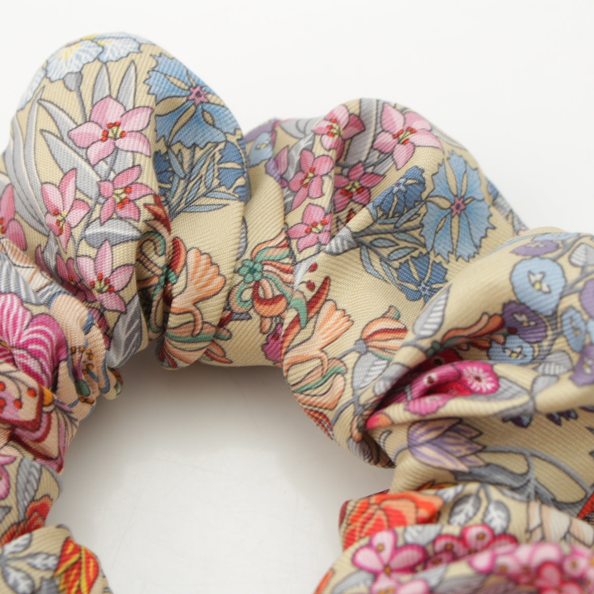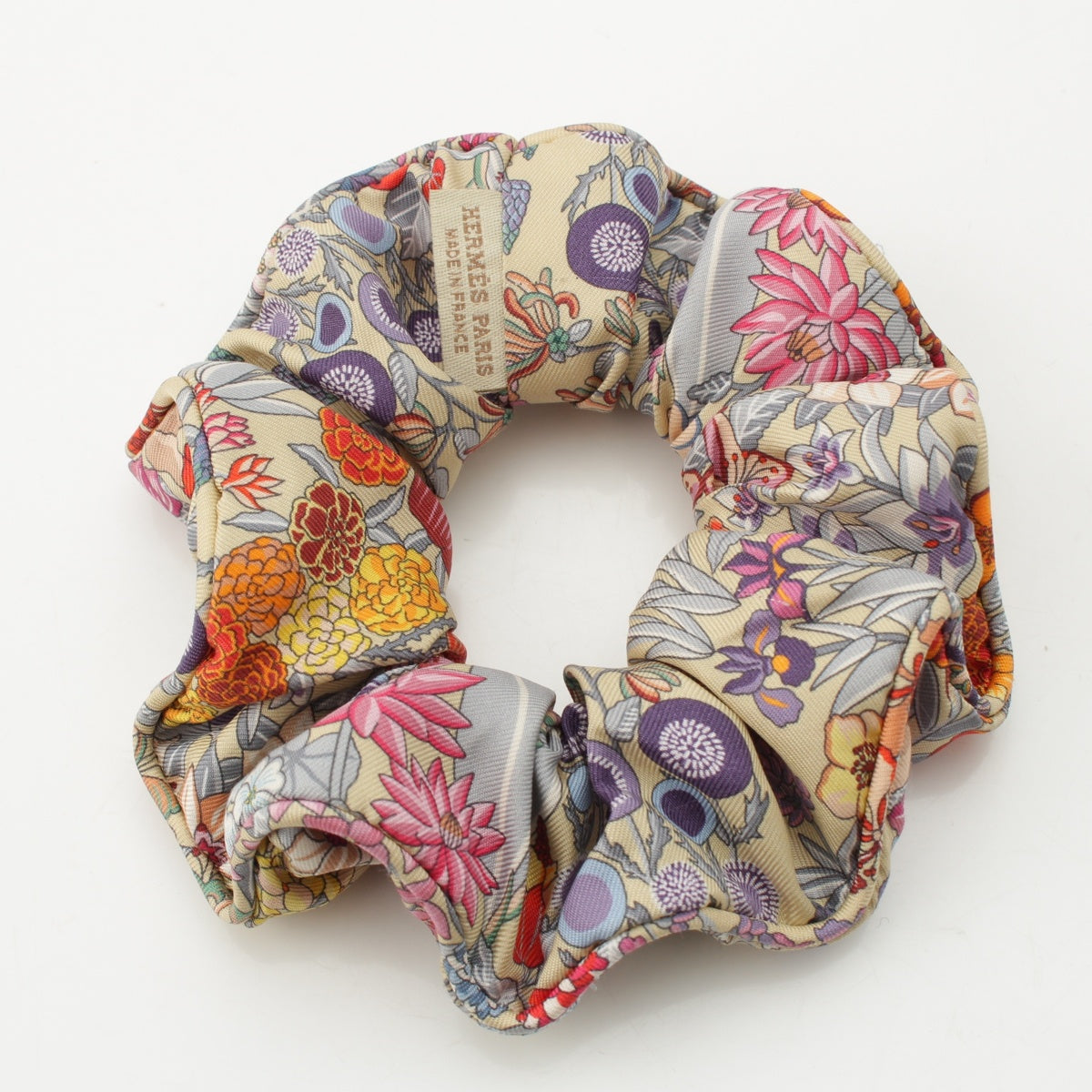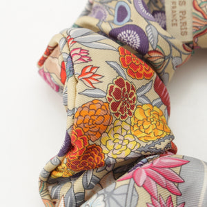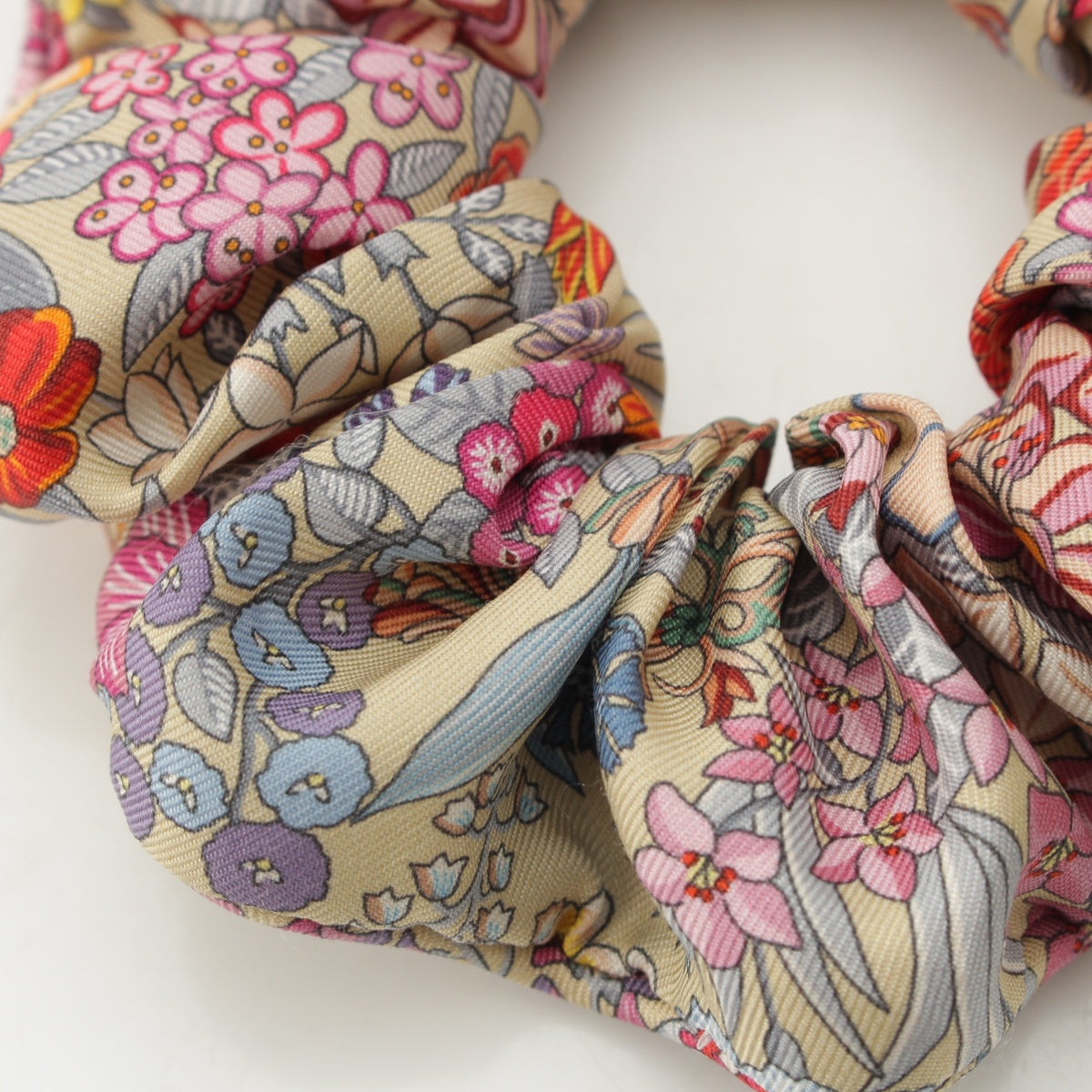 HERMES silk Claudia All-over Print Scrunchie hair accessory Multicolor Beige