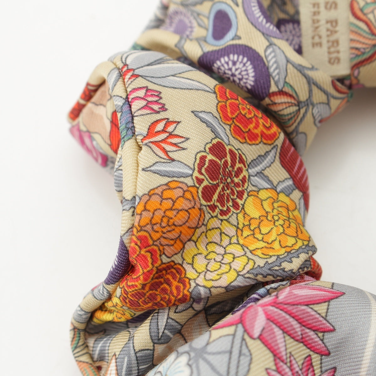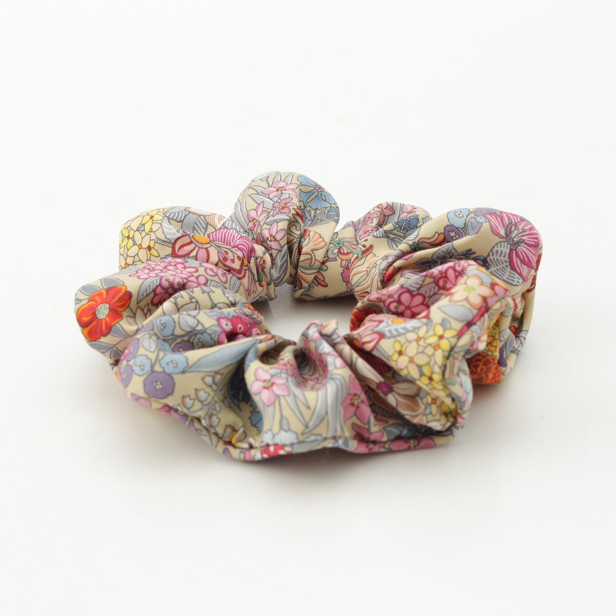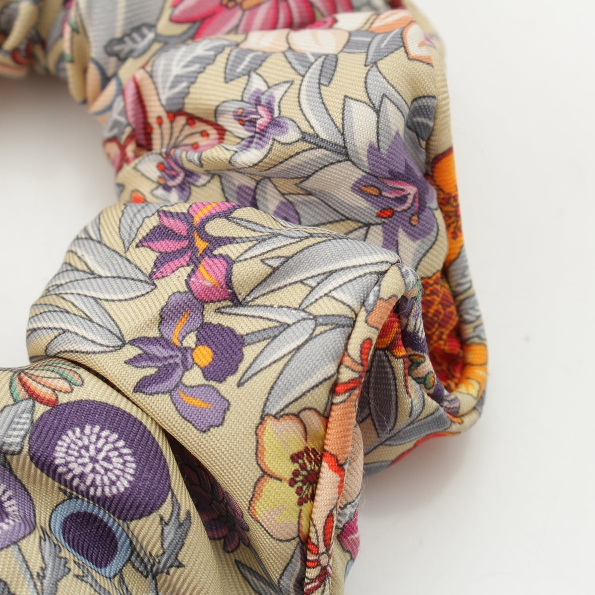 HERMES silk Claudia All-over Print Scrunchie hair accessory Multicolor Beige