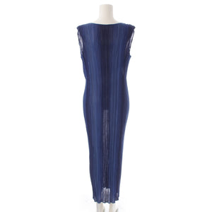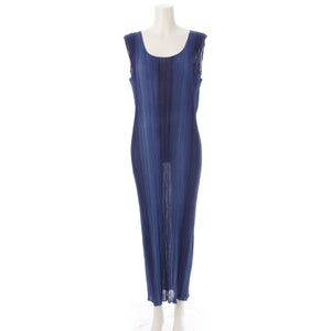 ISSEY MIYAKE V-neck Sleeveless Multi-stripe Multi-color one piece dress IM53-FH918 Blue L
