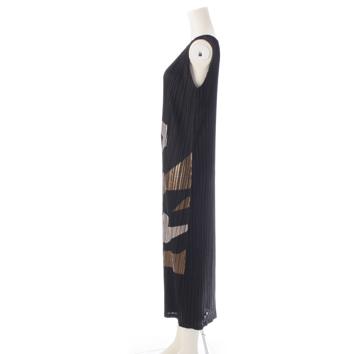 PLEATS PLEASE ISSEY Foil Print Graphic Pattern Sleeveless one piece dress PP53-JH514 Black silver gold 4