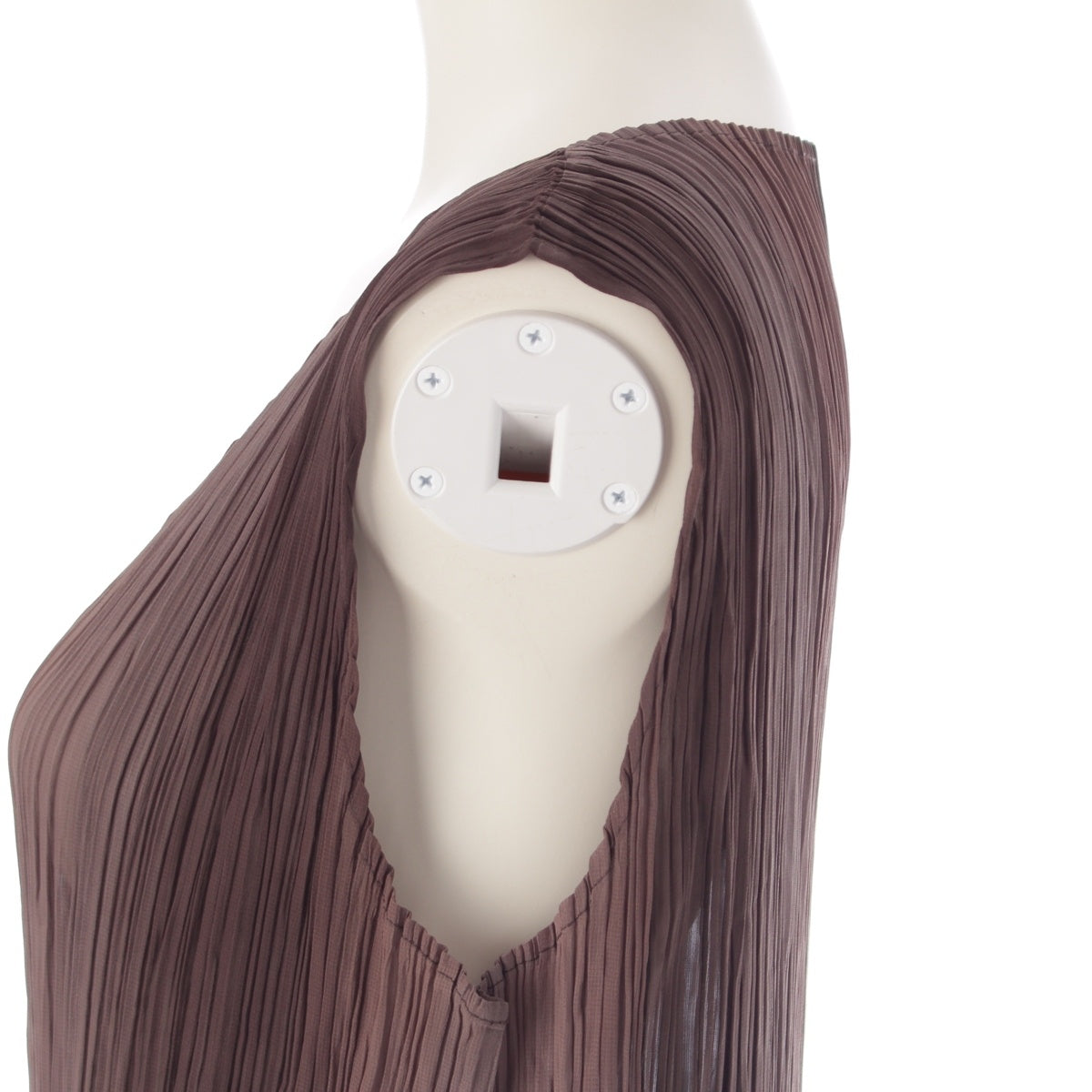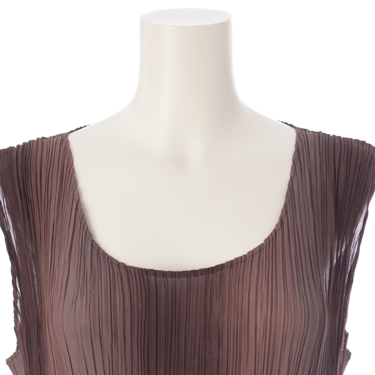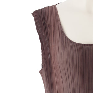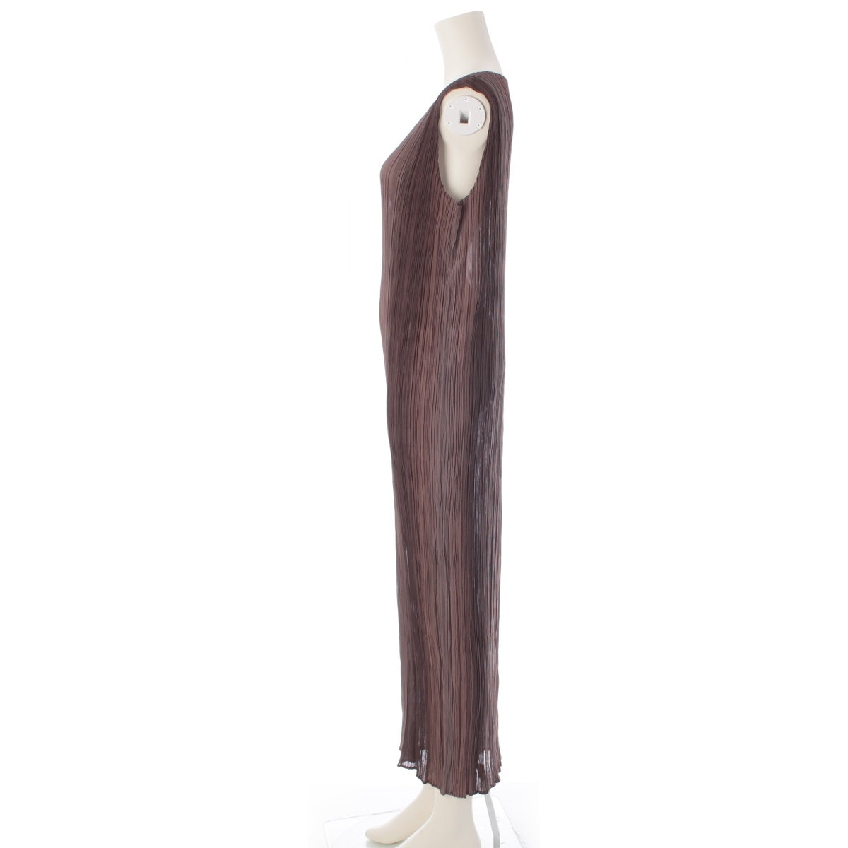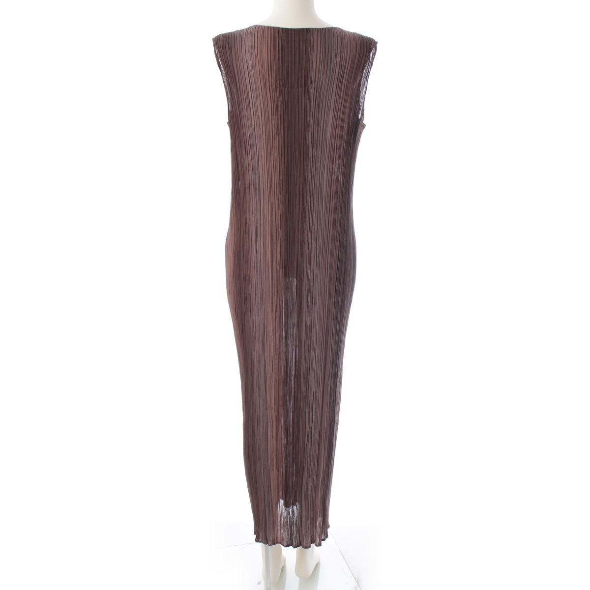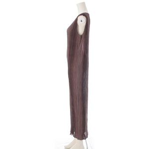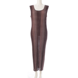 ISSEY MIYAKE Round neck Multi-stripes Multi-color Sleeveless one piece dress IM53-FH918 Brown L