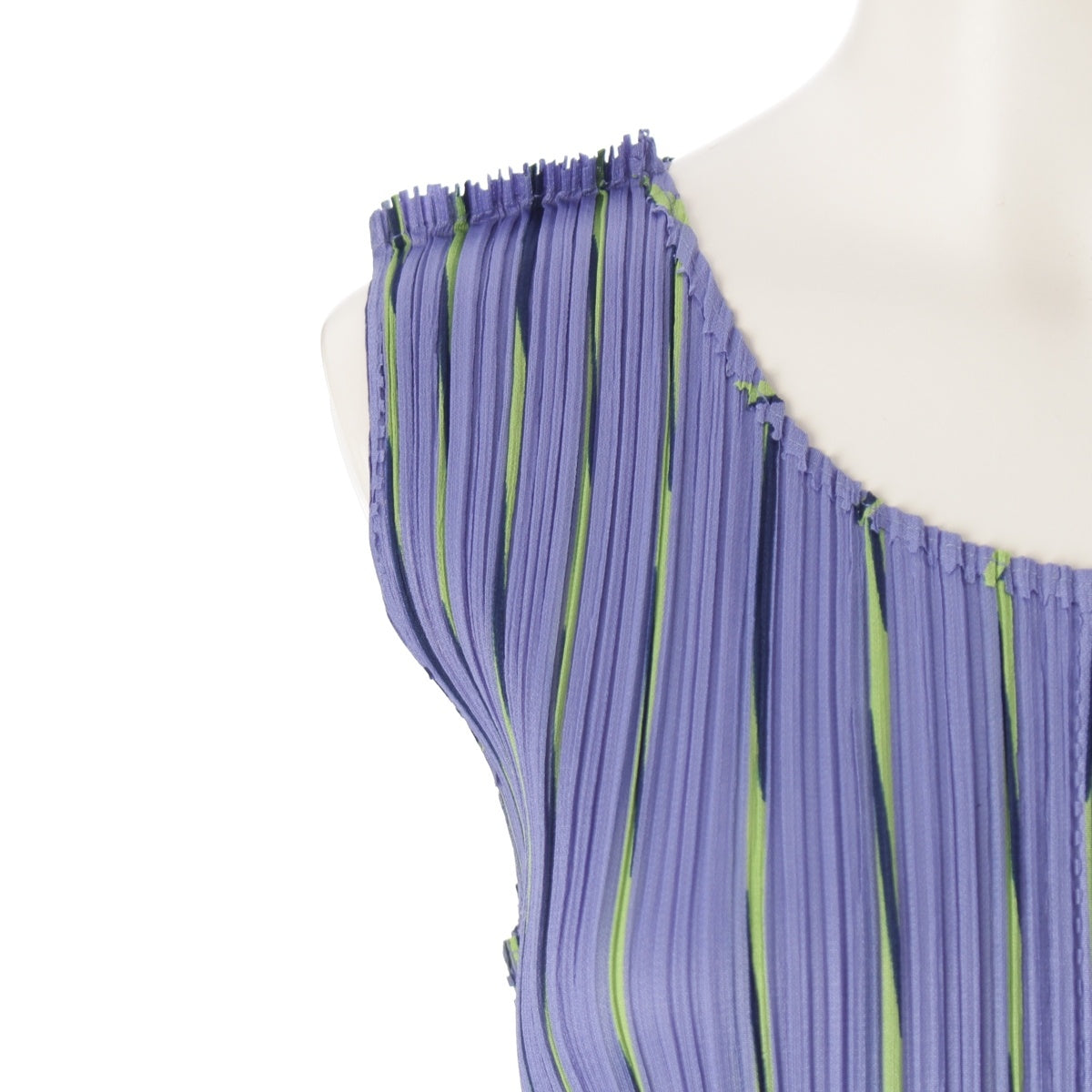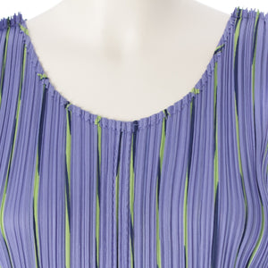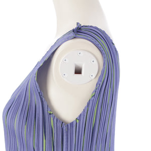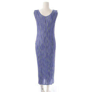 PLEATS PLEASE ISSEY Multi-stripe sleeveless one piece dress PP51-JH687 Blue Light Green Navy 4