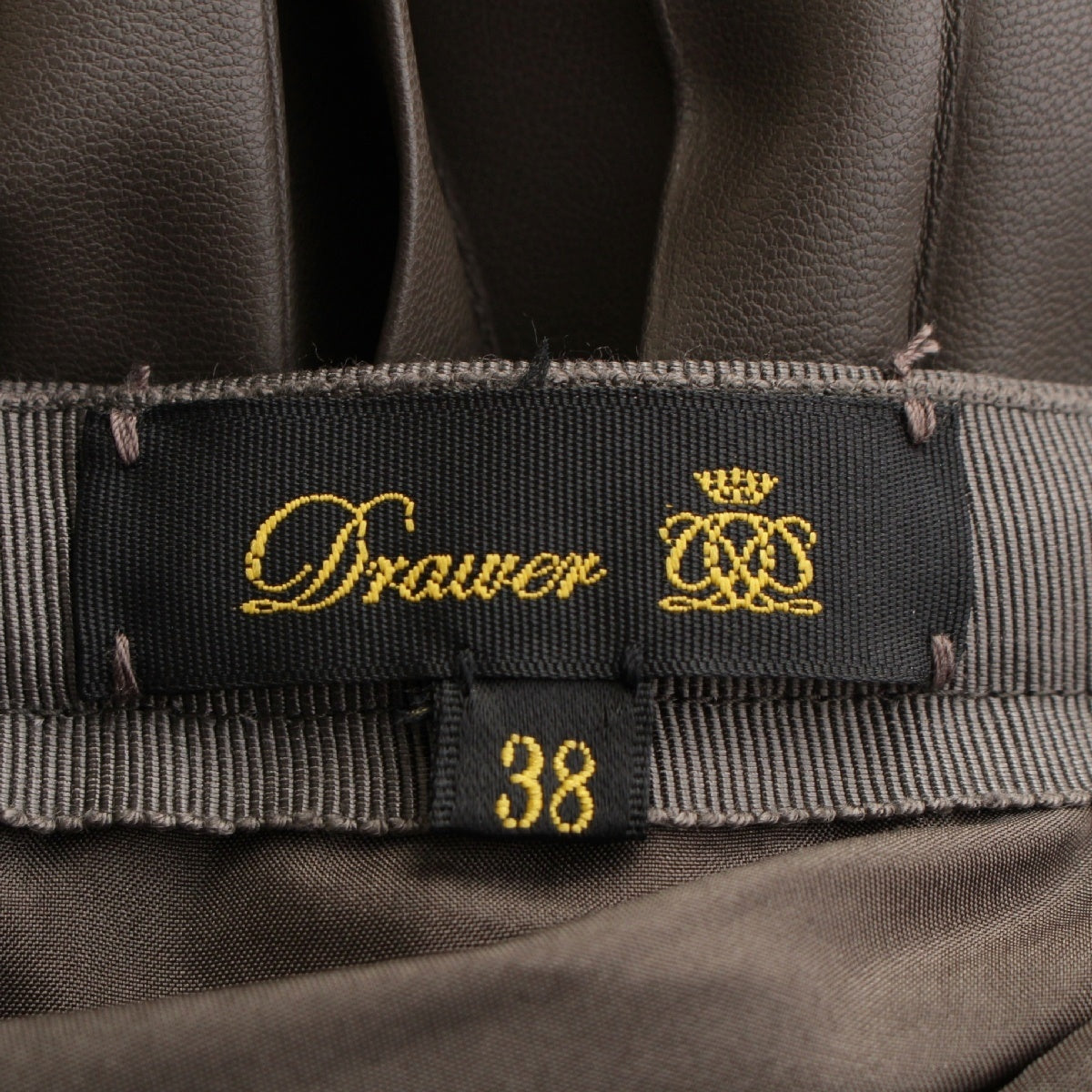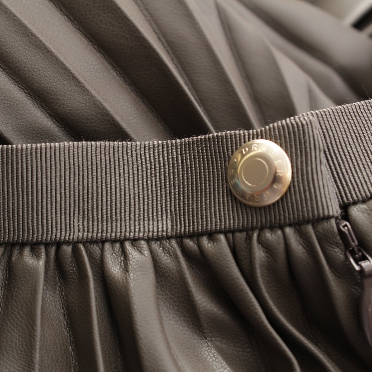 Drawer Faux leather FALL2 Accordion Pleated Long Side Zip skirt 6524-299-1837 khaki 38