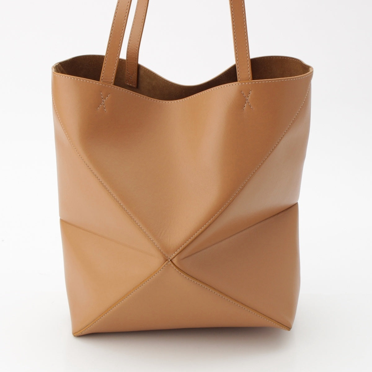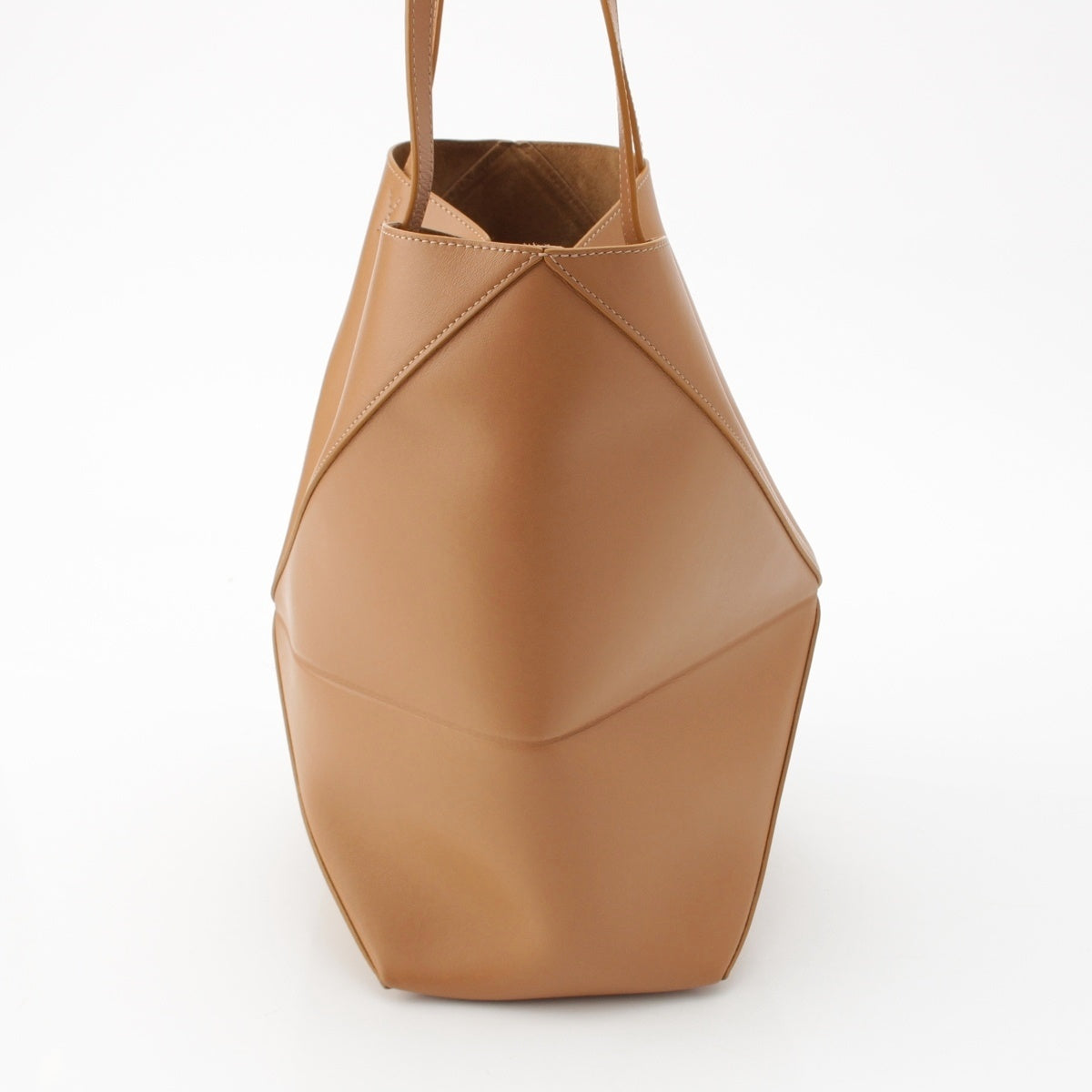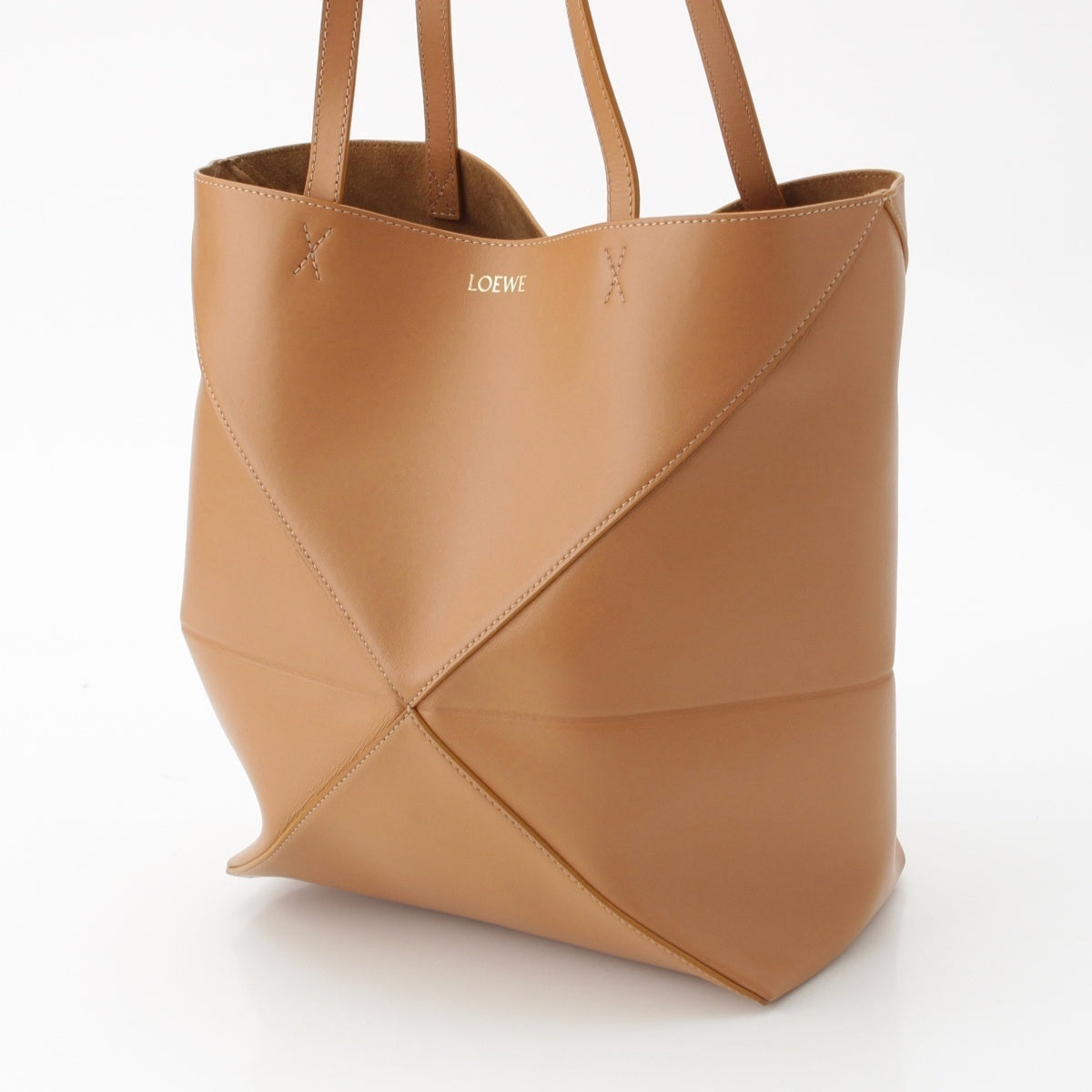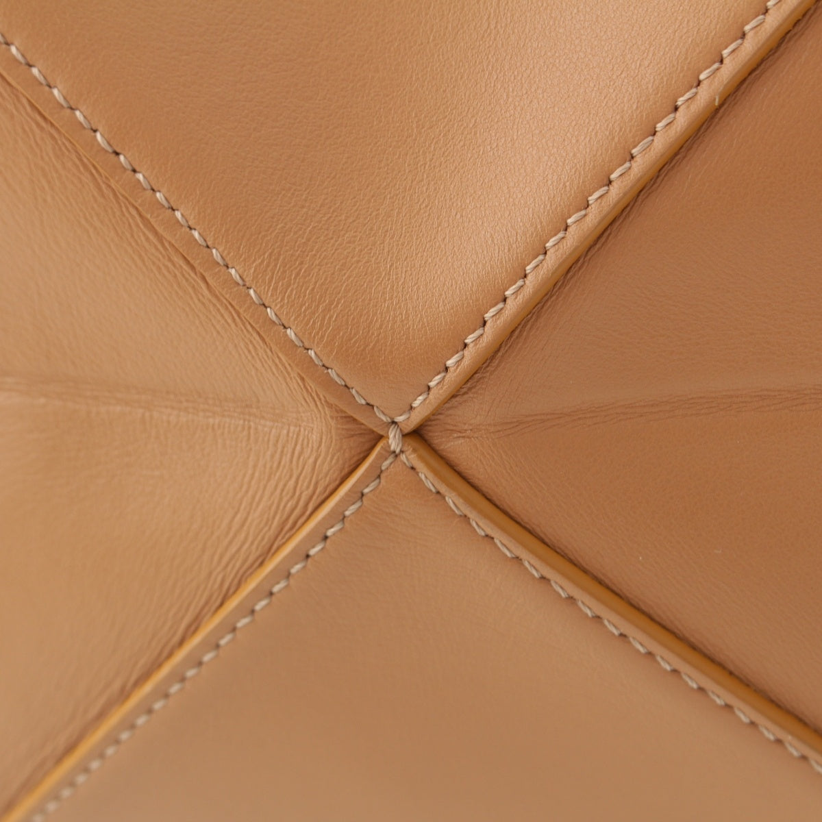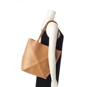 LOEWE Puzzle fold leather warm dessert Tote Bag Light beige Tan