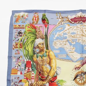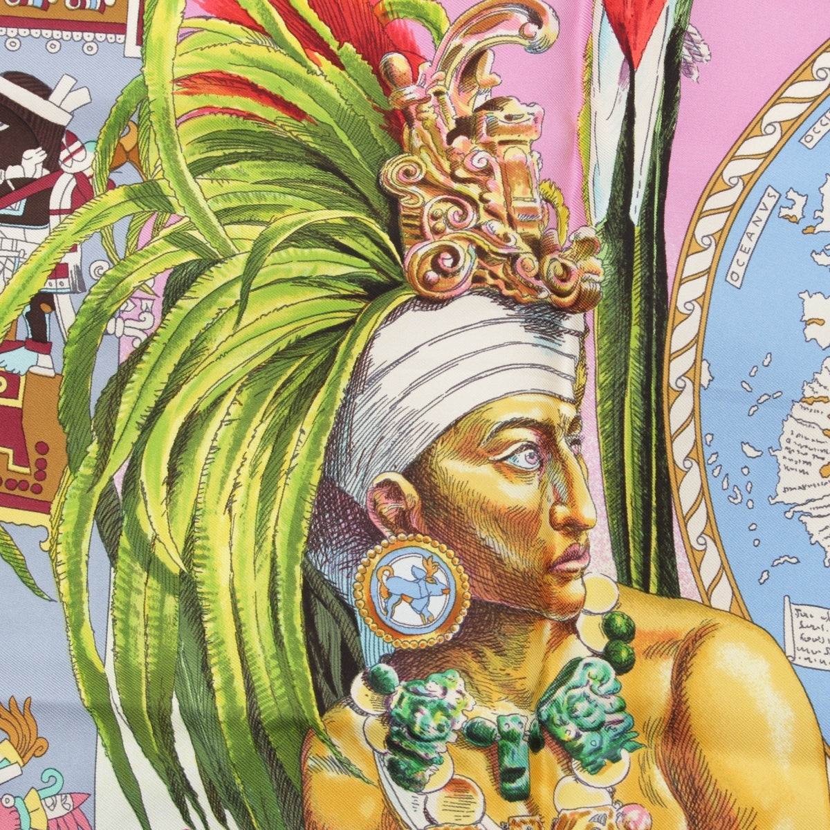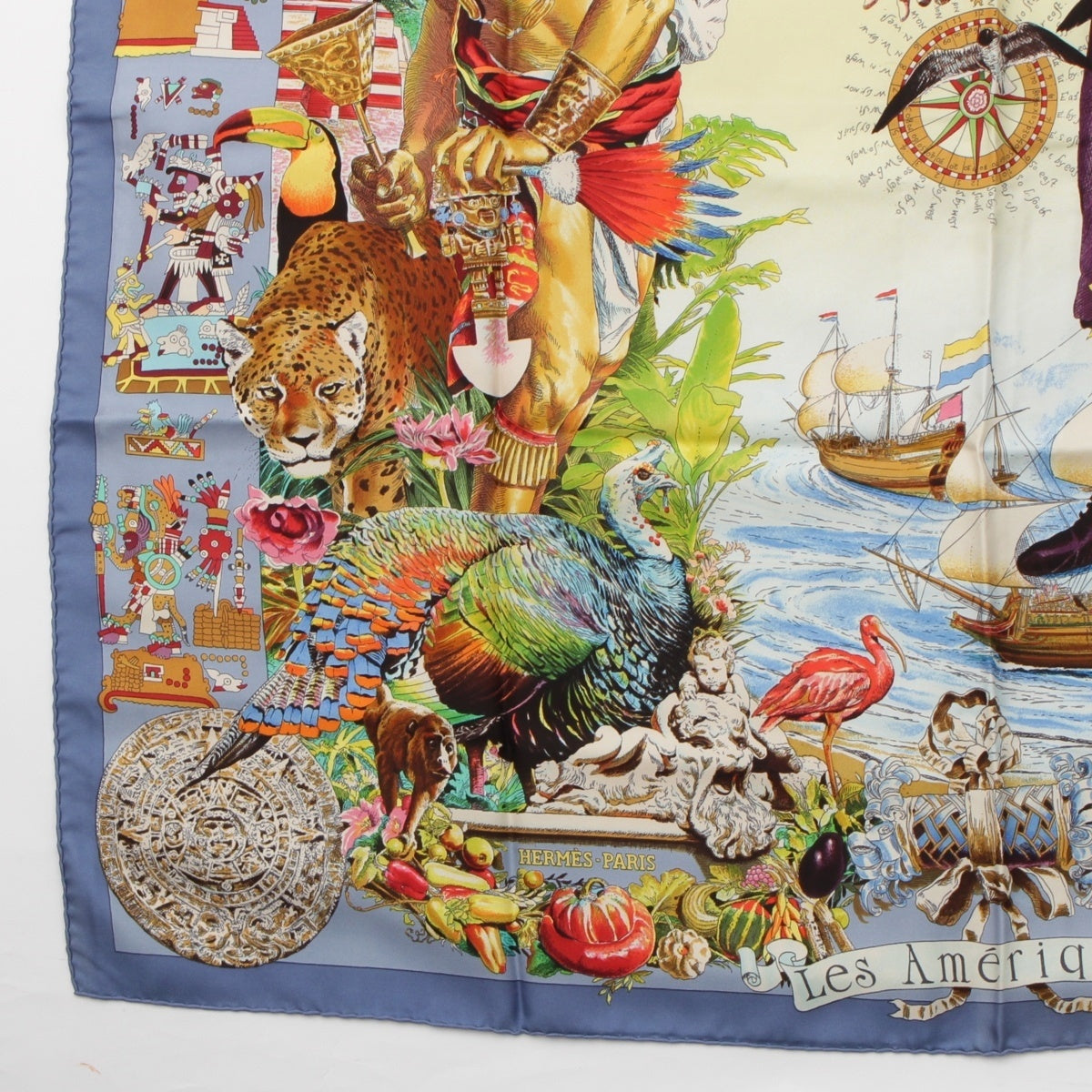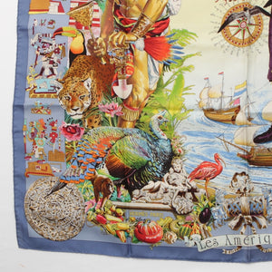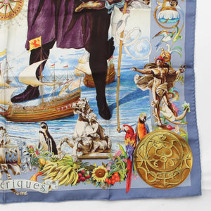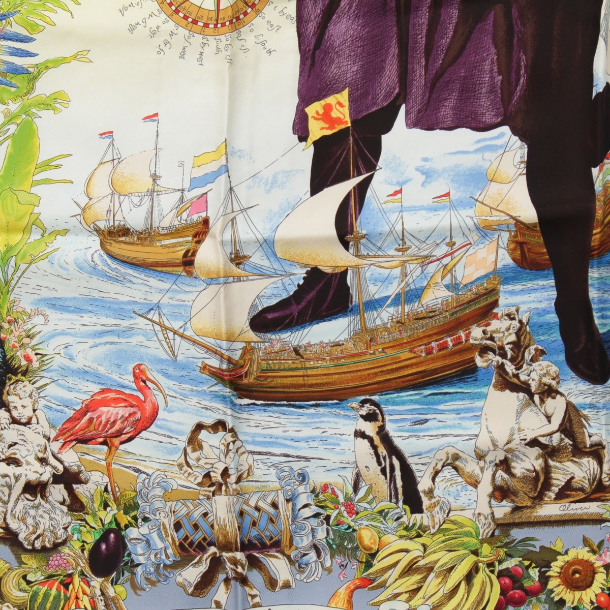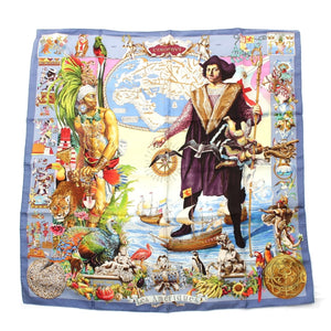 HERMES silk Carré 90 LES AMERIQUES Americas Columbus scarf multicolor