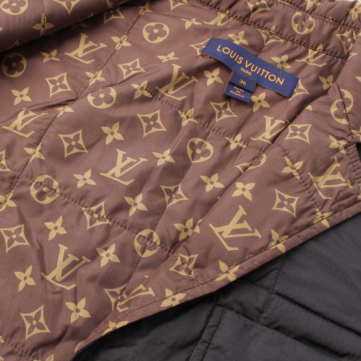 LOUIS VUITTON Nylon Monogram quilting Jacket outer RW212W Black x brown 36
