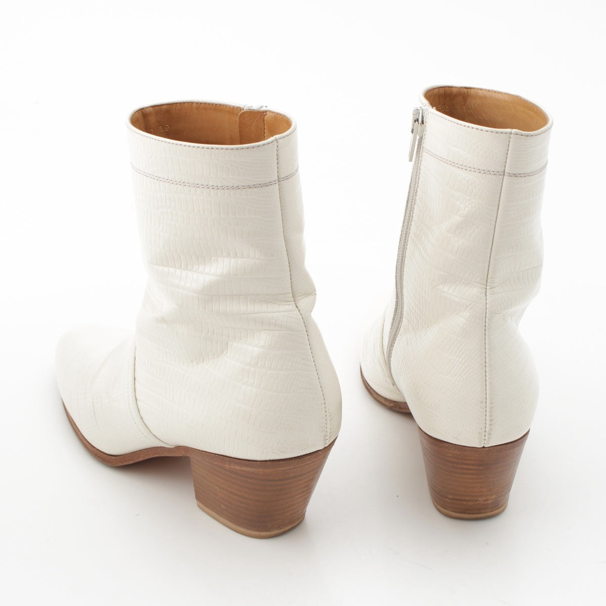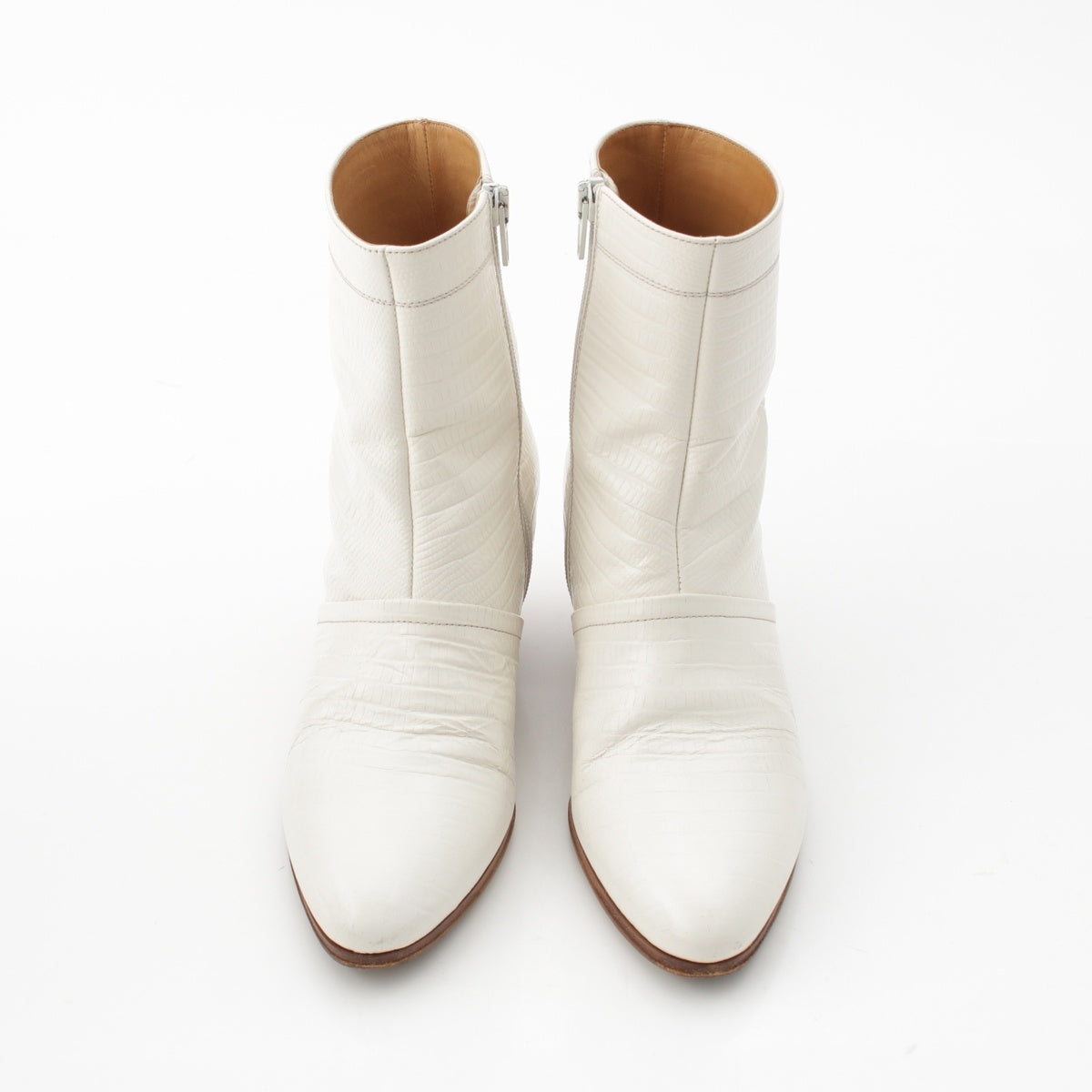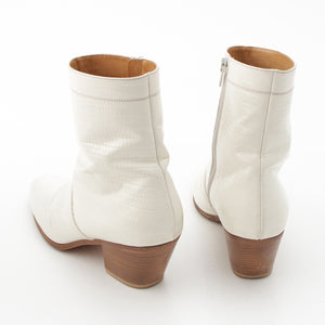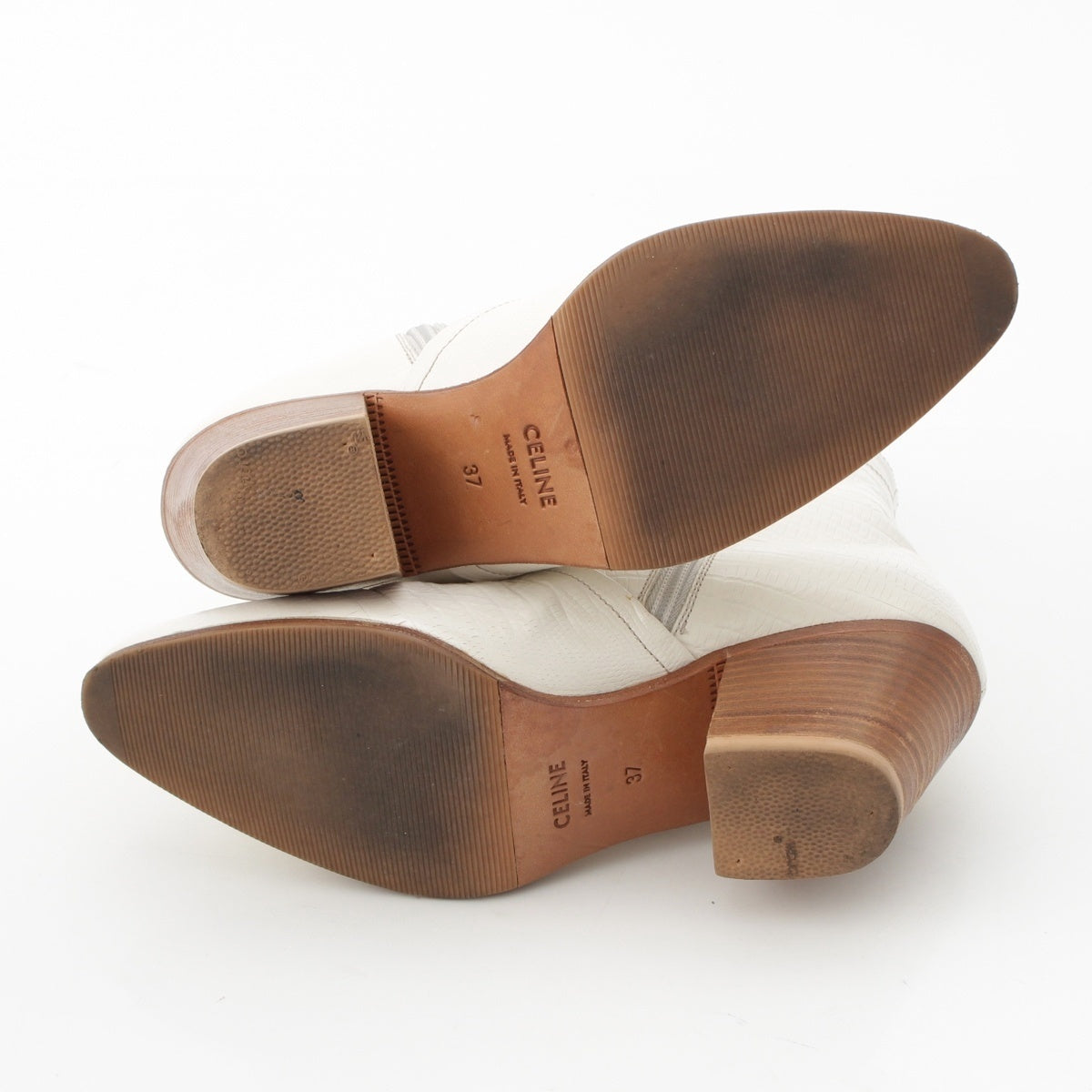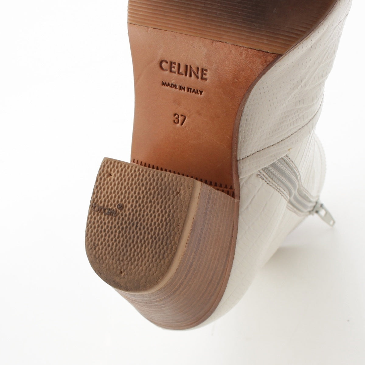 CELINE Edith Reman leather Croc embossed side zip heel boots RM1119 white 37