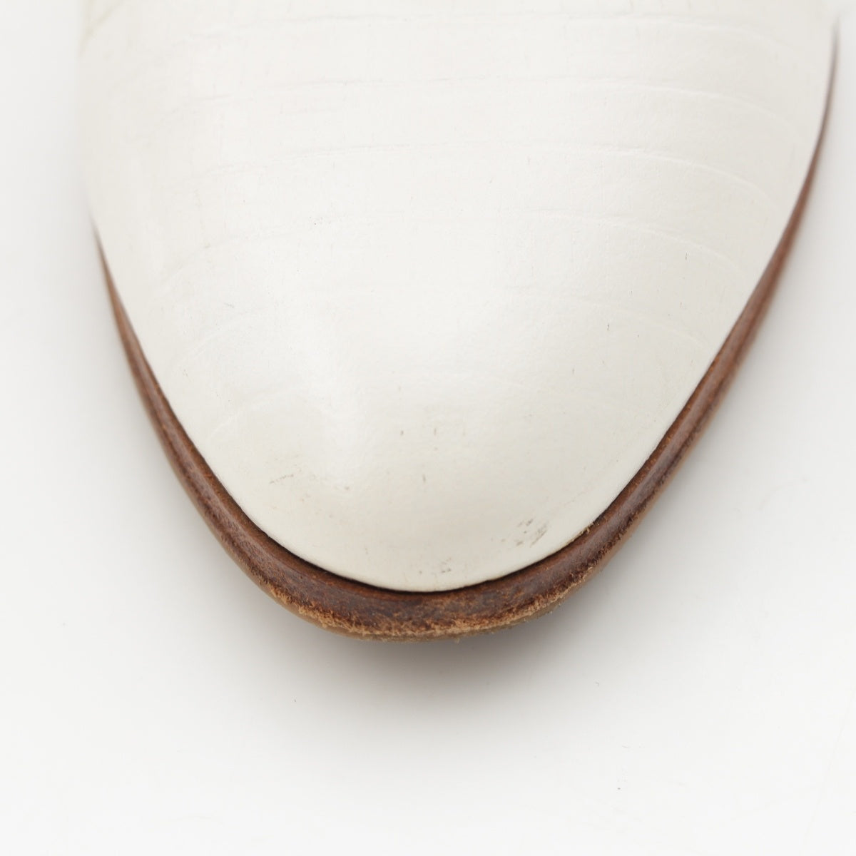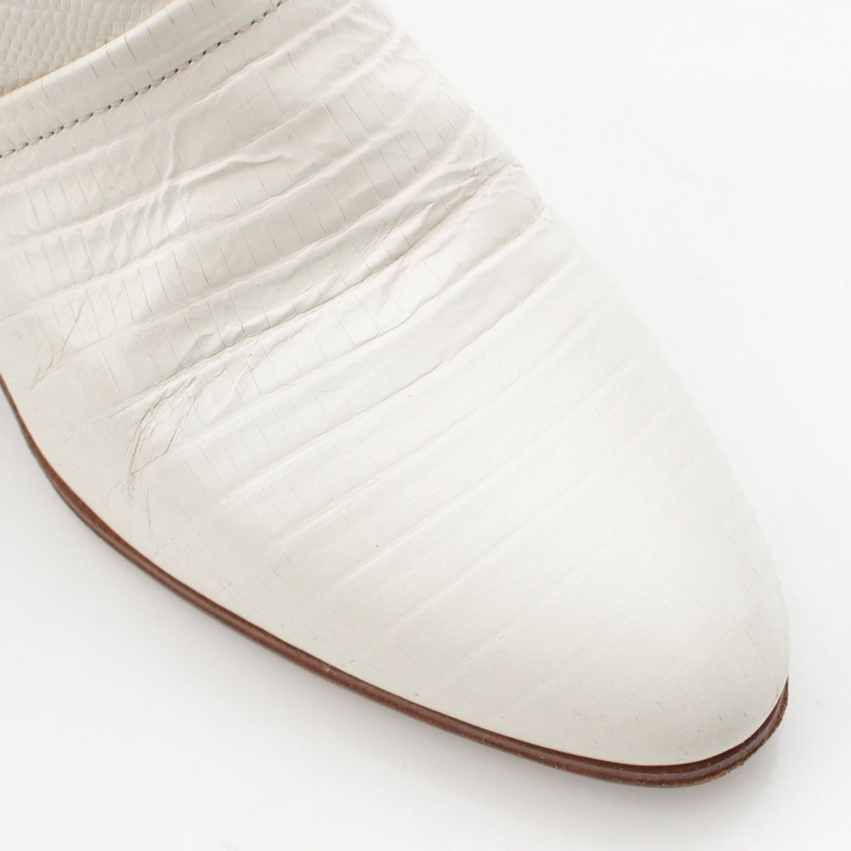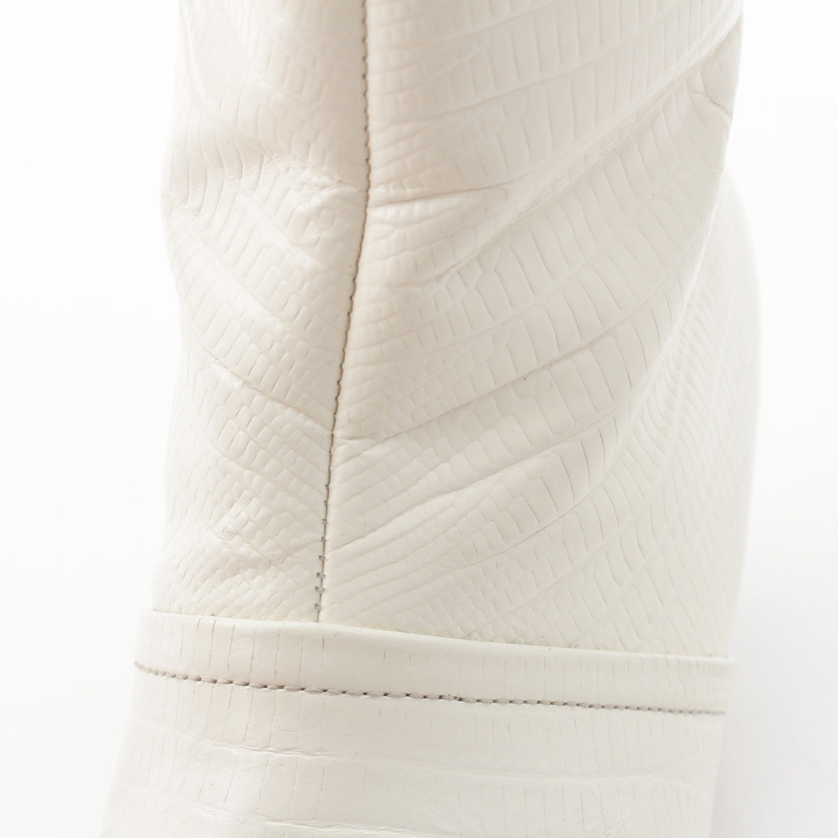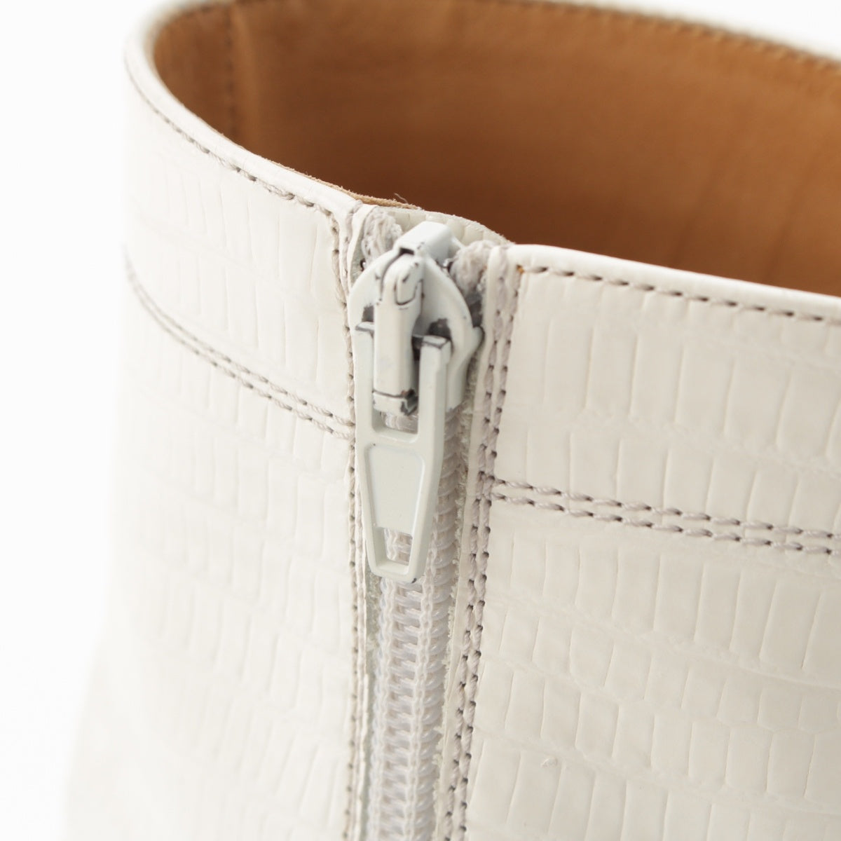 CELINE Edith Reman leather Croc embossed side zip heel boots RM1119 white 37