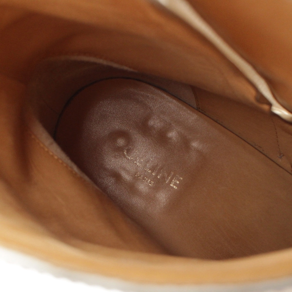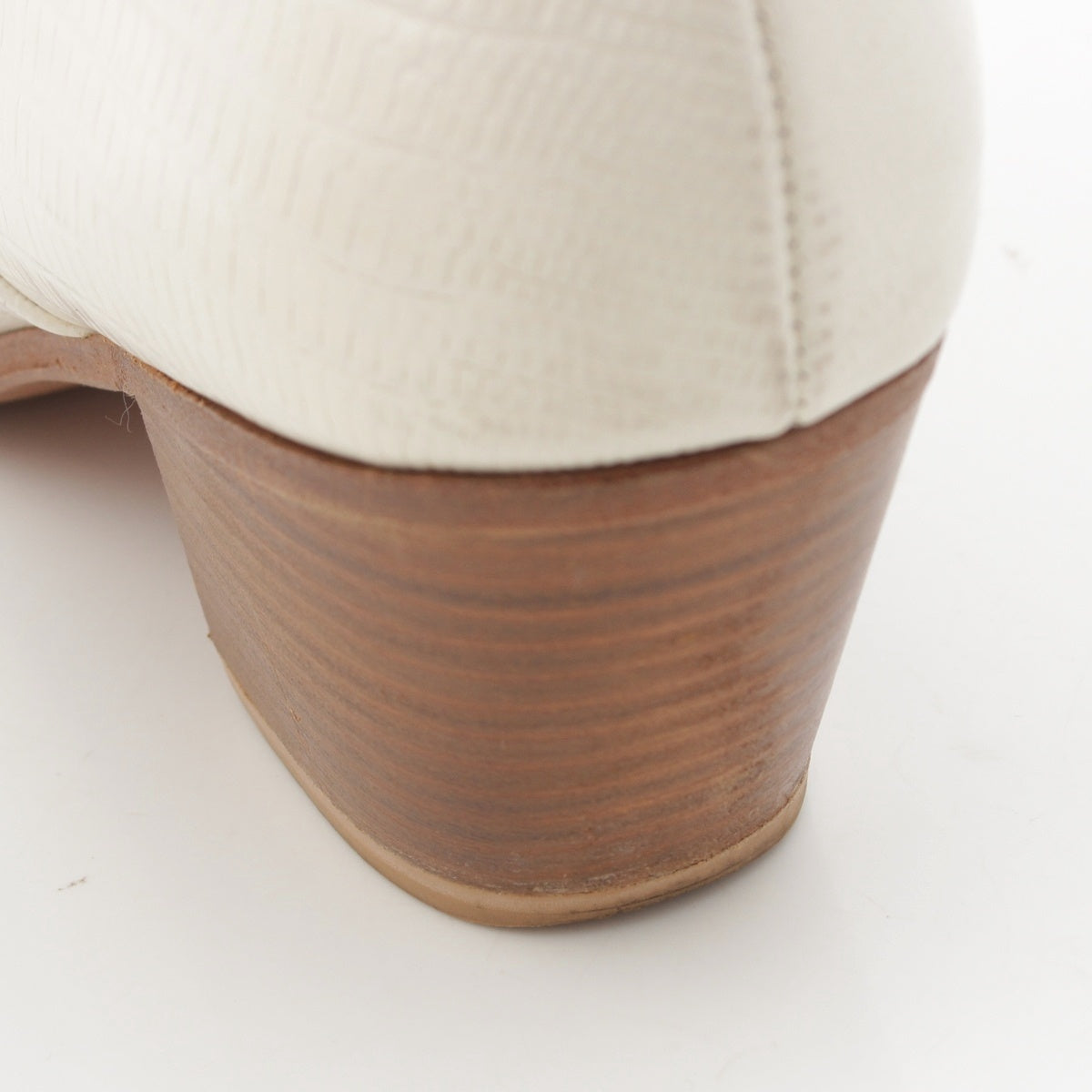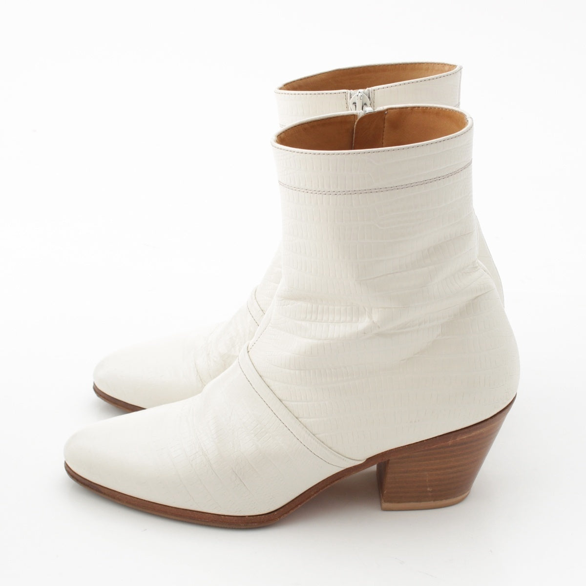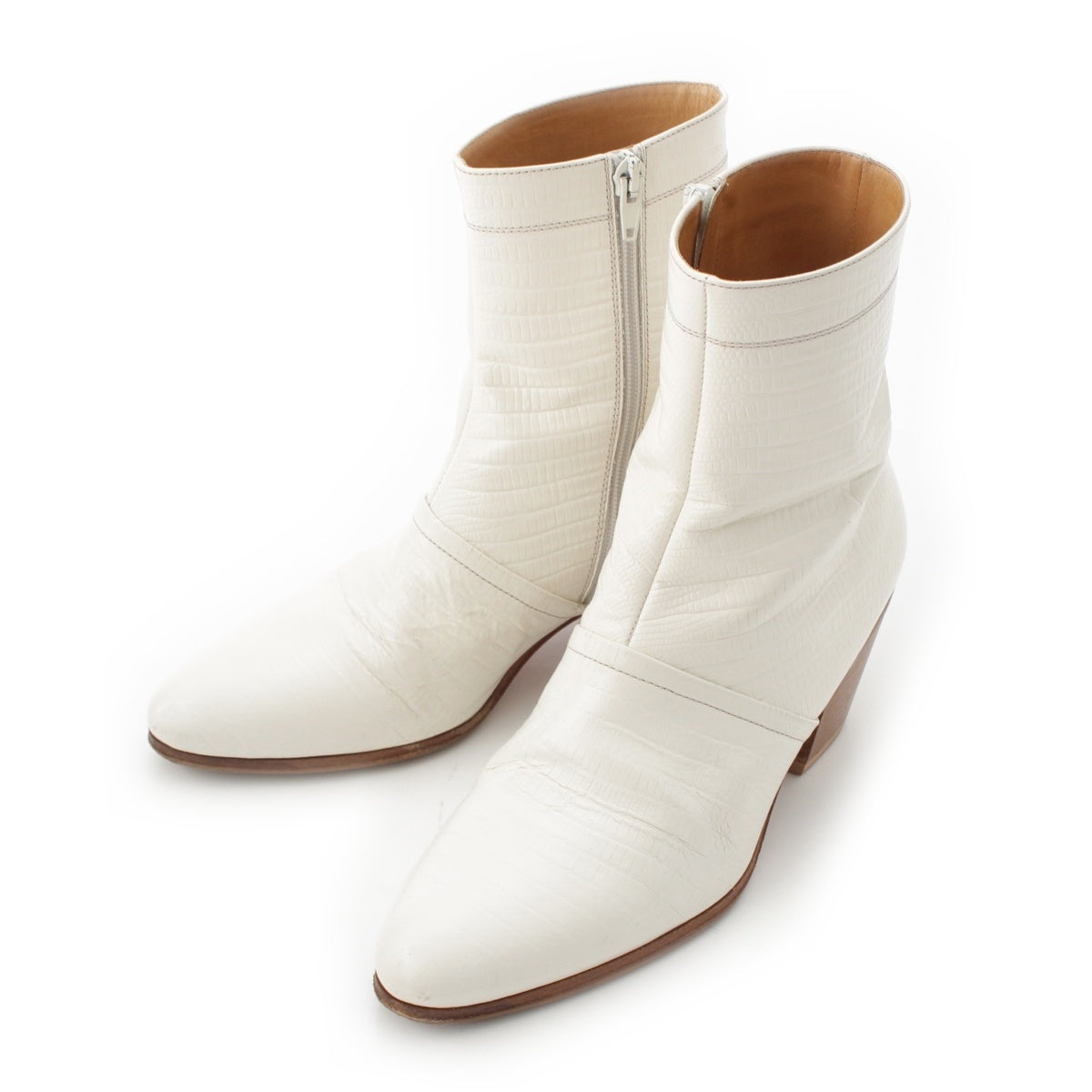CELINE Edith Reman leather Croc embossed side zip heel boots RM1119 white 37