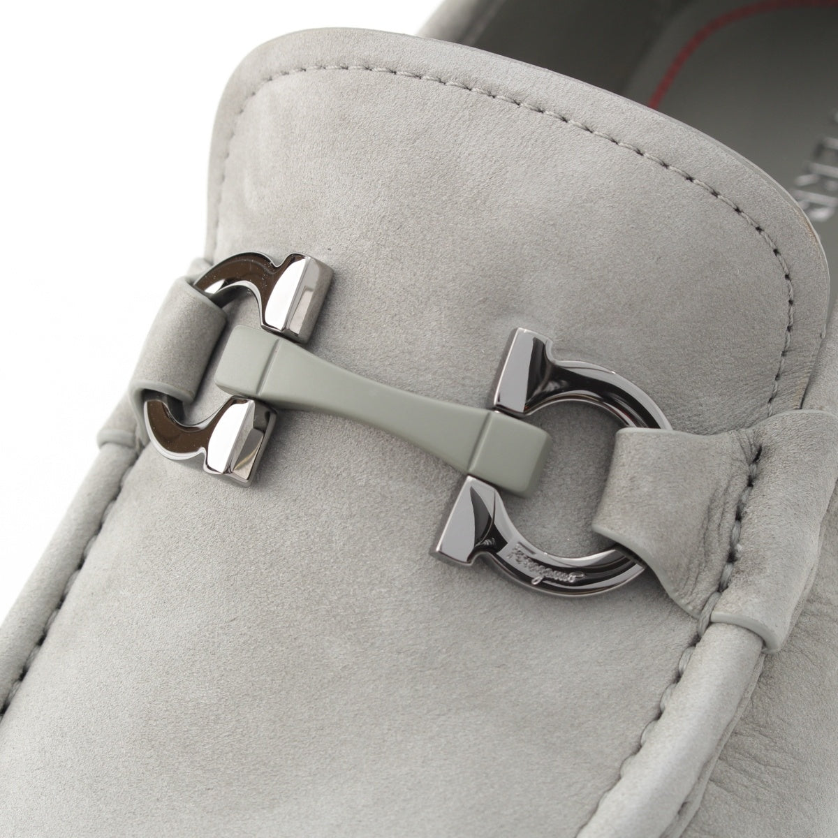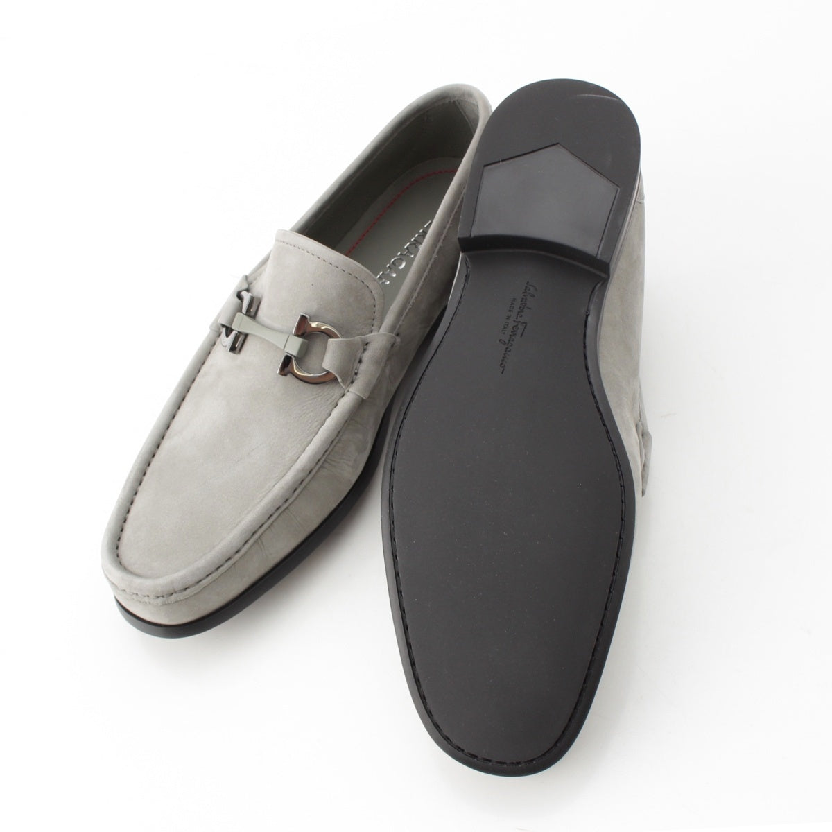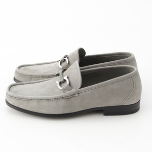 Salvatore Ferragamo Suede leather GRANDIOSO GanciniMetal 2bit loafers shoes Light gray 7 1/2 EE