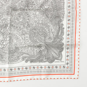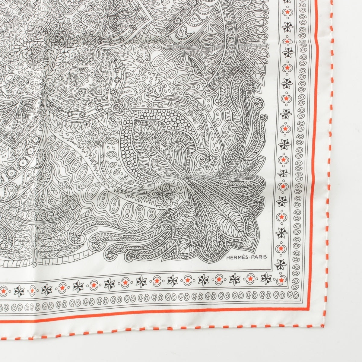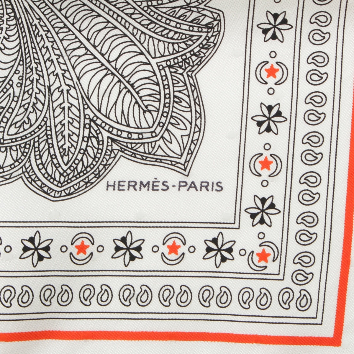 HERMES Carre 55 Le Jardin de la Maharani Maharani's Garden silk scarf white