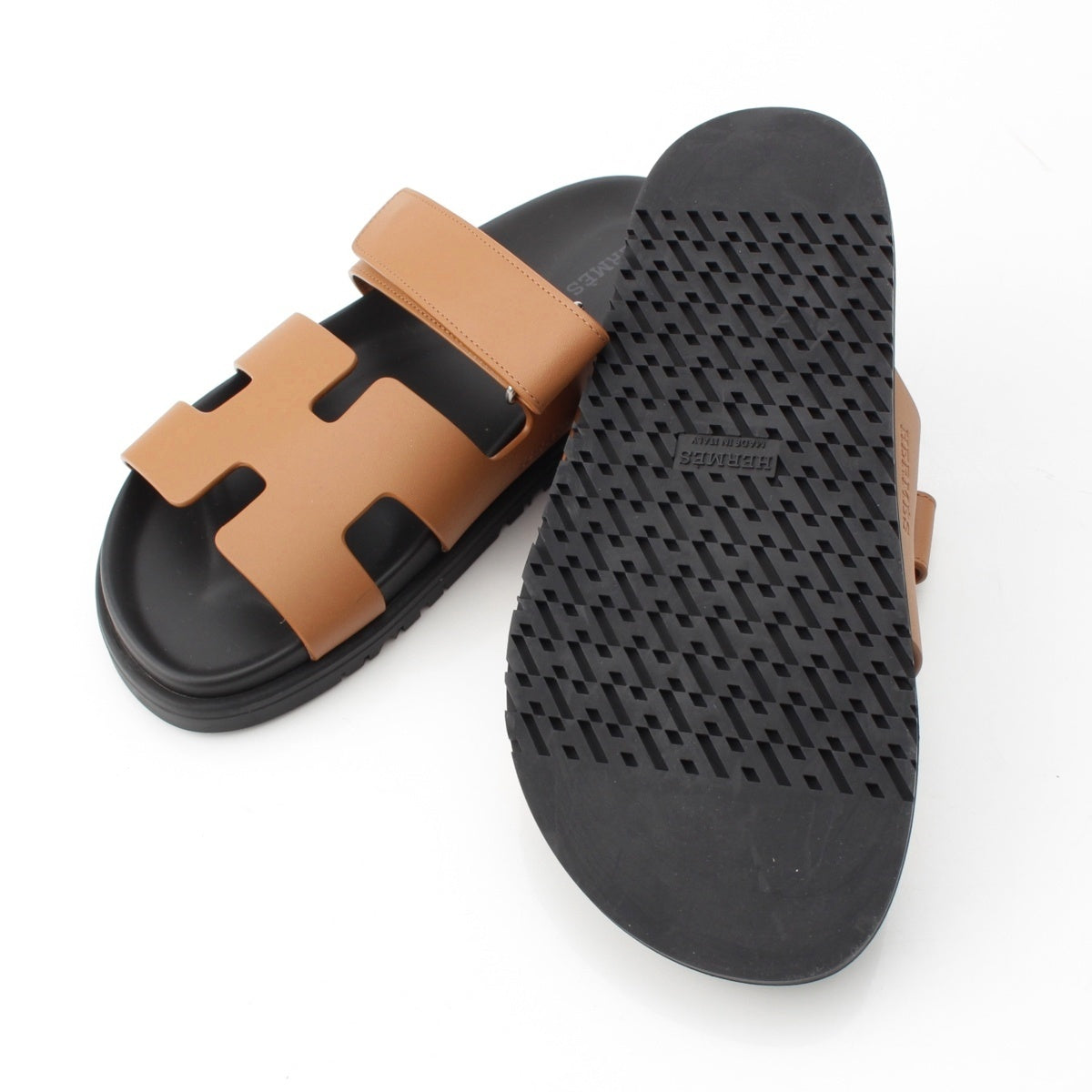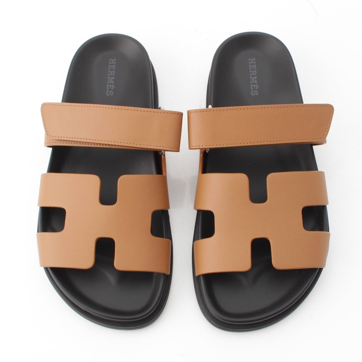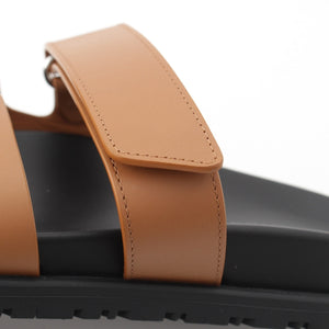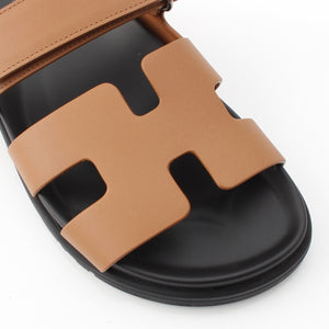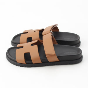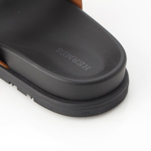 HERMES Shipre leather flat Sandals 222299Z Brown 37 1/2