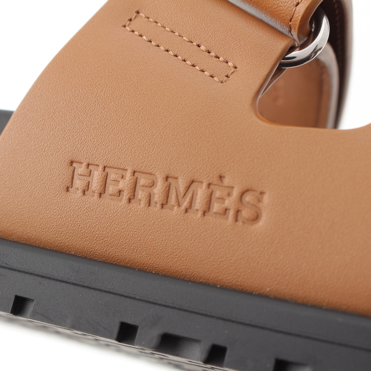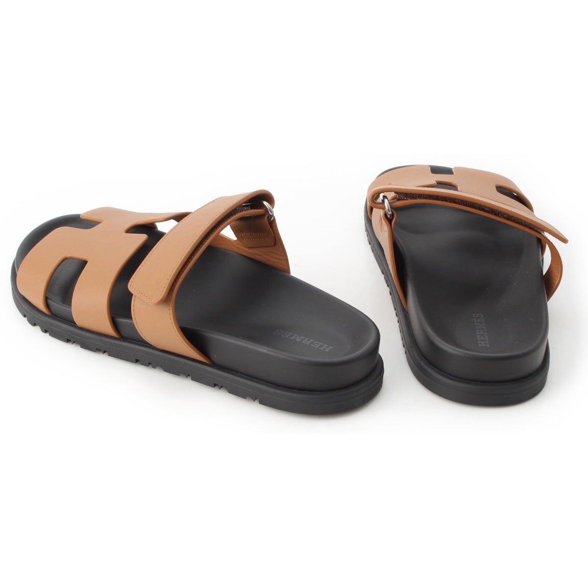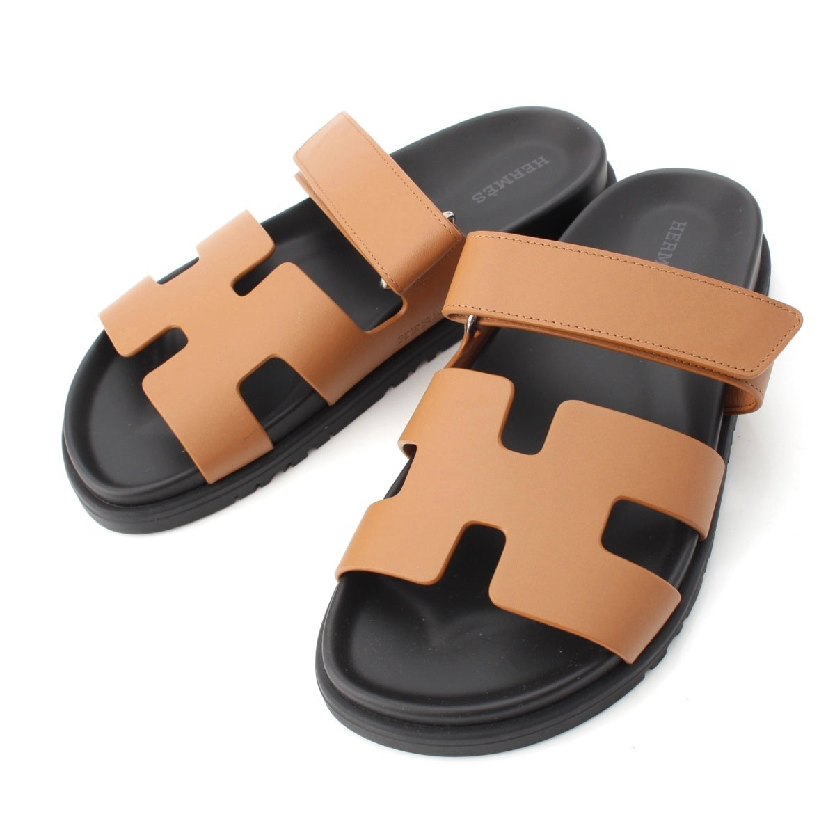 HERMES Shipre leather flat Sandals 222299Z Brown 37 1/2