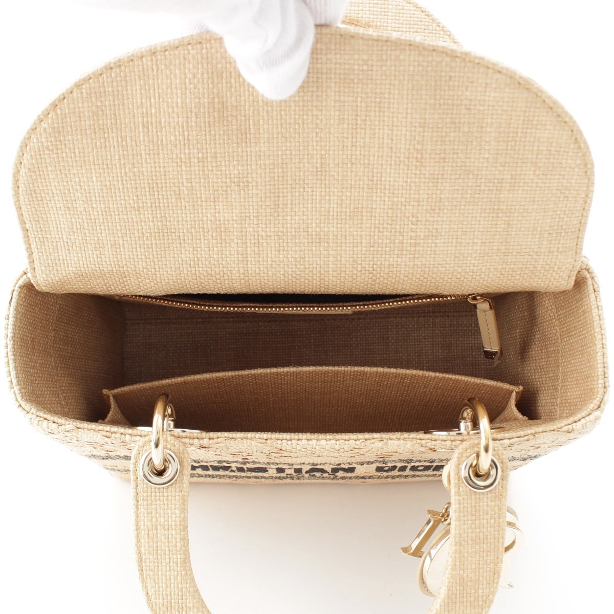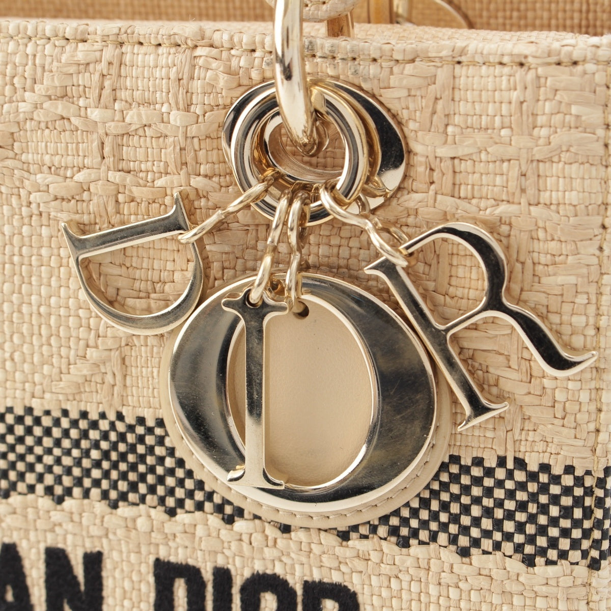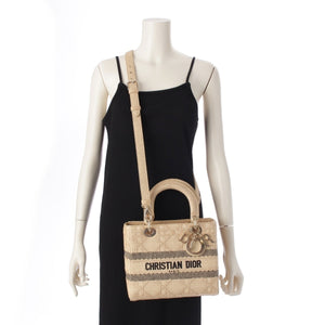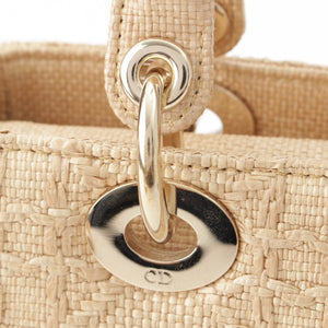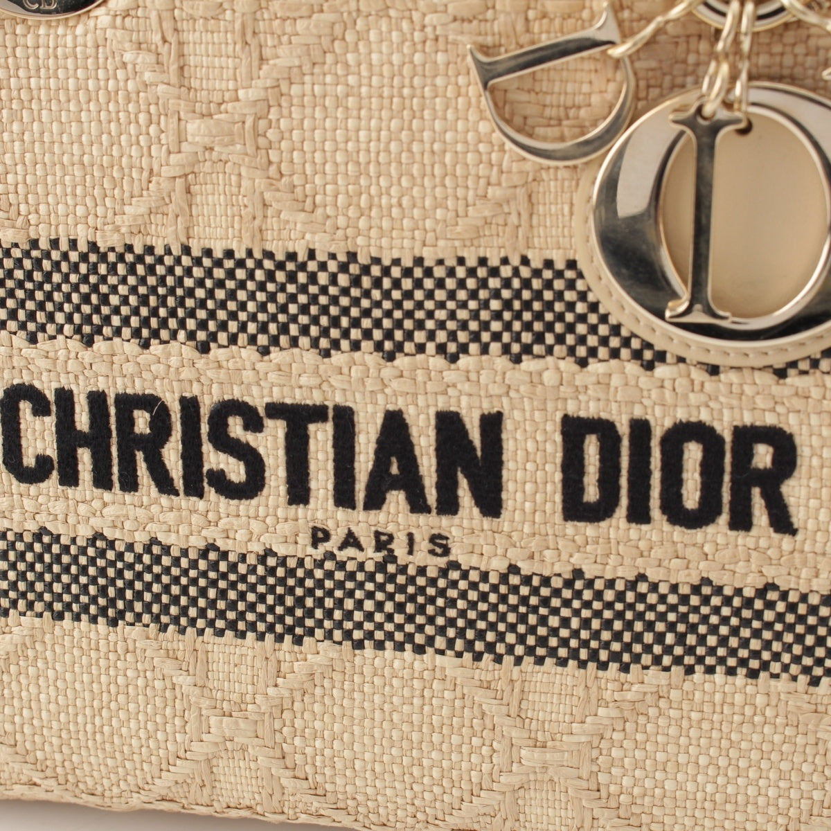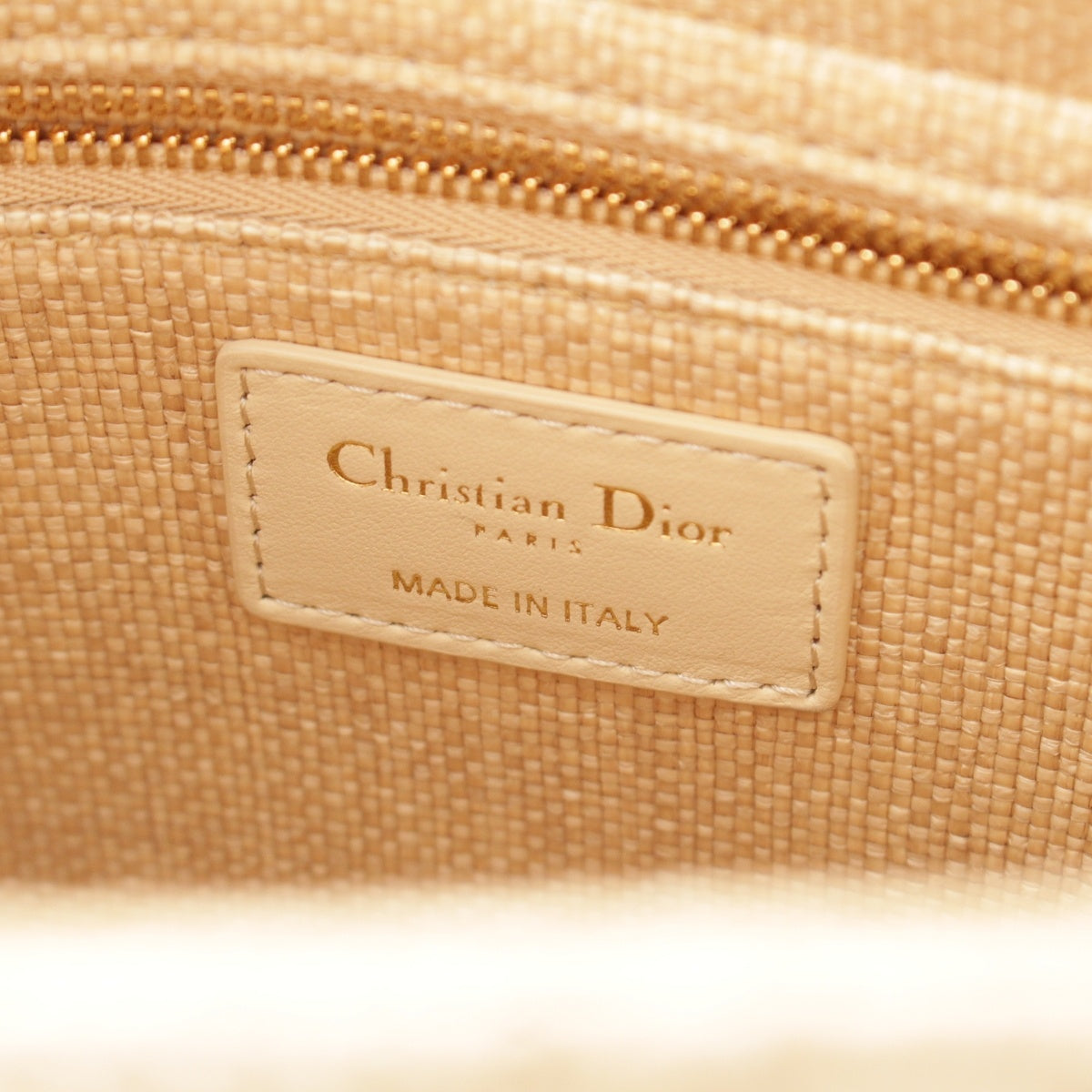 Christian Dior Lady Dior Canage Medium Raffia Logo 2way Shoulder Handbag M0565OSQD natural