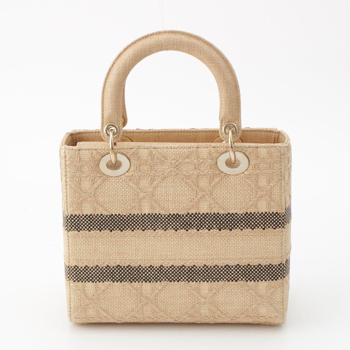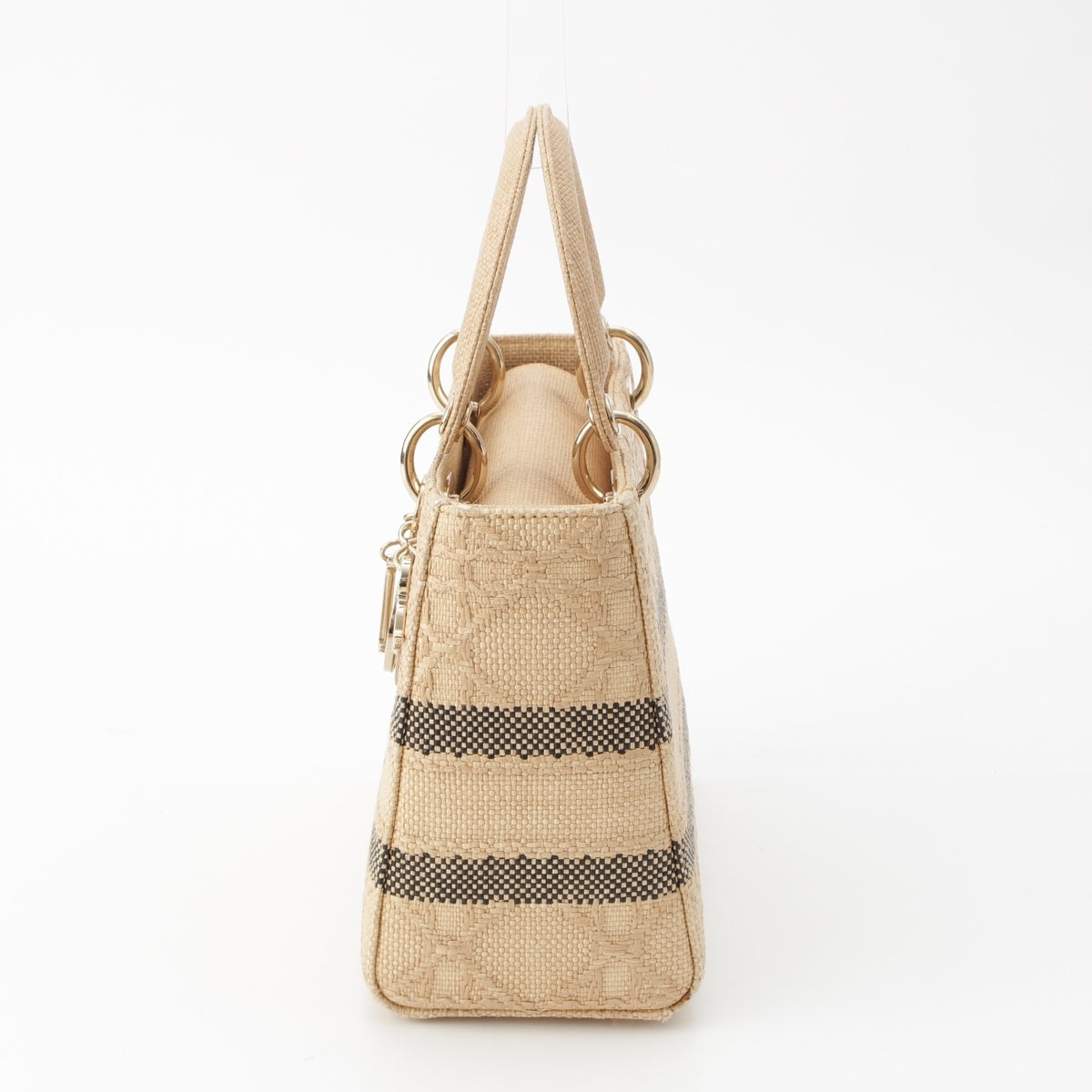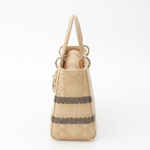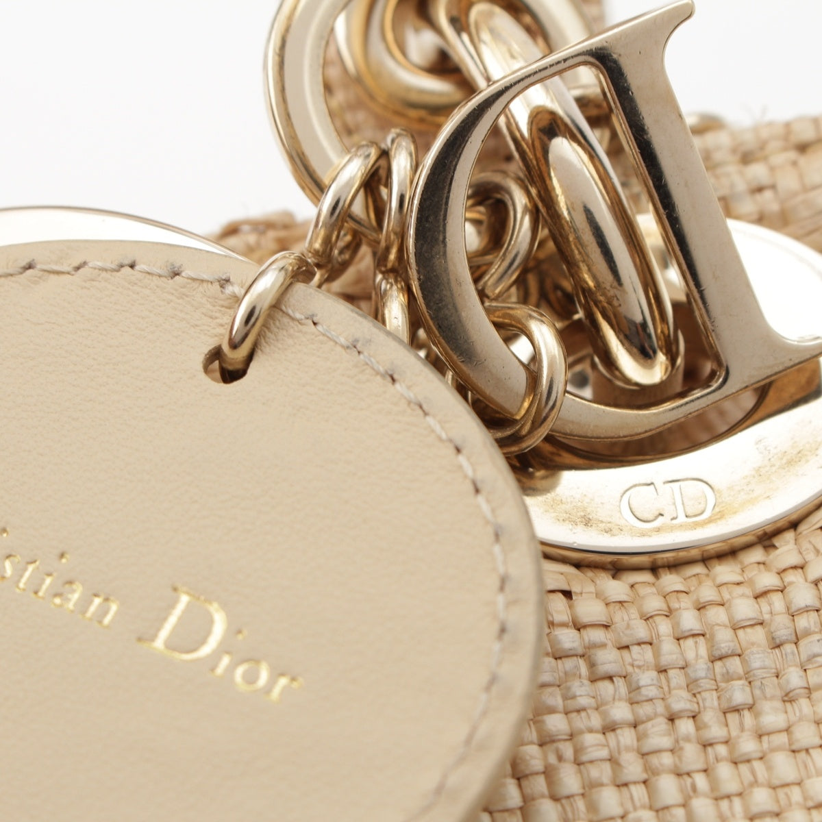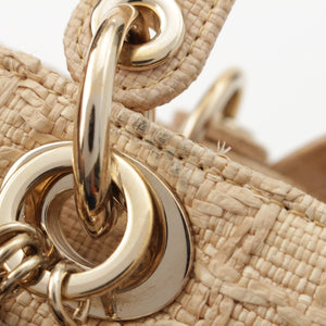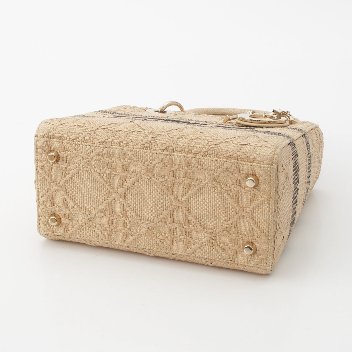 Christian Dior Lady Dior Canage Medium Raffia Logo 2way Shoulder Handbag M0565OSQD natural