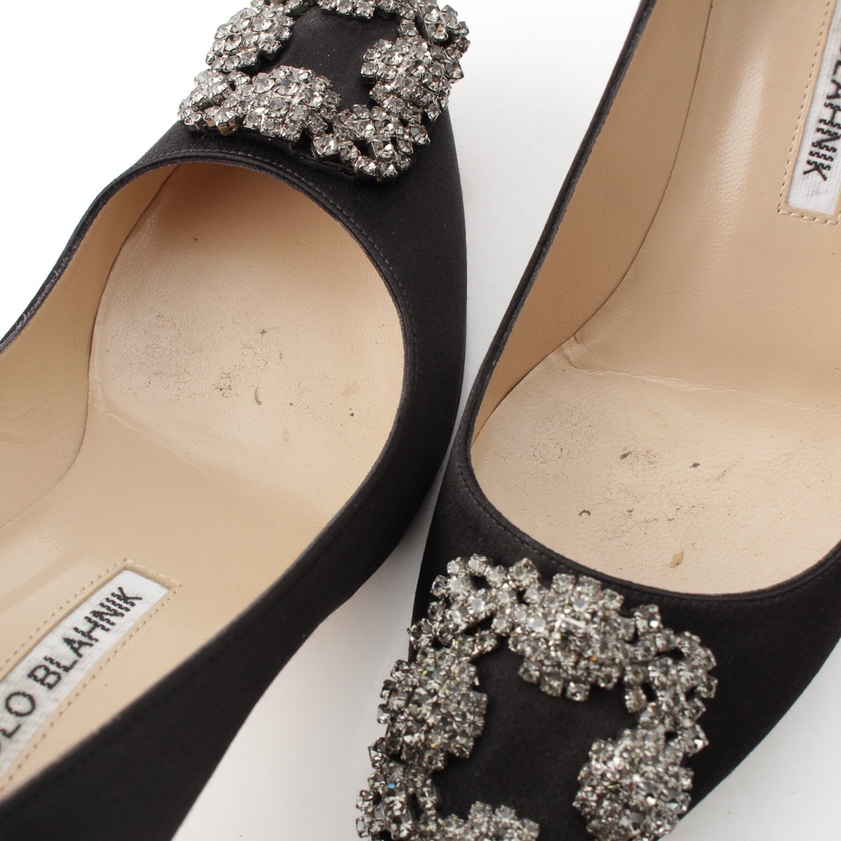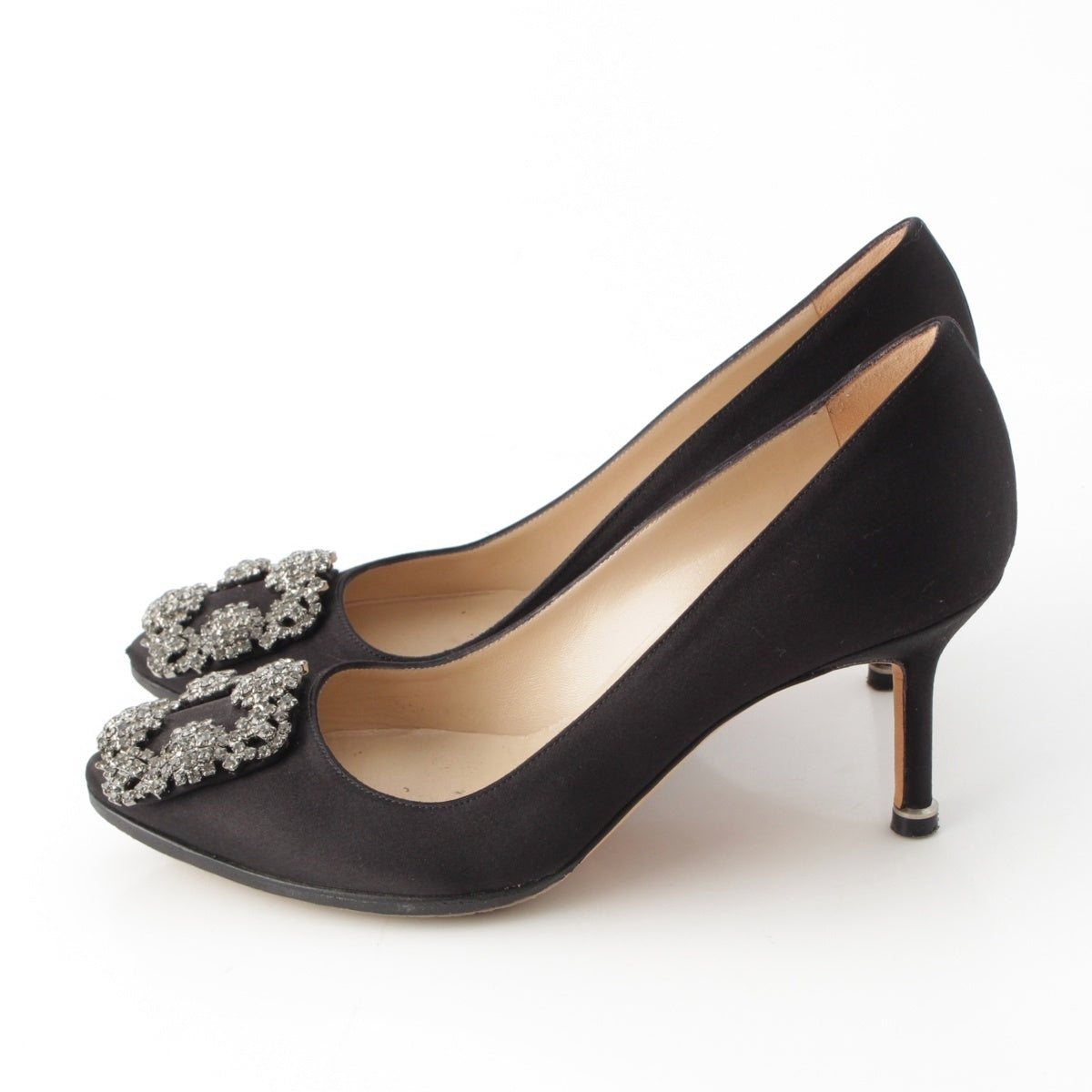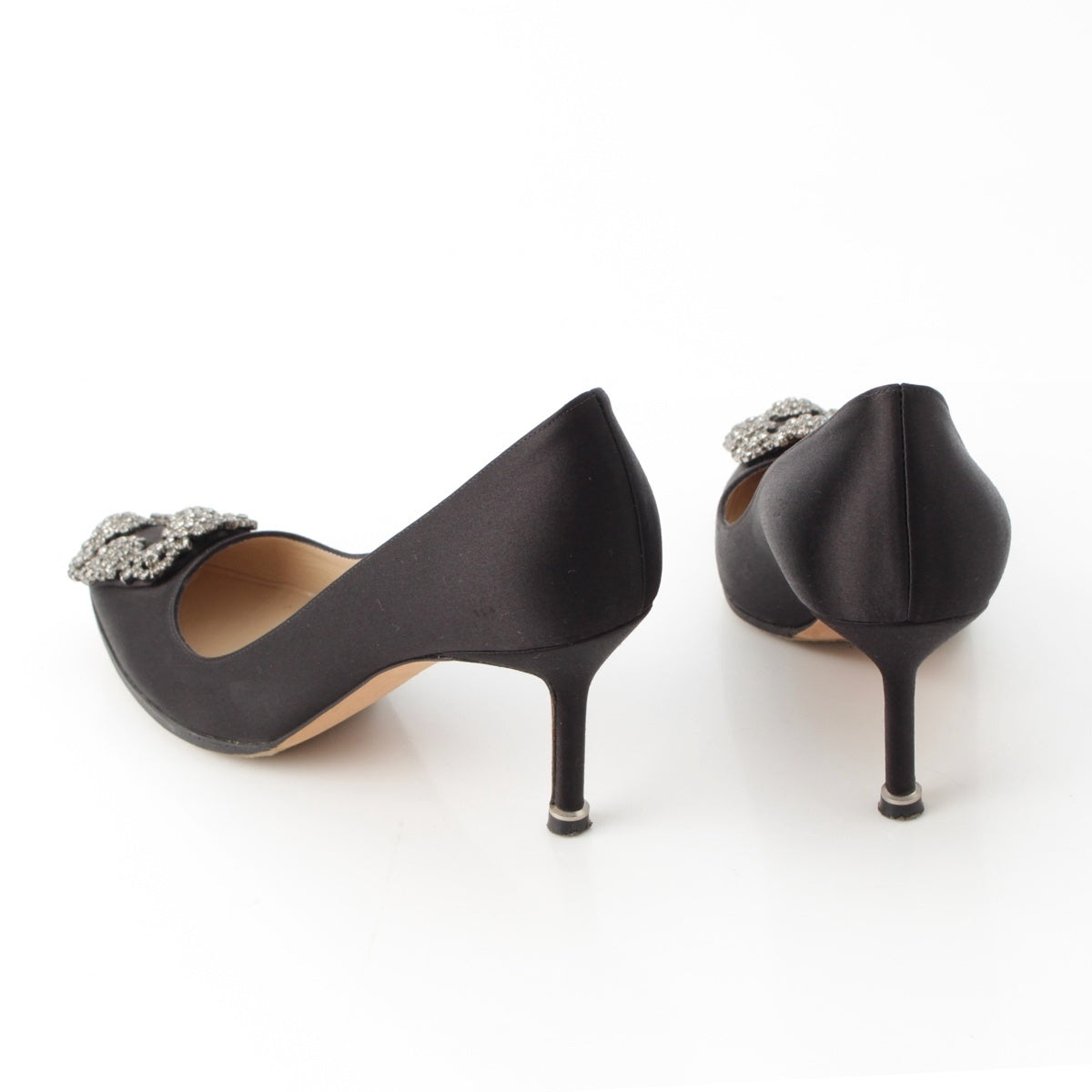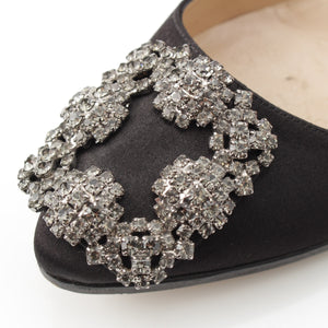 MANOLO BLAHNIK Satin Hangisi jewel buckle heels pumps black 35 1/2
