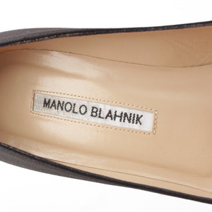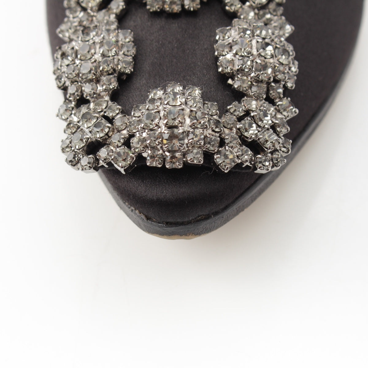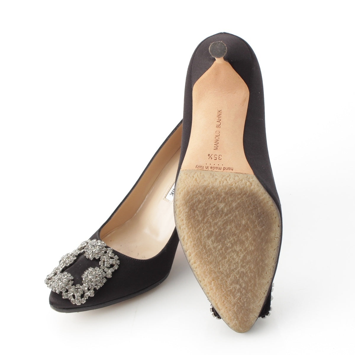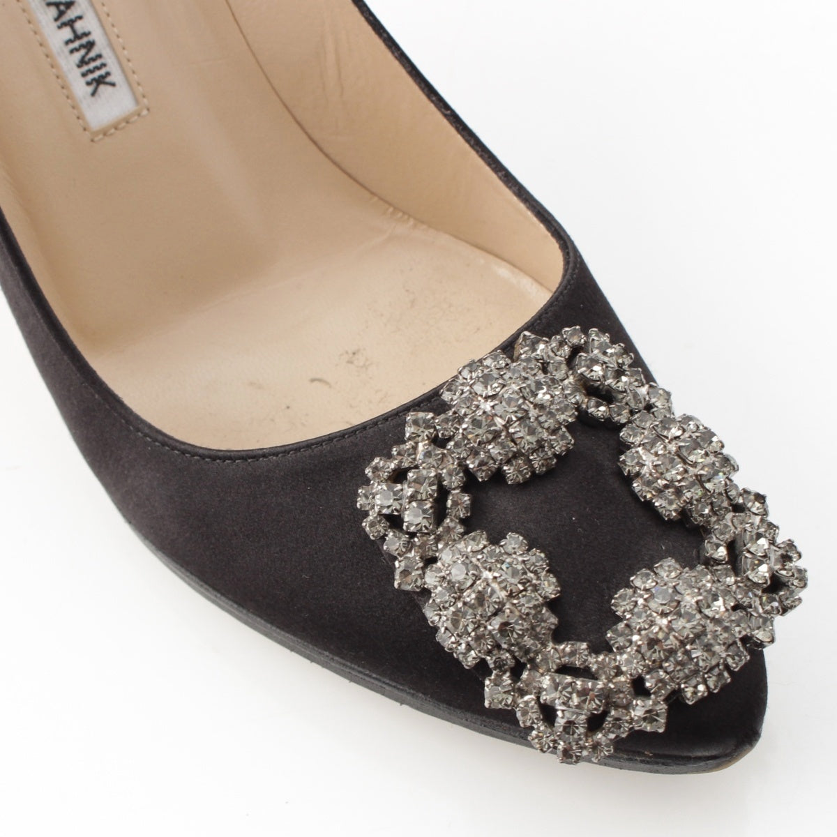 MANOLO BLAHNIK Satin Hangisi jewel buckle heels pumps black 35 1/2