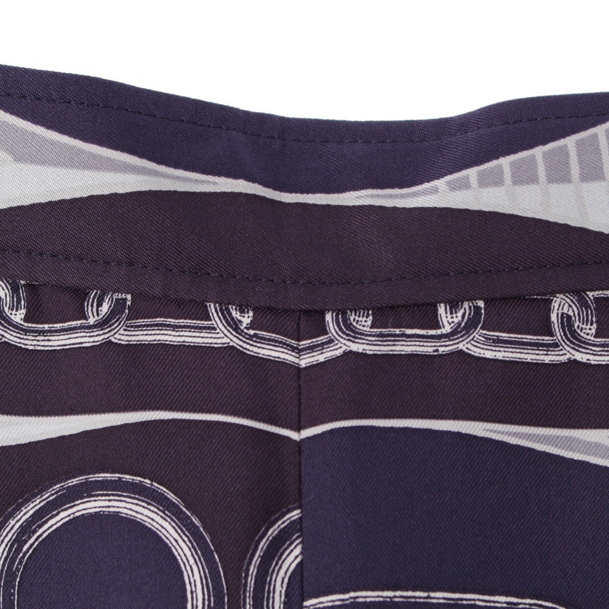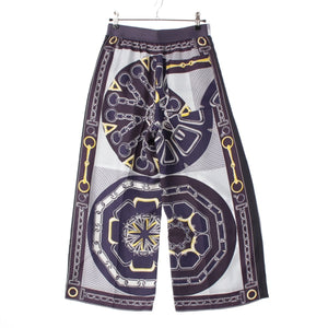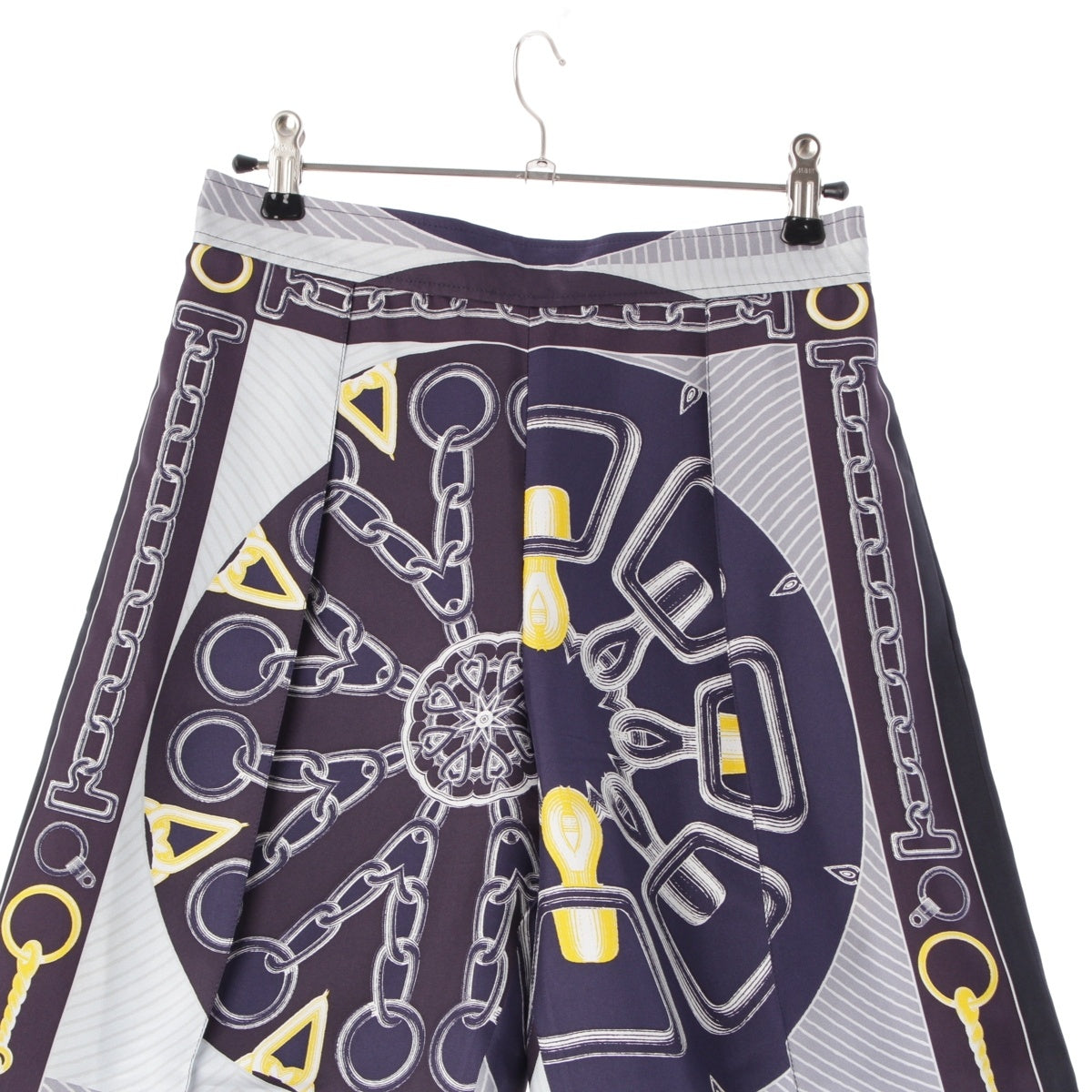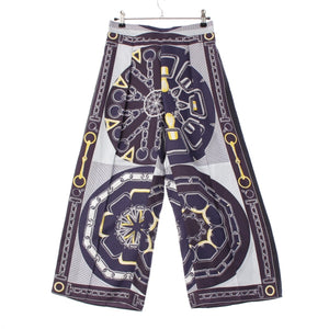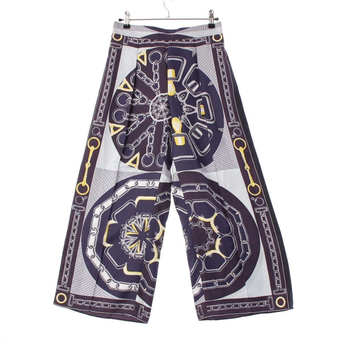 HERMES silk Twill Laine Kaleidoscope Effect Cropped Pants Bottoms 4H0477DW Navy 34