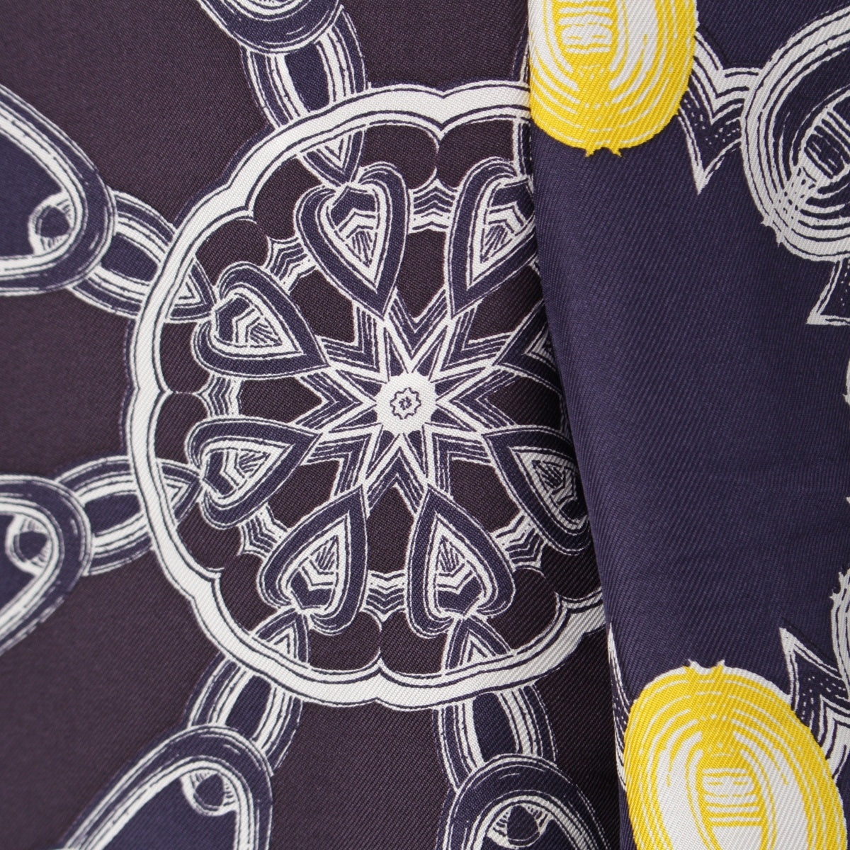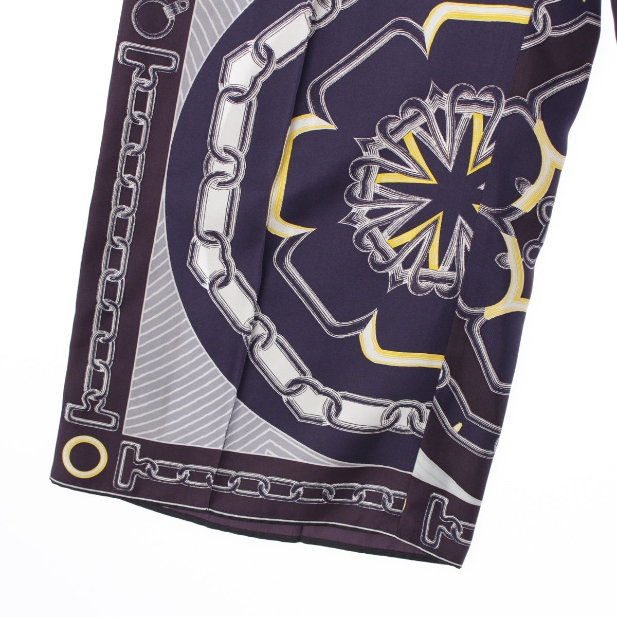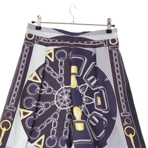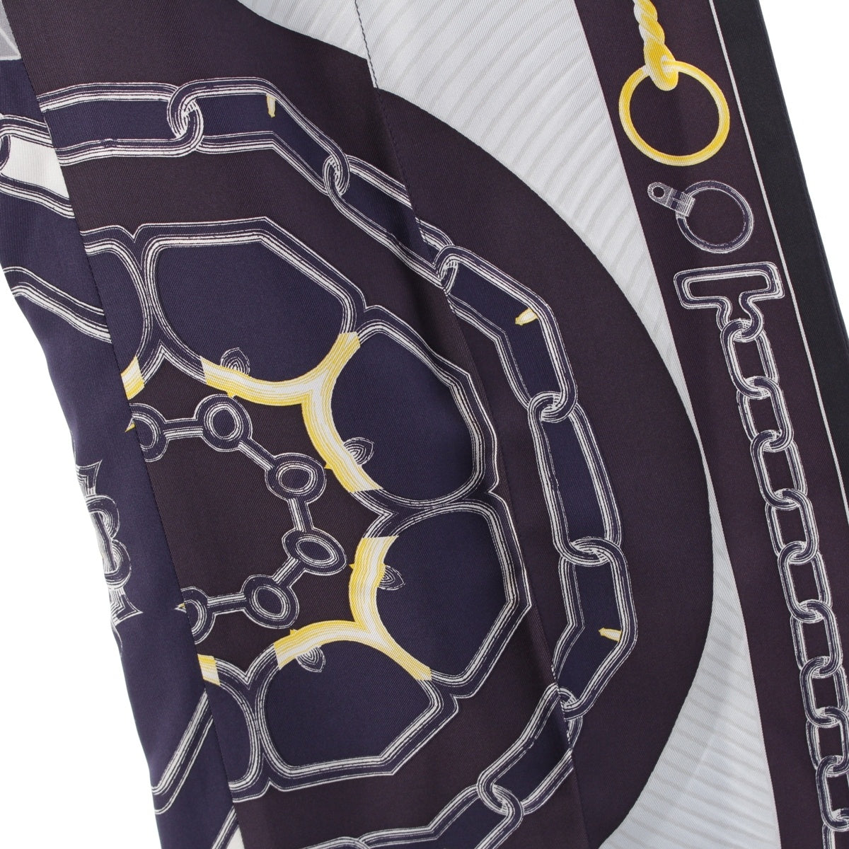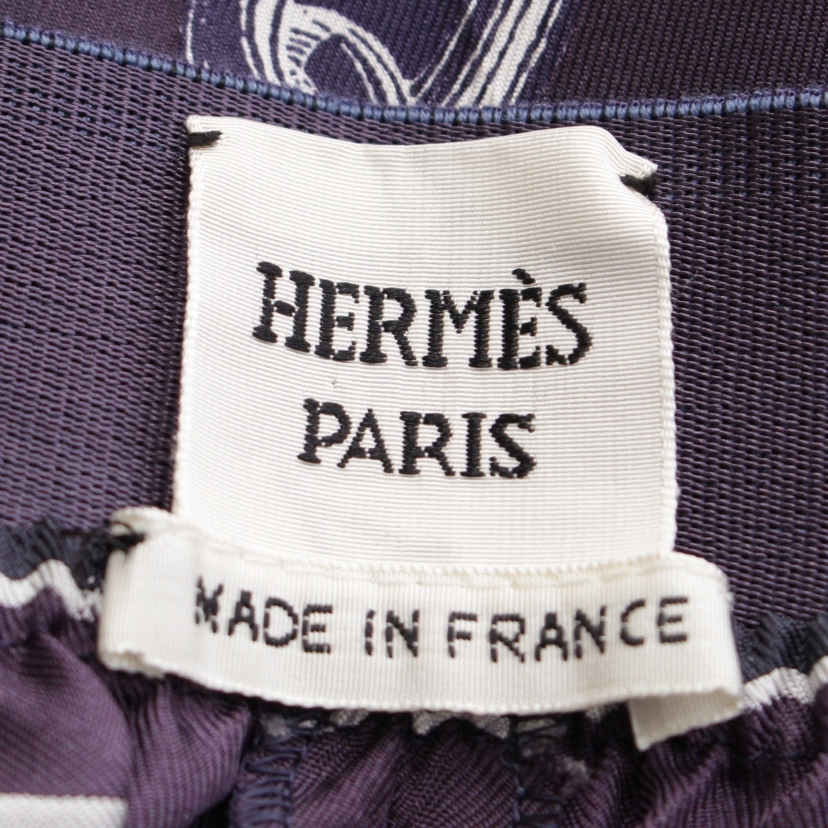 HERMES silk Twill Laine Kaleidoscope Effect Cropped Pants Bottoms 4H0477DW Navy 34