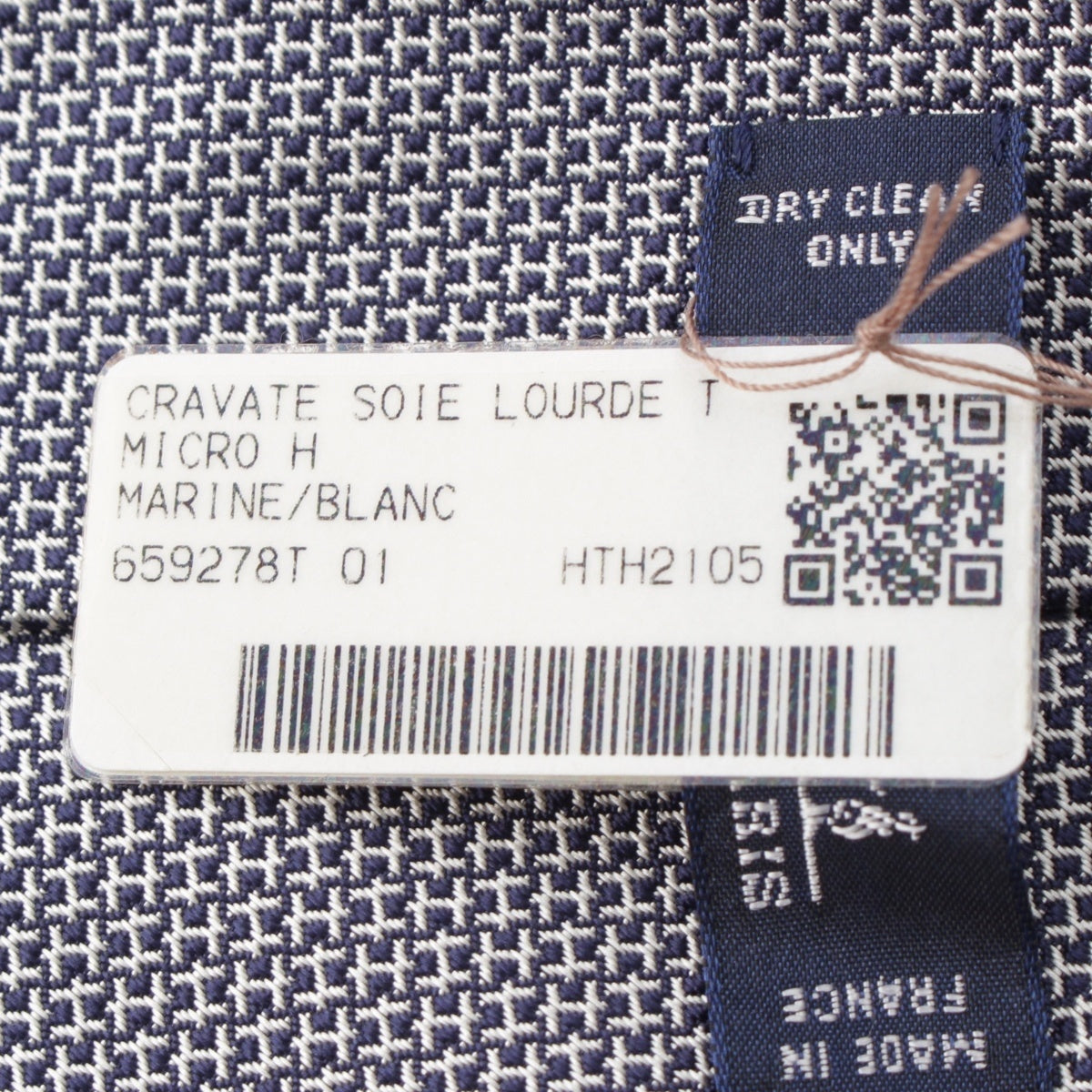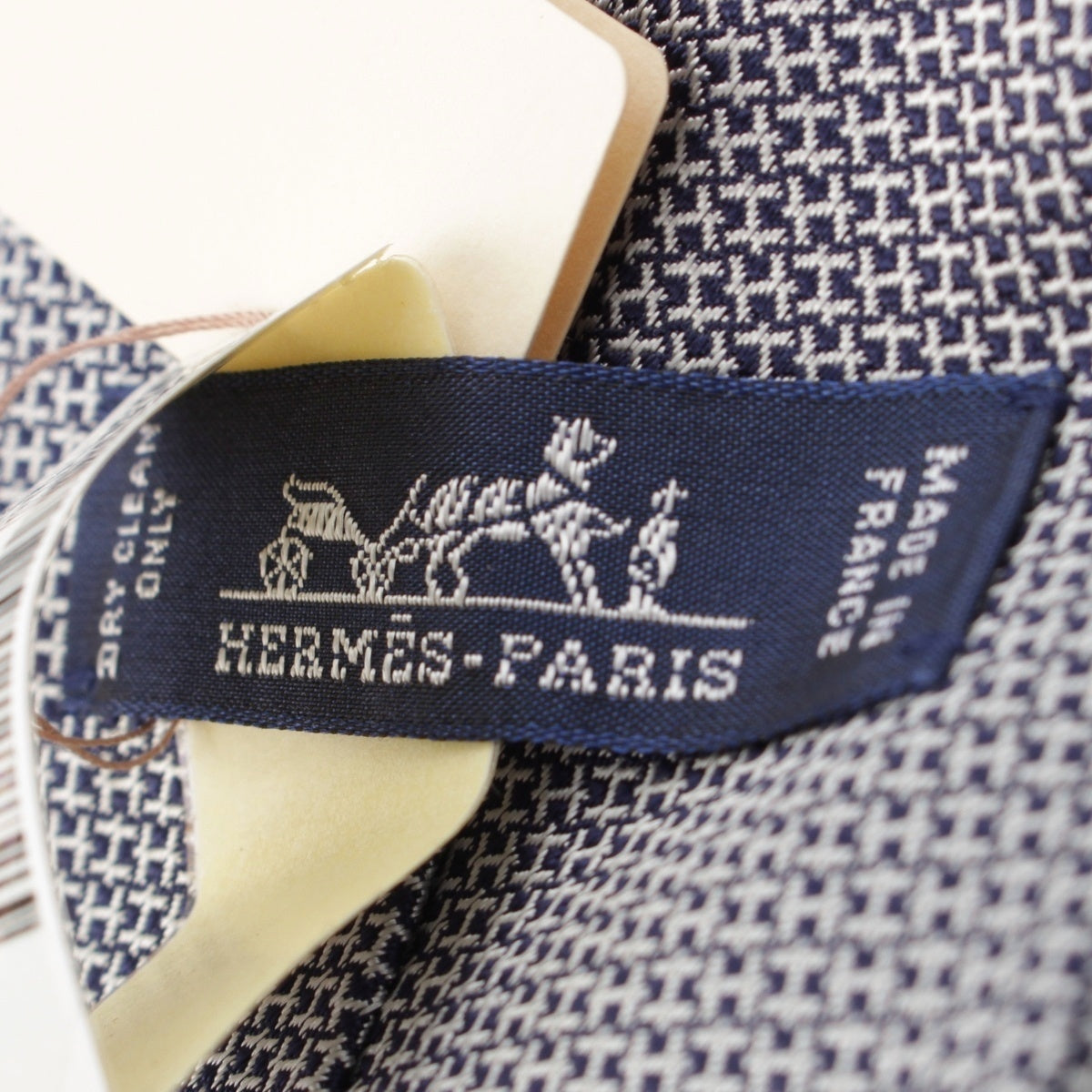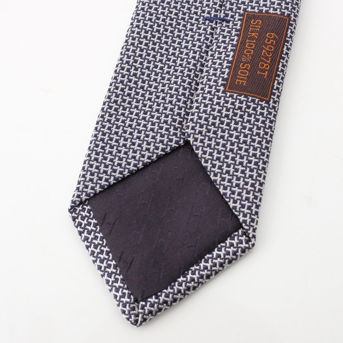 HERMES CRAVATE SOIE LOURDE silk H pattern tie Navy