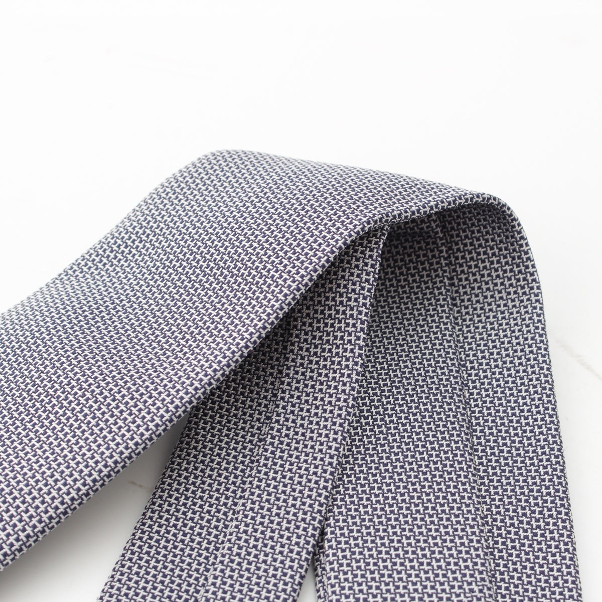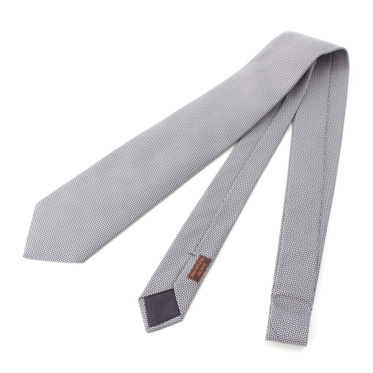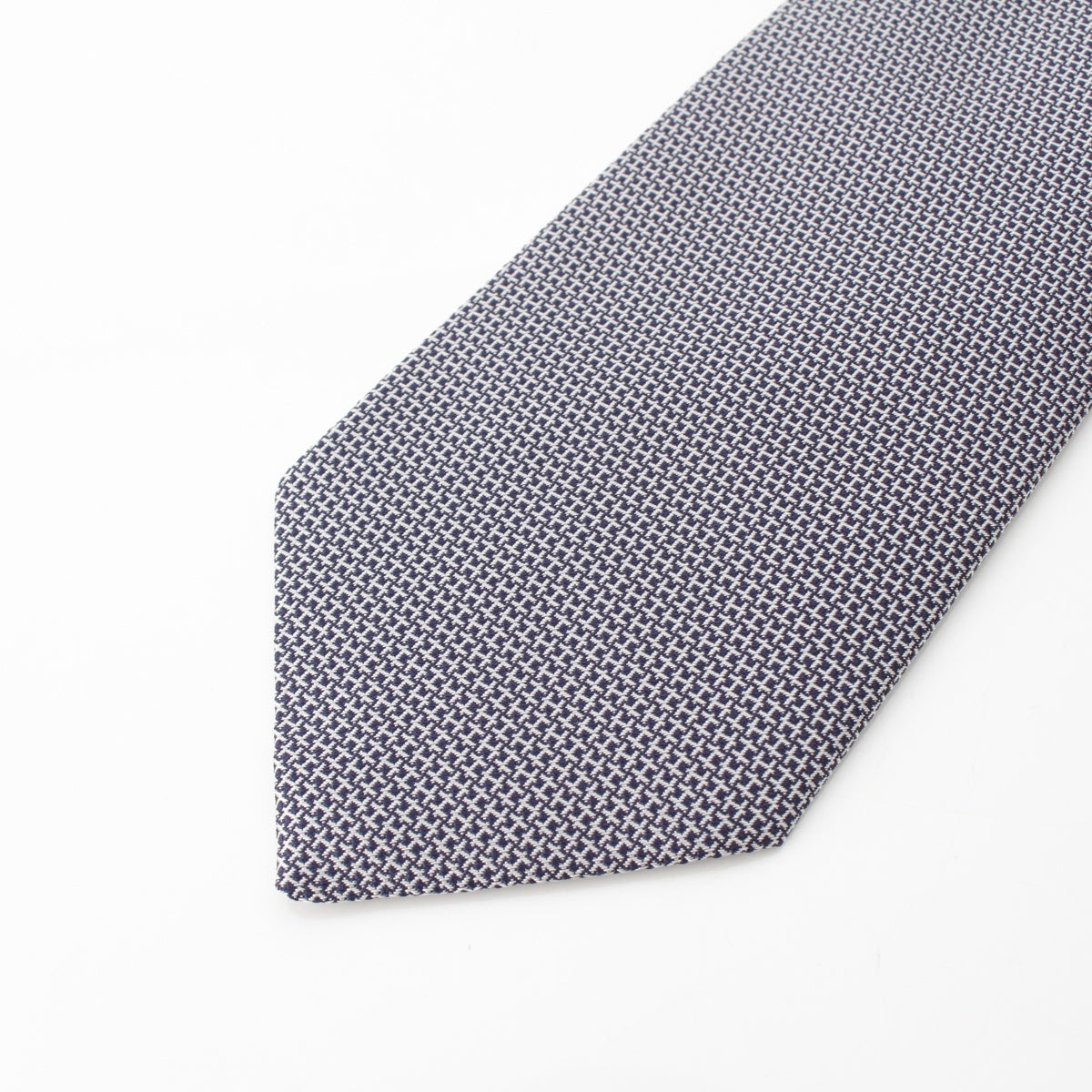 HERMES CRAVATE SOIE LOURDE silk H pattern tie Navy