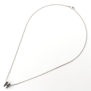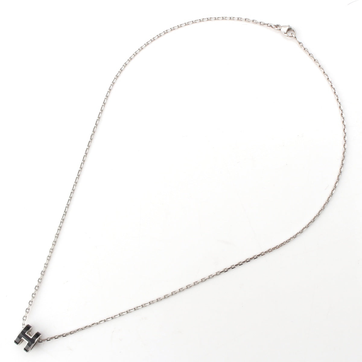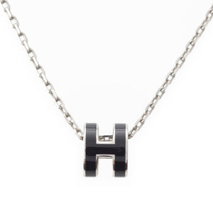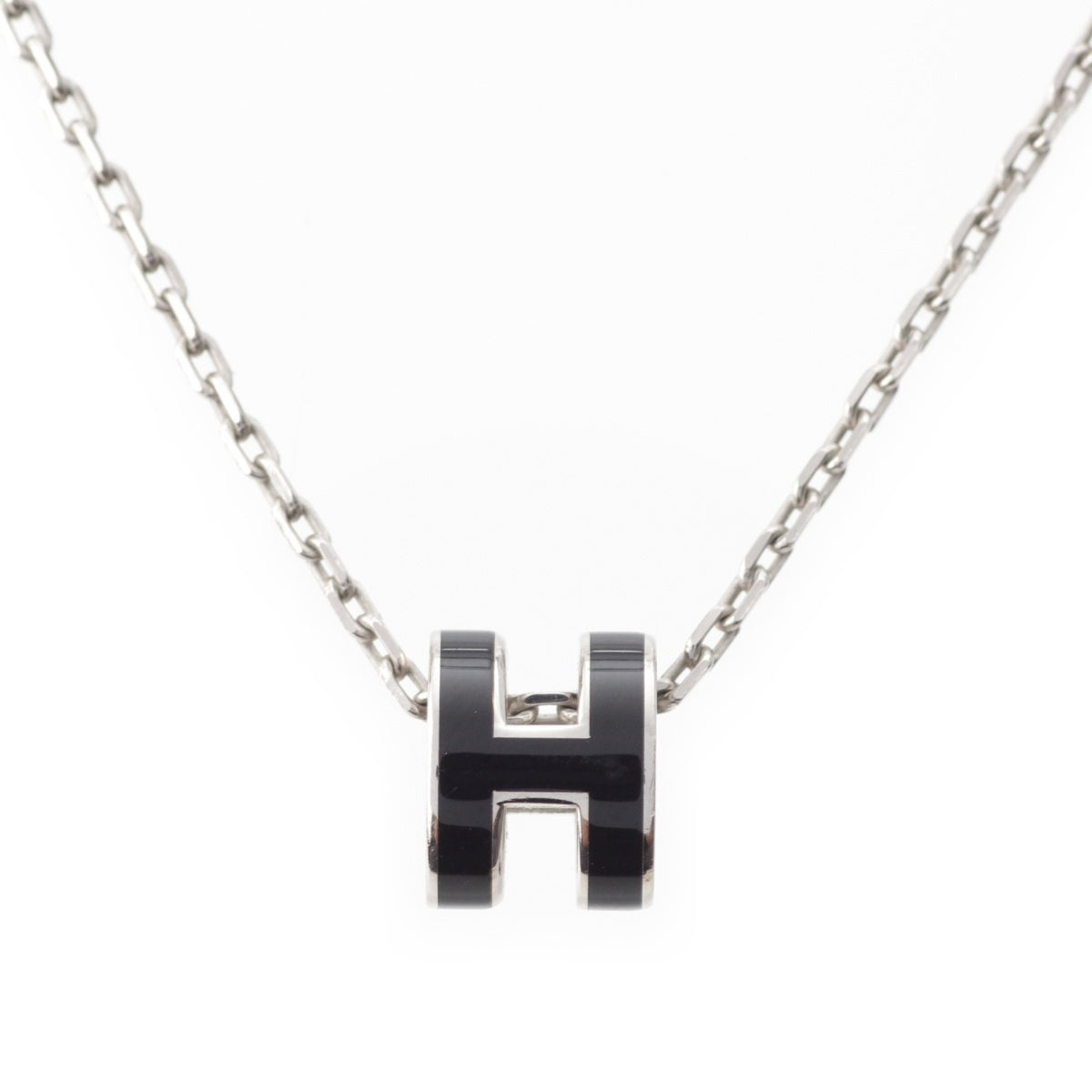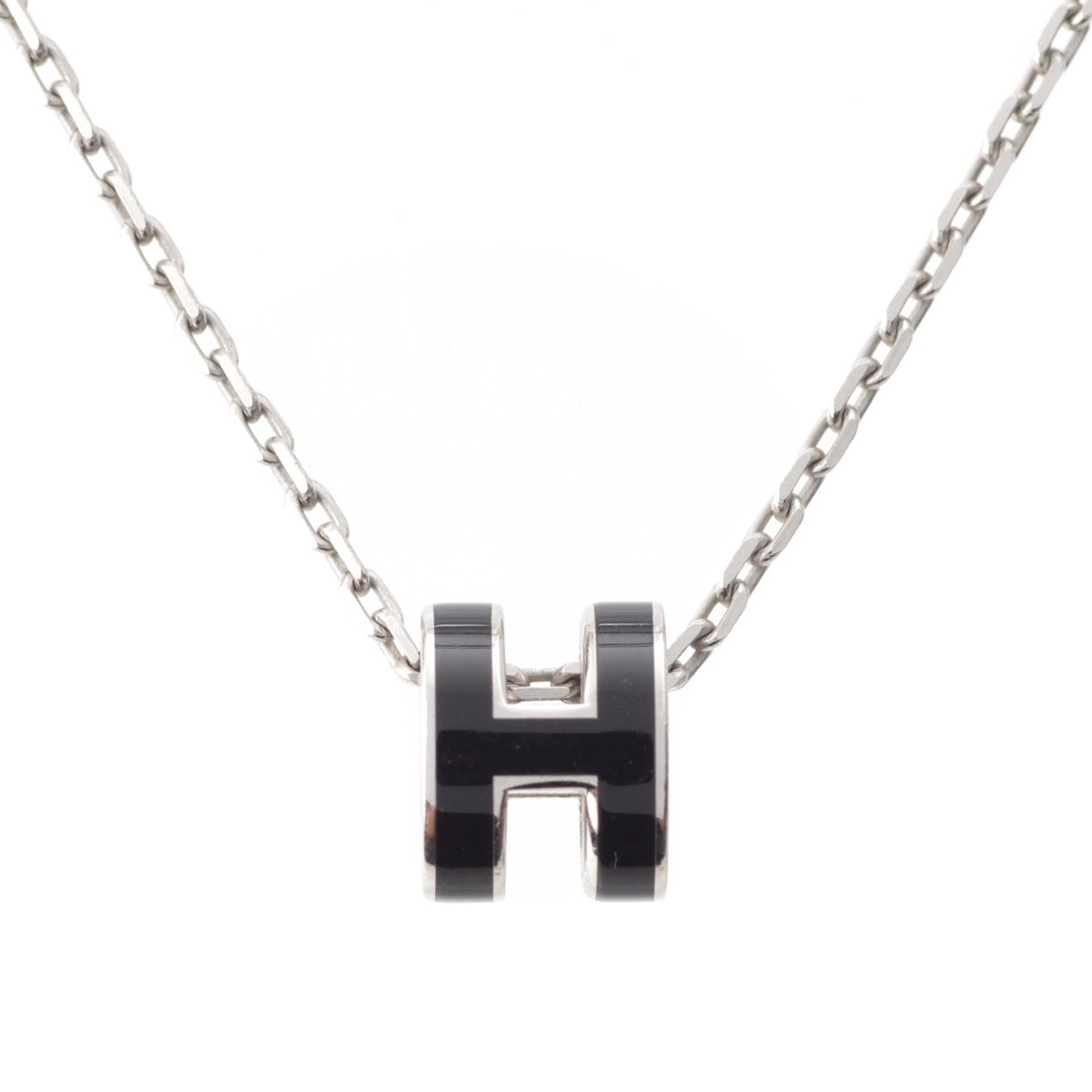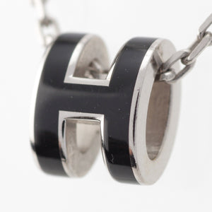 HERMES Pop Ash Pendant H Logo Lacquer Mini Necklace Accessories Silver black