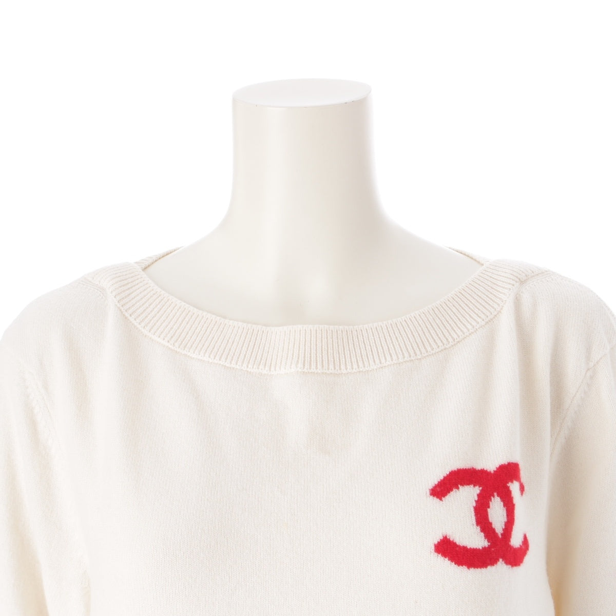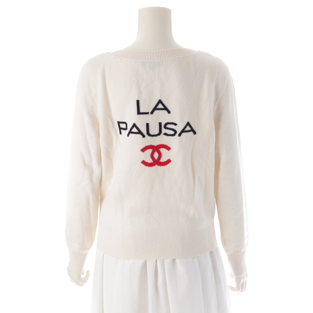 CHANEL LA PAUSA cashmere COCO Mark sweater knit P60447 White Ivory 34