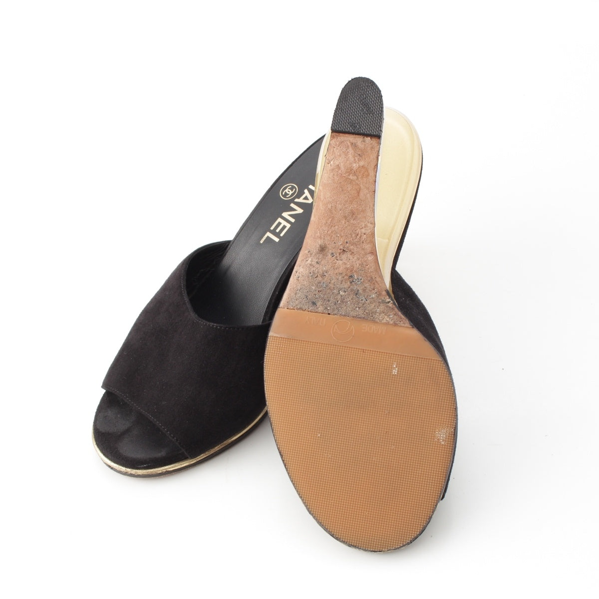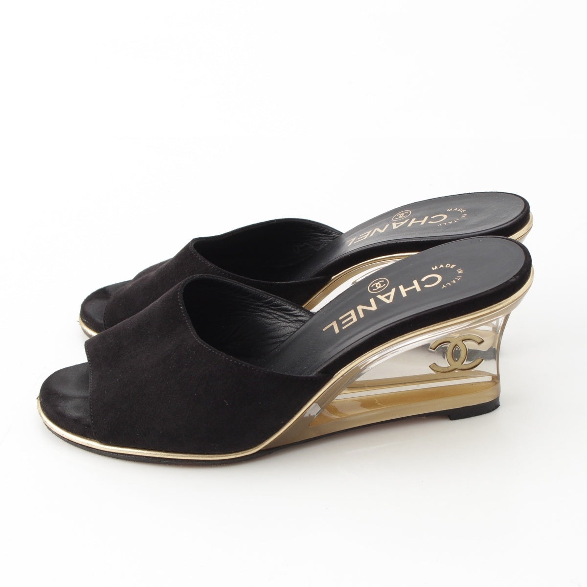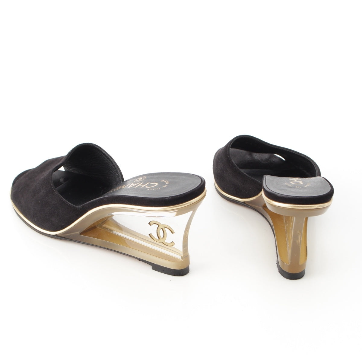 CHANEL COCO Mark Clear Heel Mule Sandals G36151 black 36C