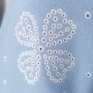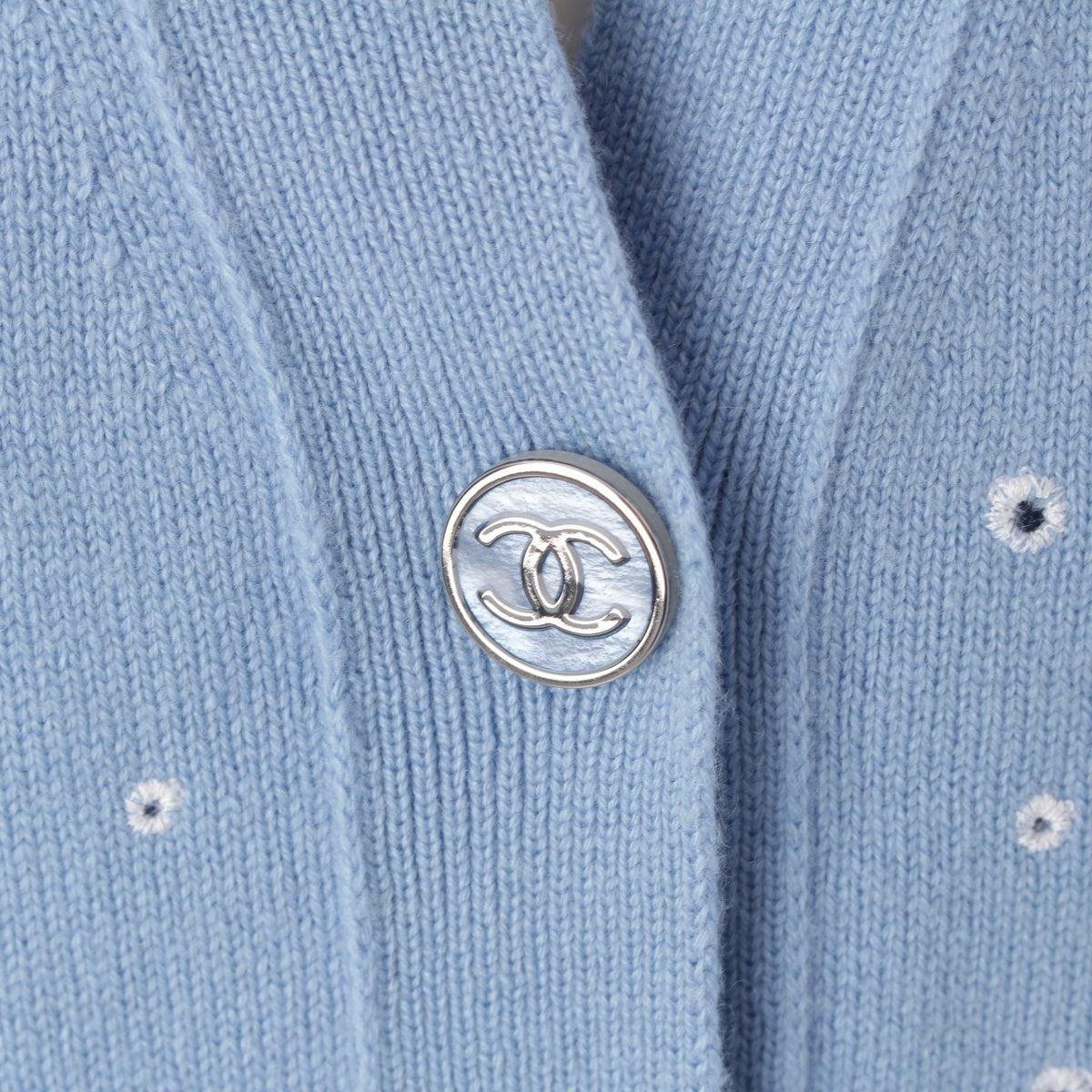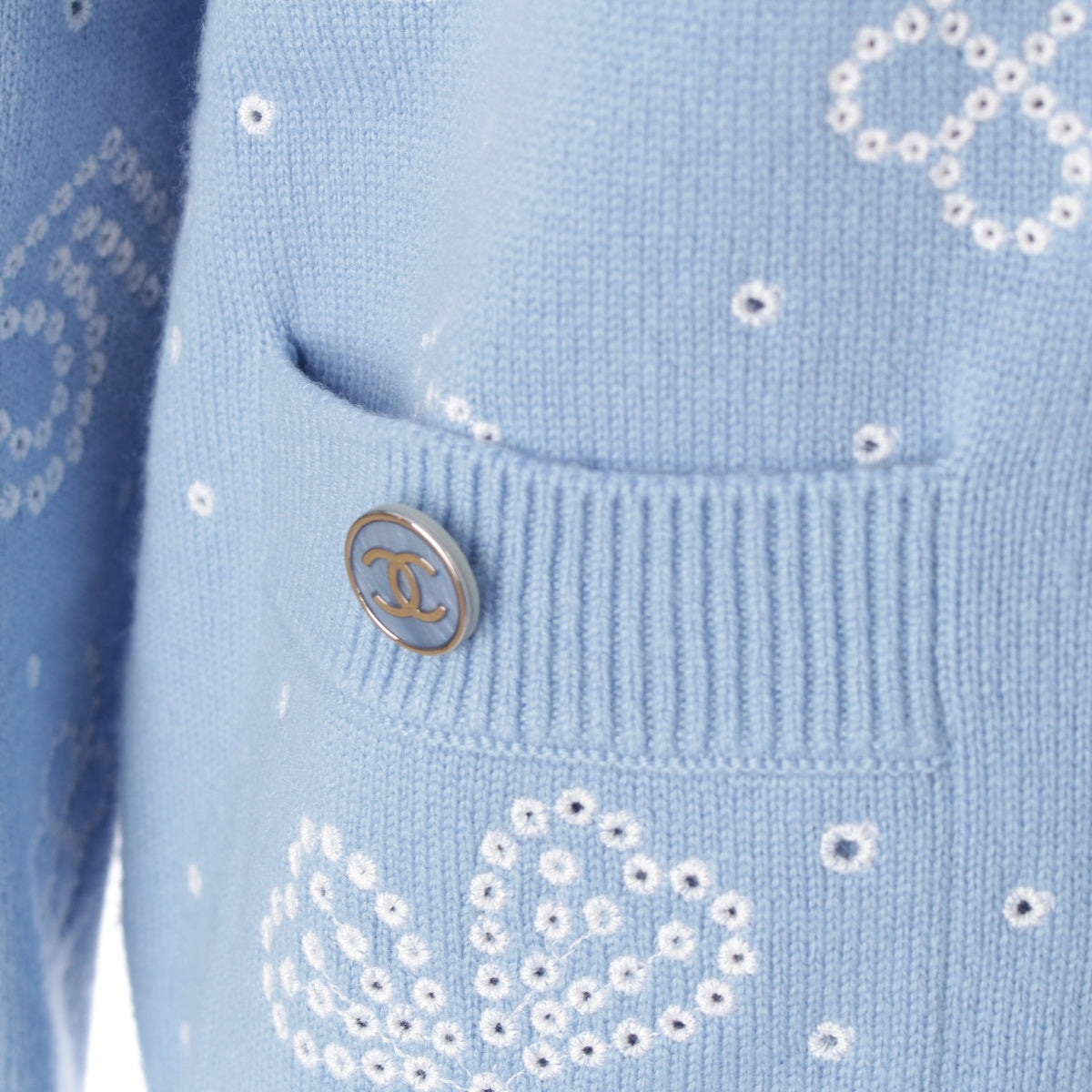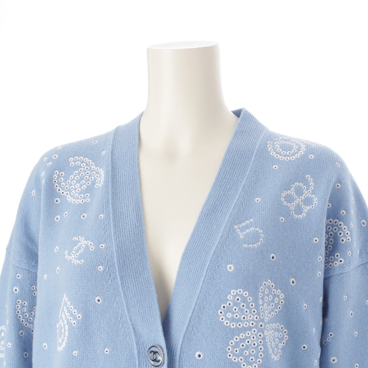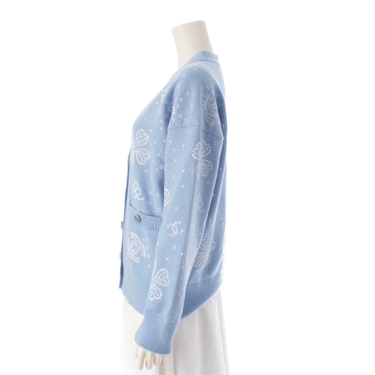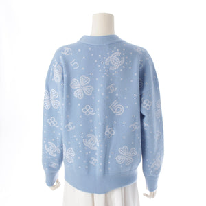 CHANEL cashmere COCO Button COCO Mark Clover Knit cardigan tops P74636 blue 34