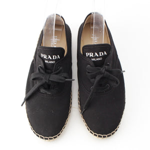 PRADA espadrilles lace up flats sneakers shoes black 37