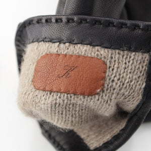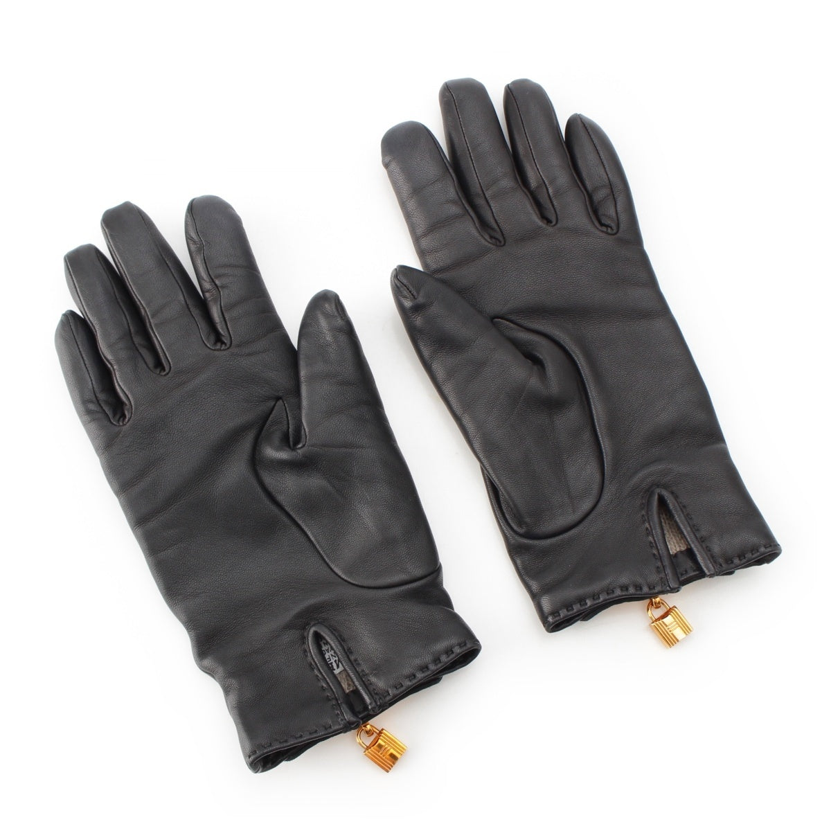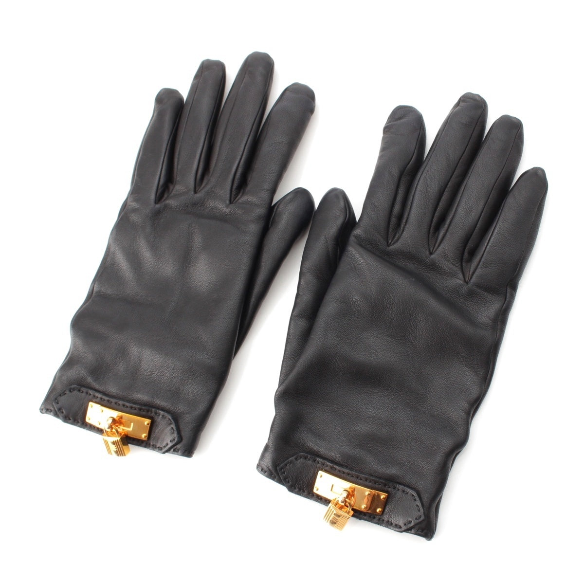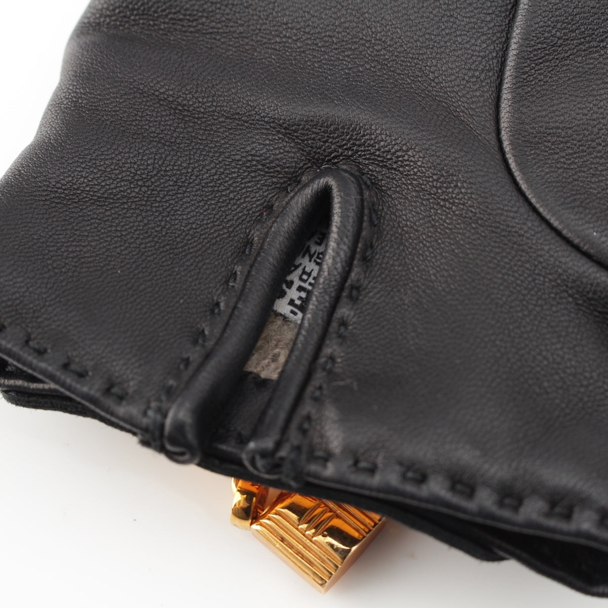 HERMES Lambskin Cashmere Kelly Grove gloves Gold Metal Black 6.5