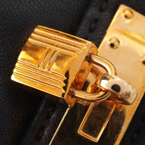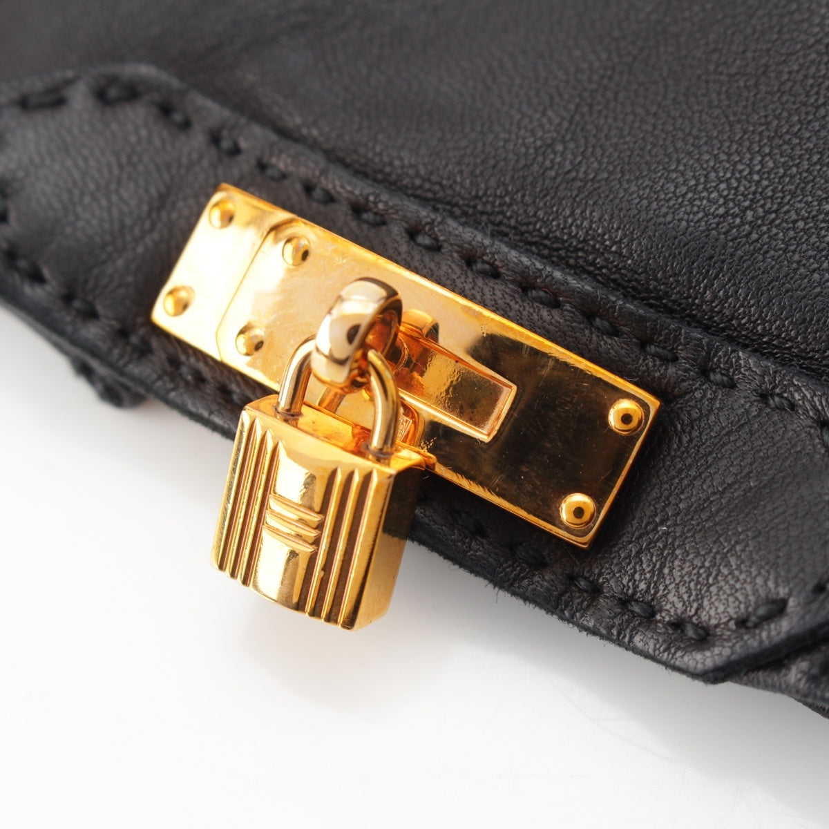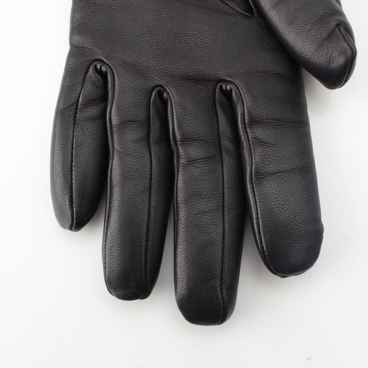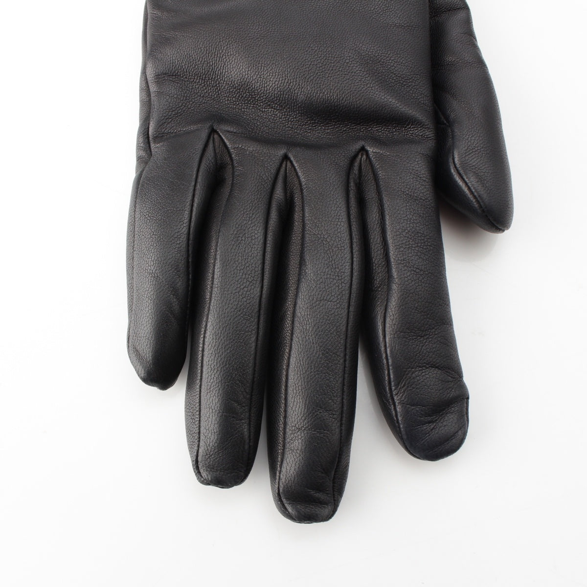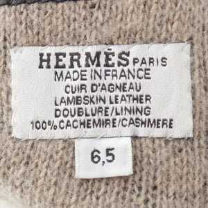 HERMES Lambskin Cashmere Kelly Grove gloves Gold Metal Black 6.5