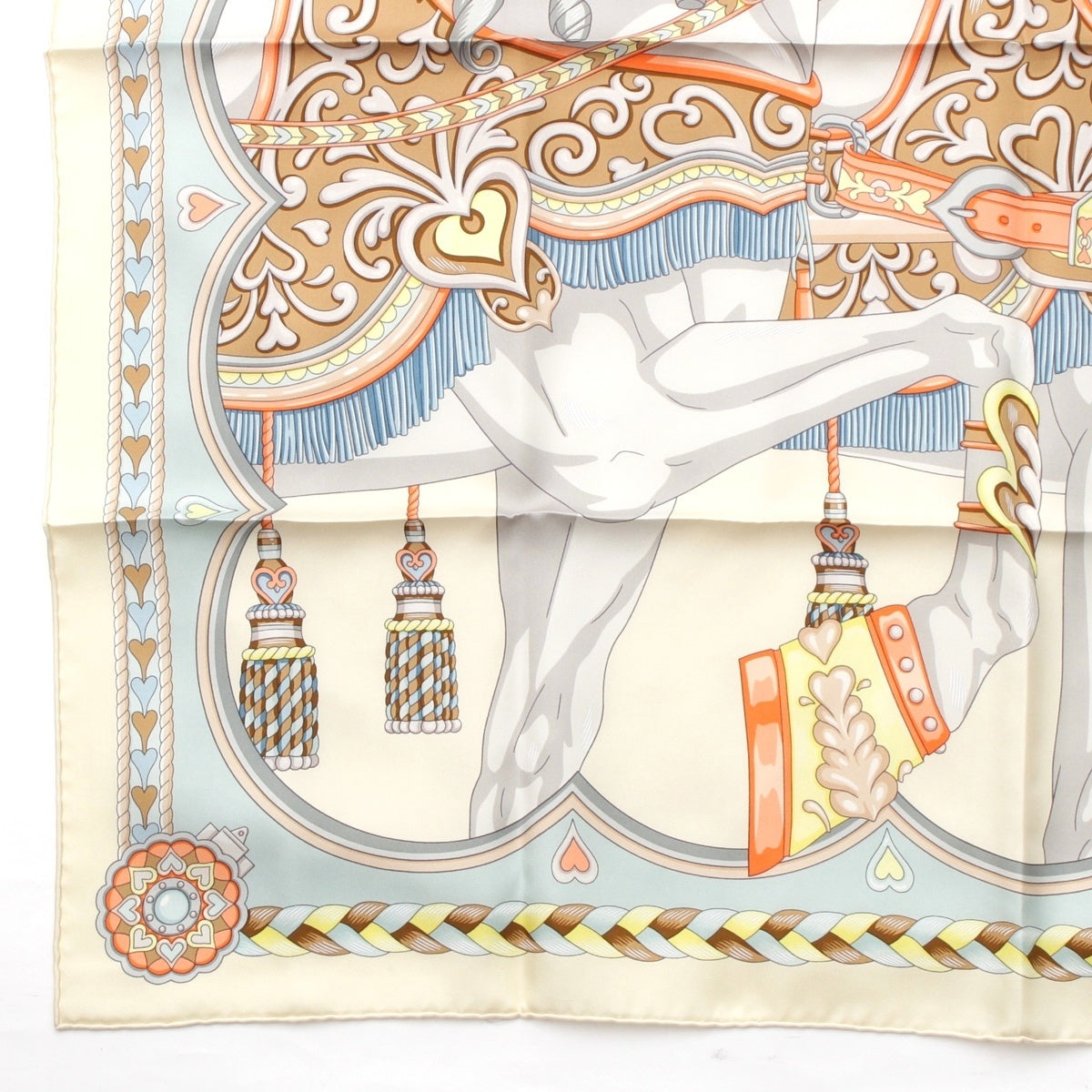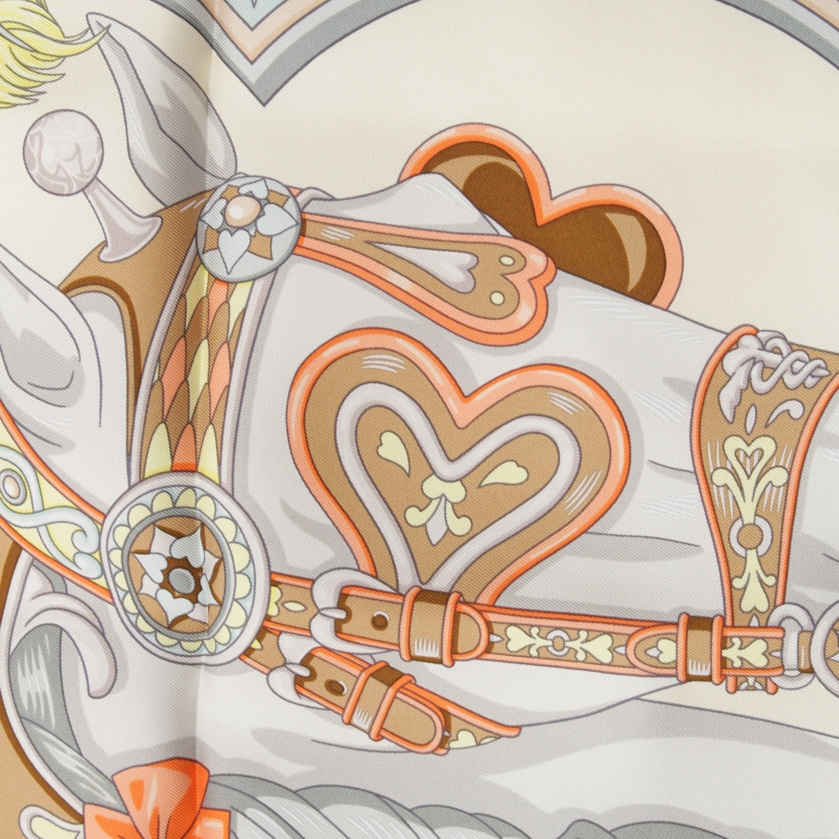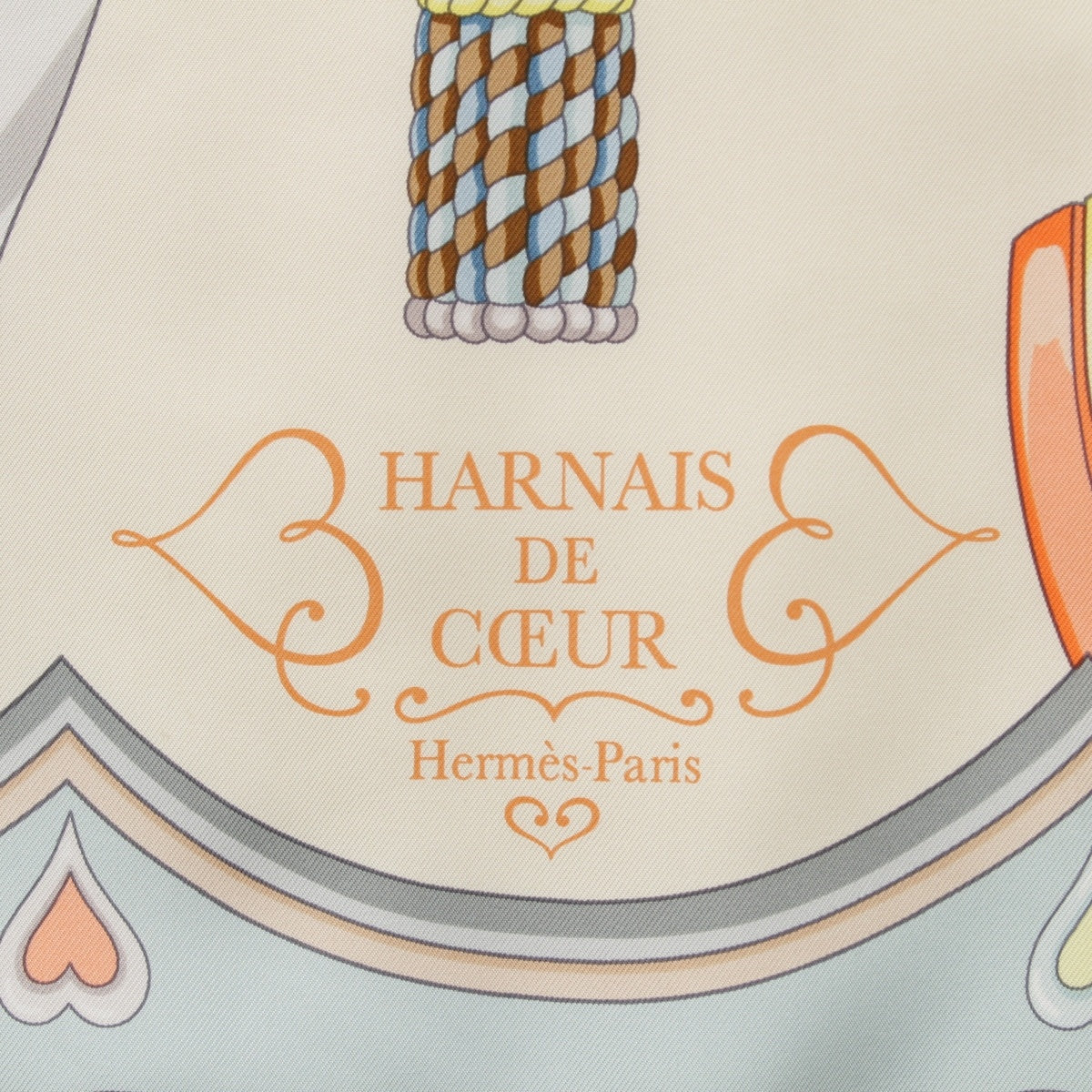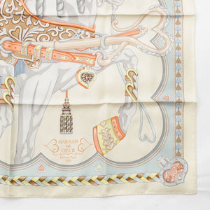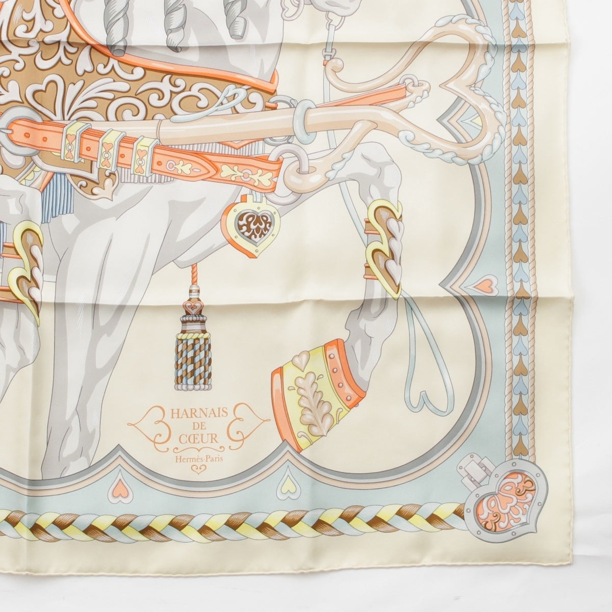 HERMES Carré 90 Harnais de Coeur Arne de Coeur silk scarf beige